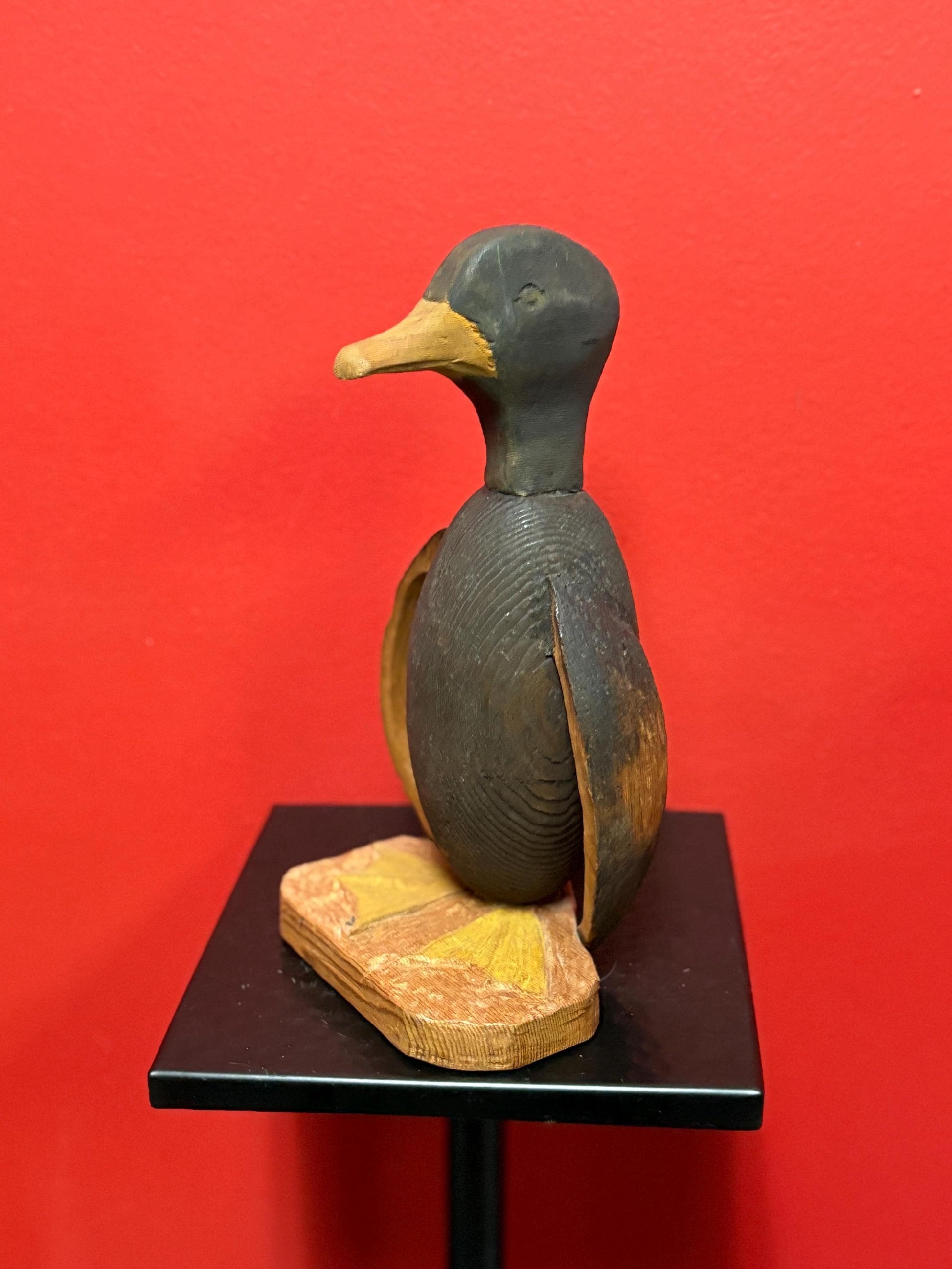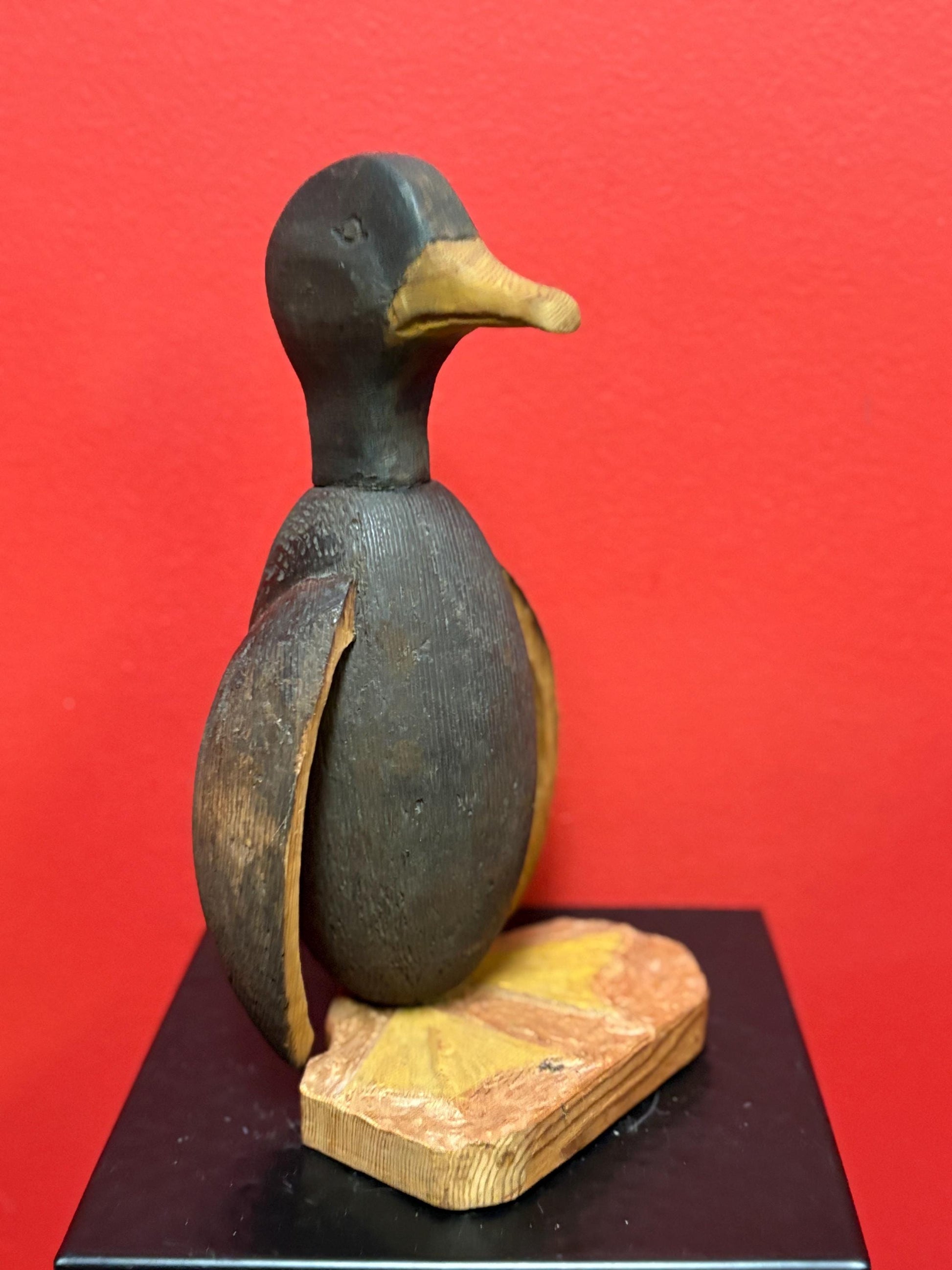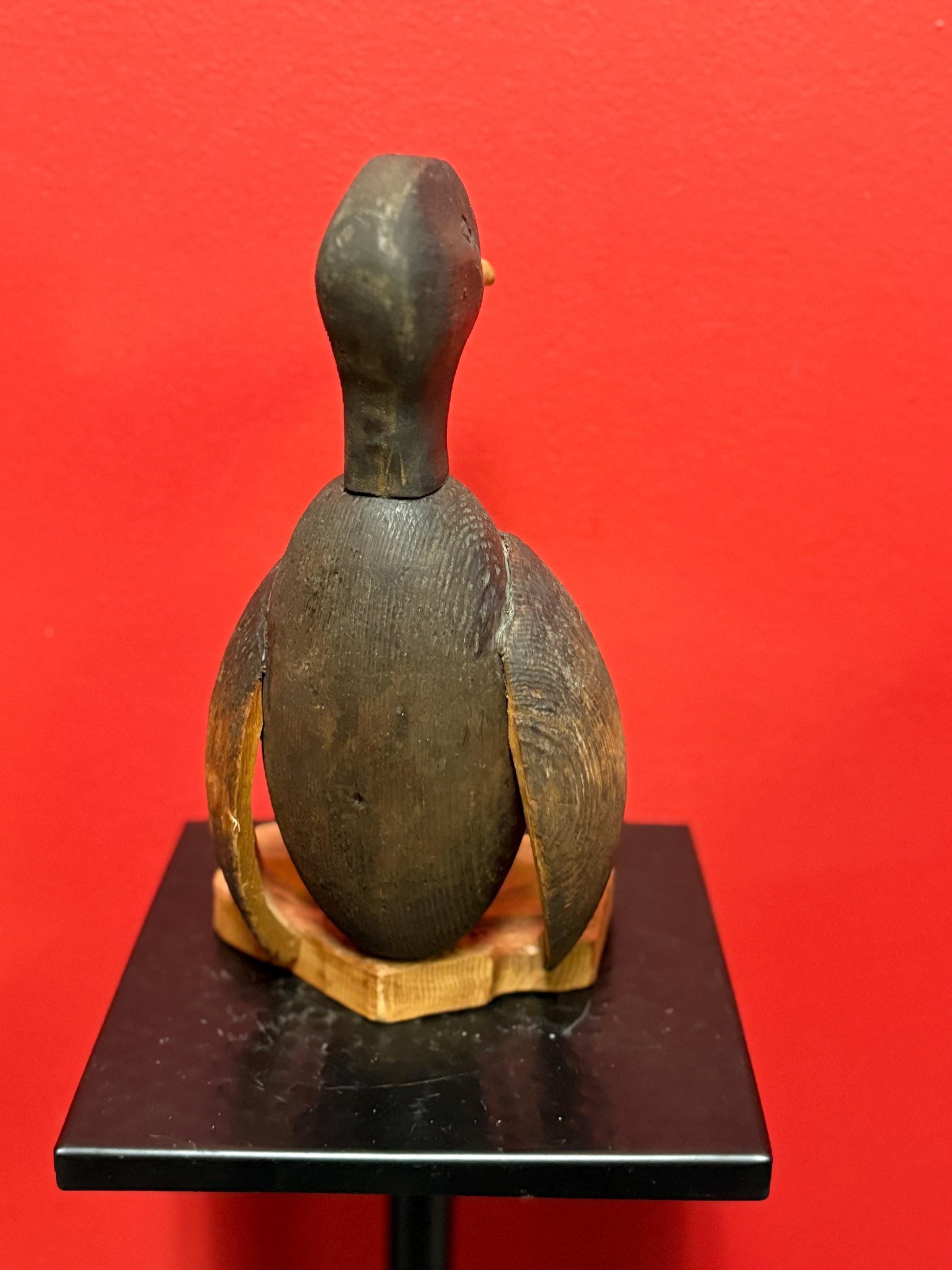 10 inch tall indigenous fishing buoy duck statue on wooden stand — very cool decor