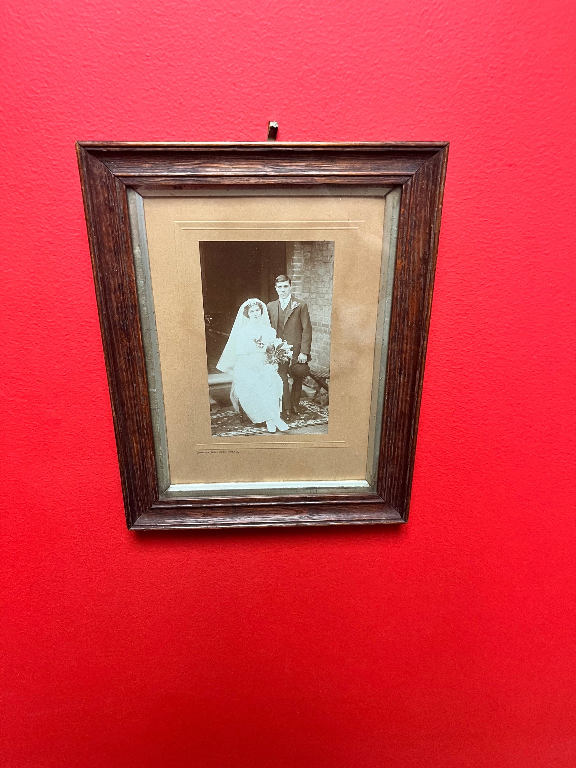 10 x 8 English oak frame with instant relatives wedding photo by Putney good value