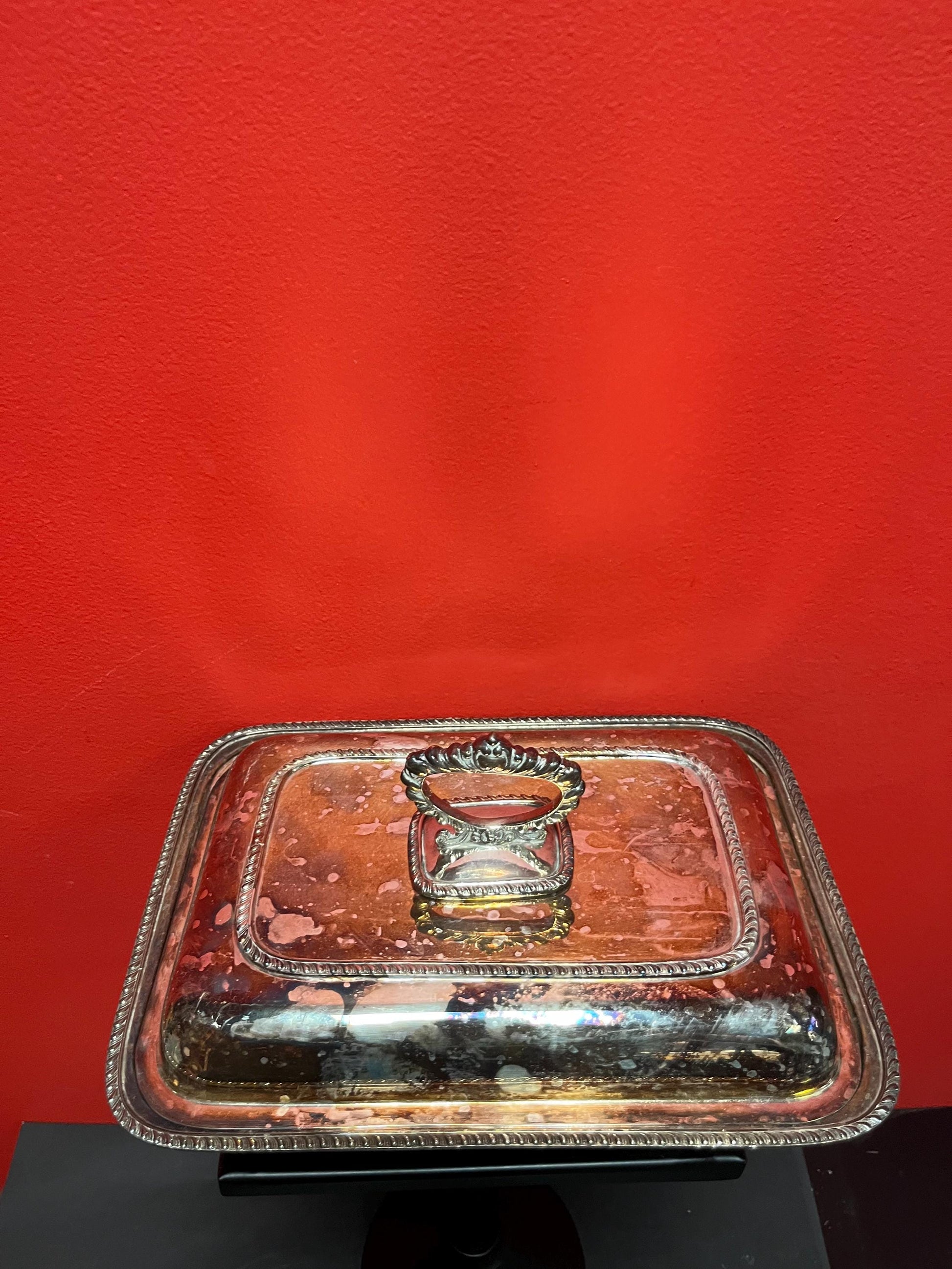 11 x 8 silver plated beautiful English covered entrée dish with lid needs a polish and very very good value
