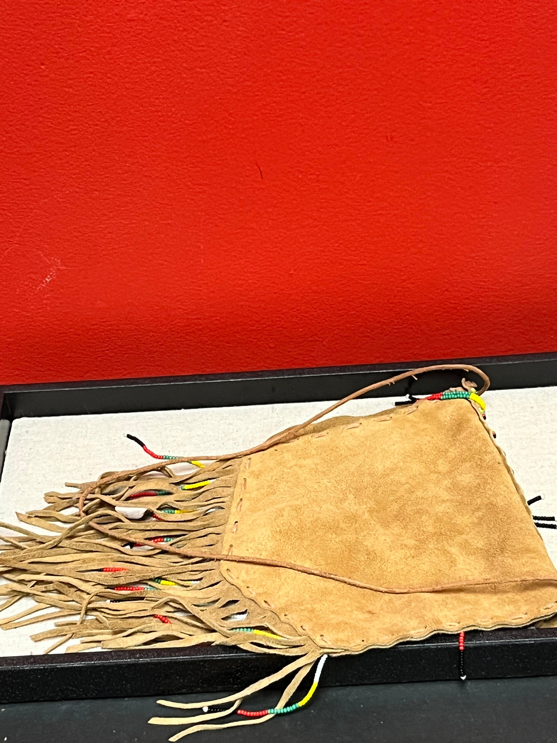 12 inch long leather and beaded indigenous first nations medicine pouch great history and great look
