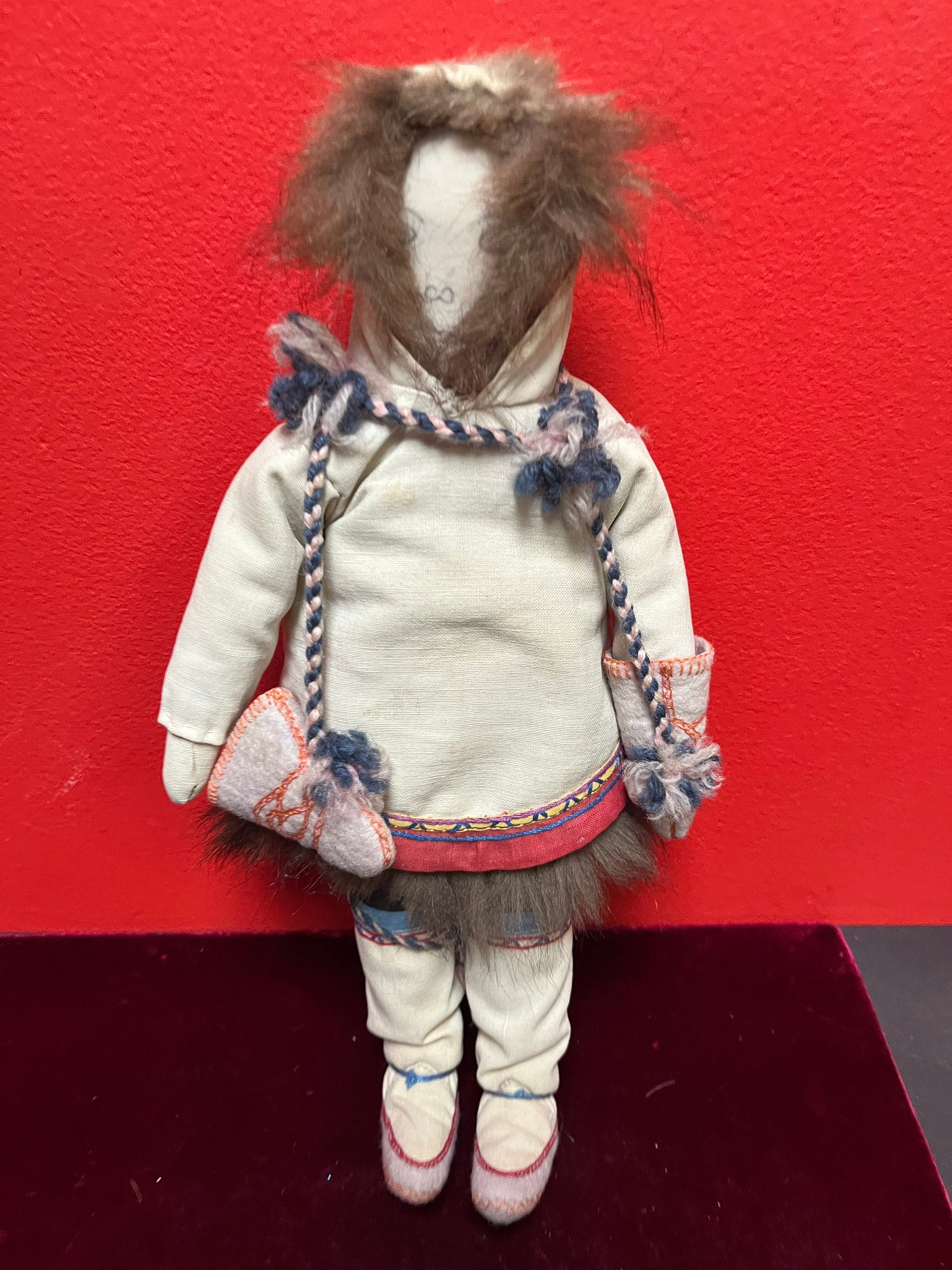 12 inch tall cloth and fur Canadian inuit Eskimo doll antique in very good condition beautiful piece