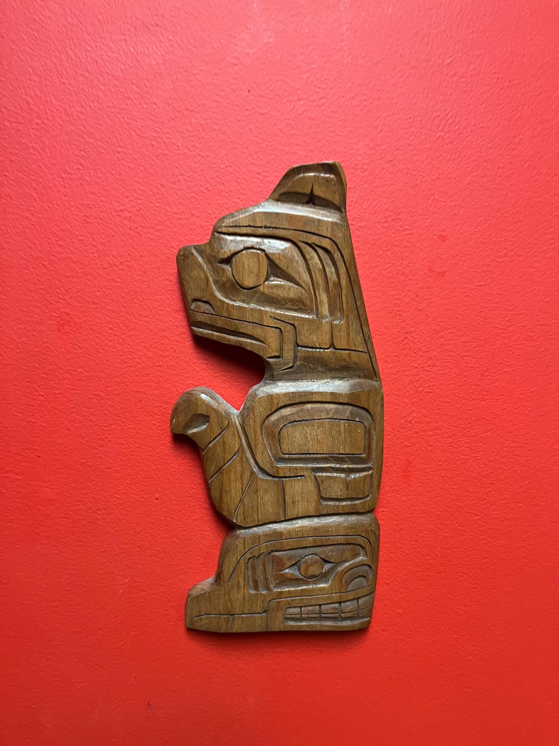 12 x 6 wide indigenous first nations, Pacific Northwest coast bear killer whale transformation plaque by G mountain well-known artist