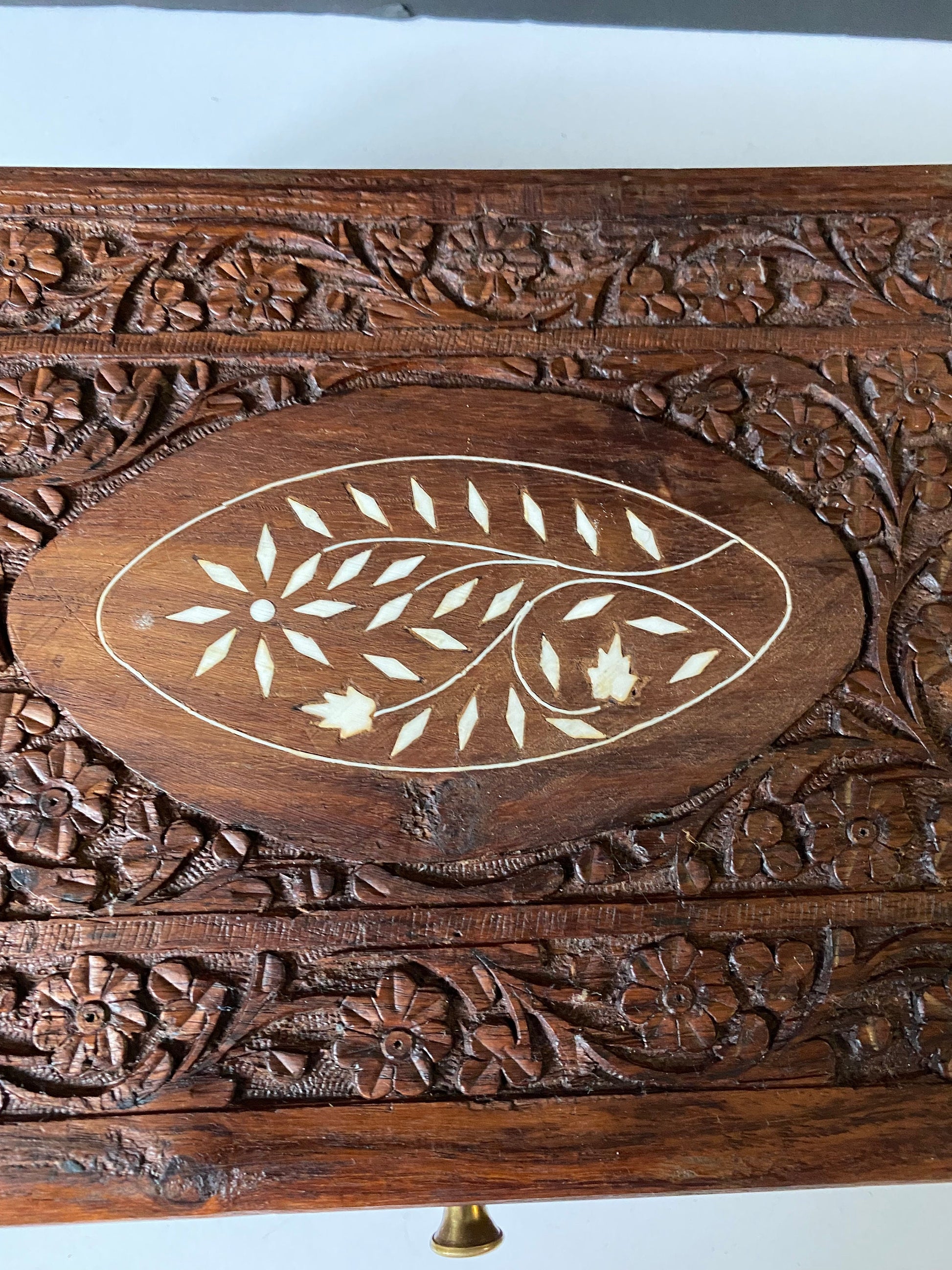 12 x 8 stunning carved Indian wood and bone inlay box - Perfect for jewellery or cigars etc