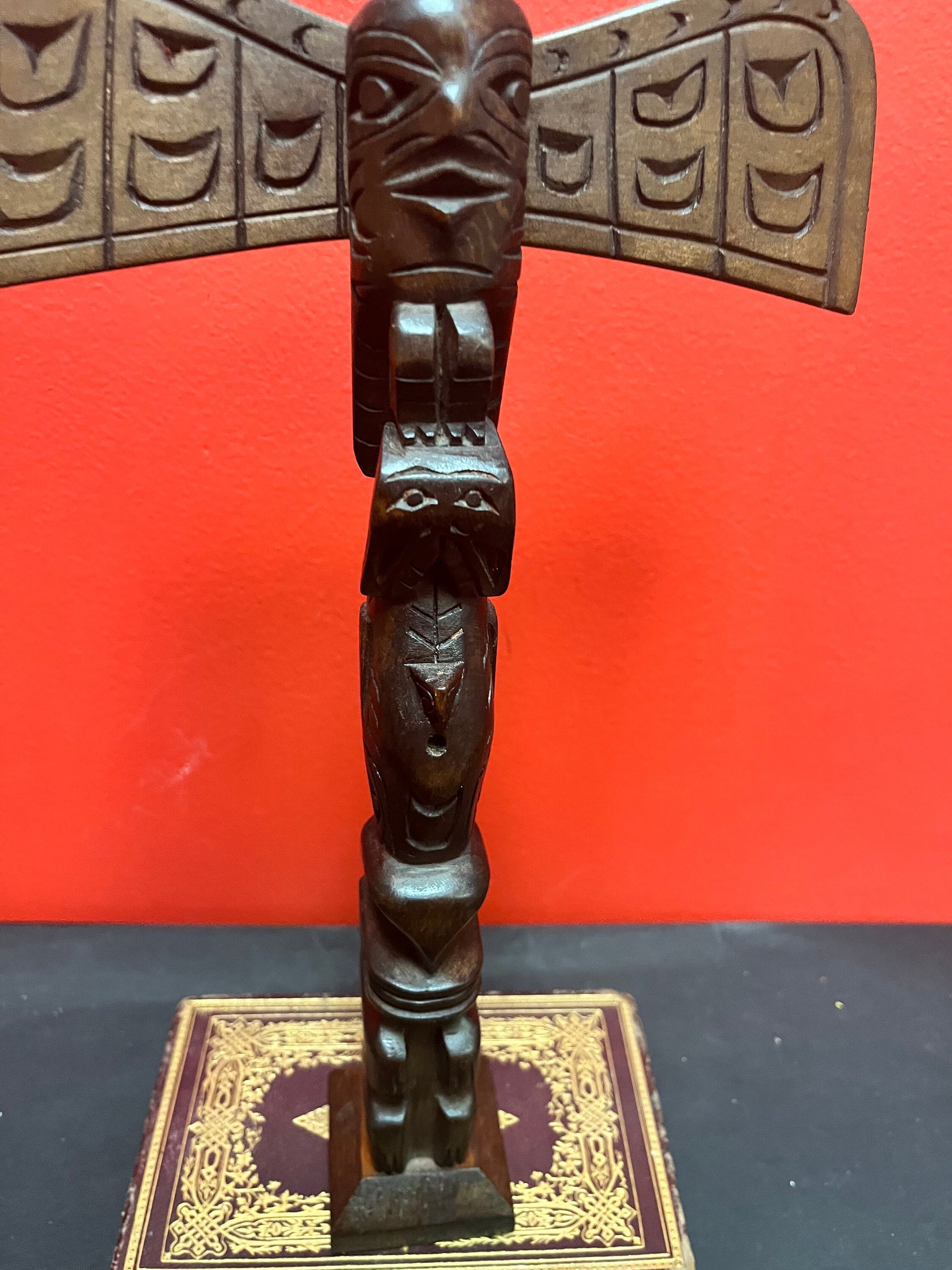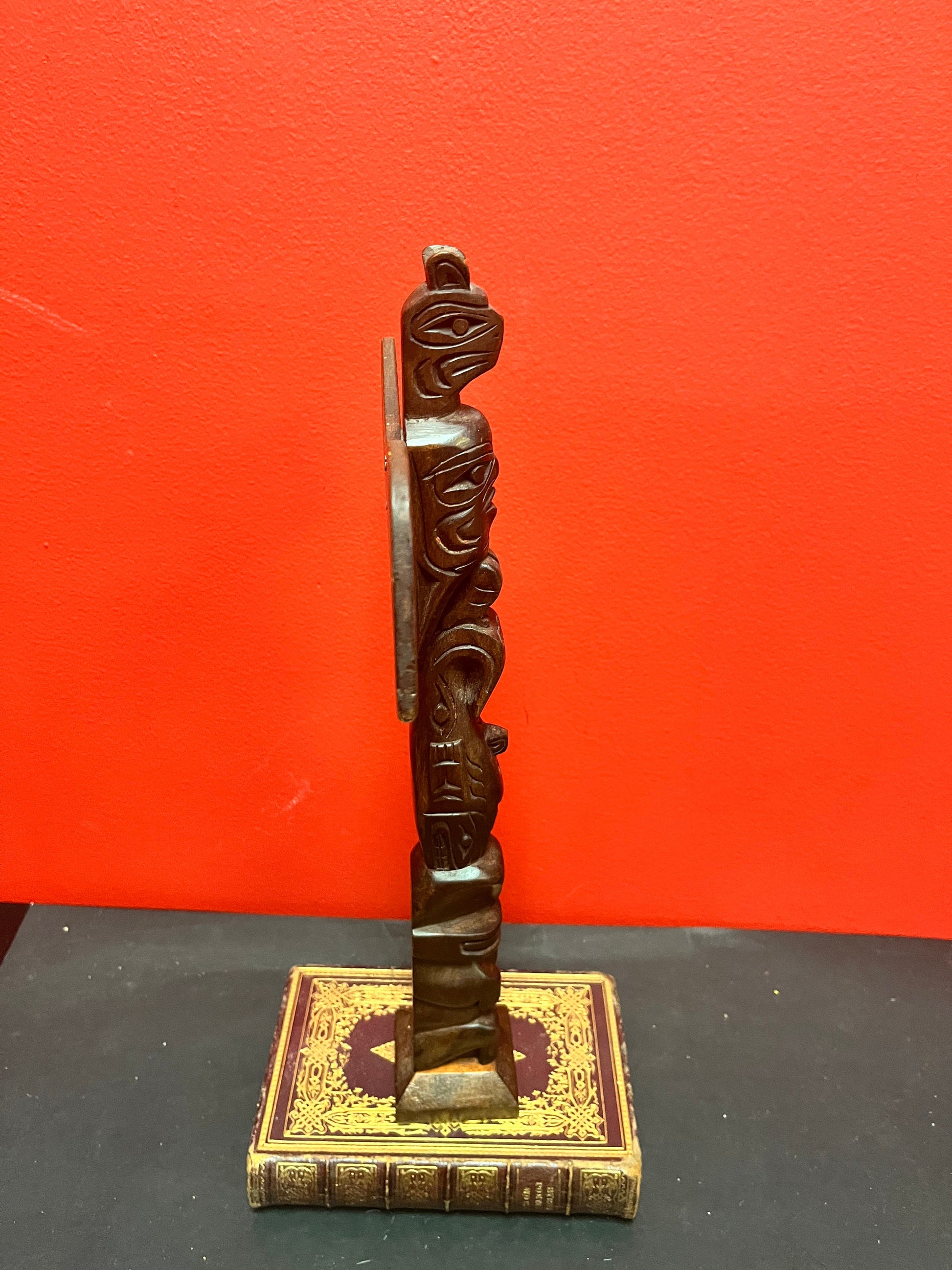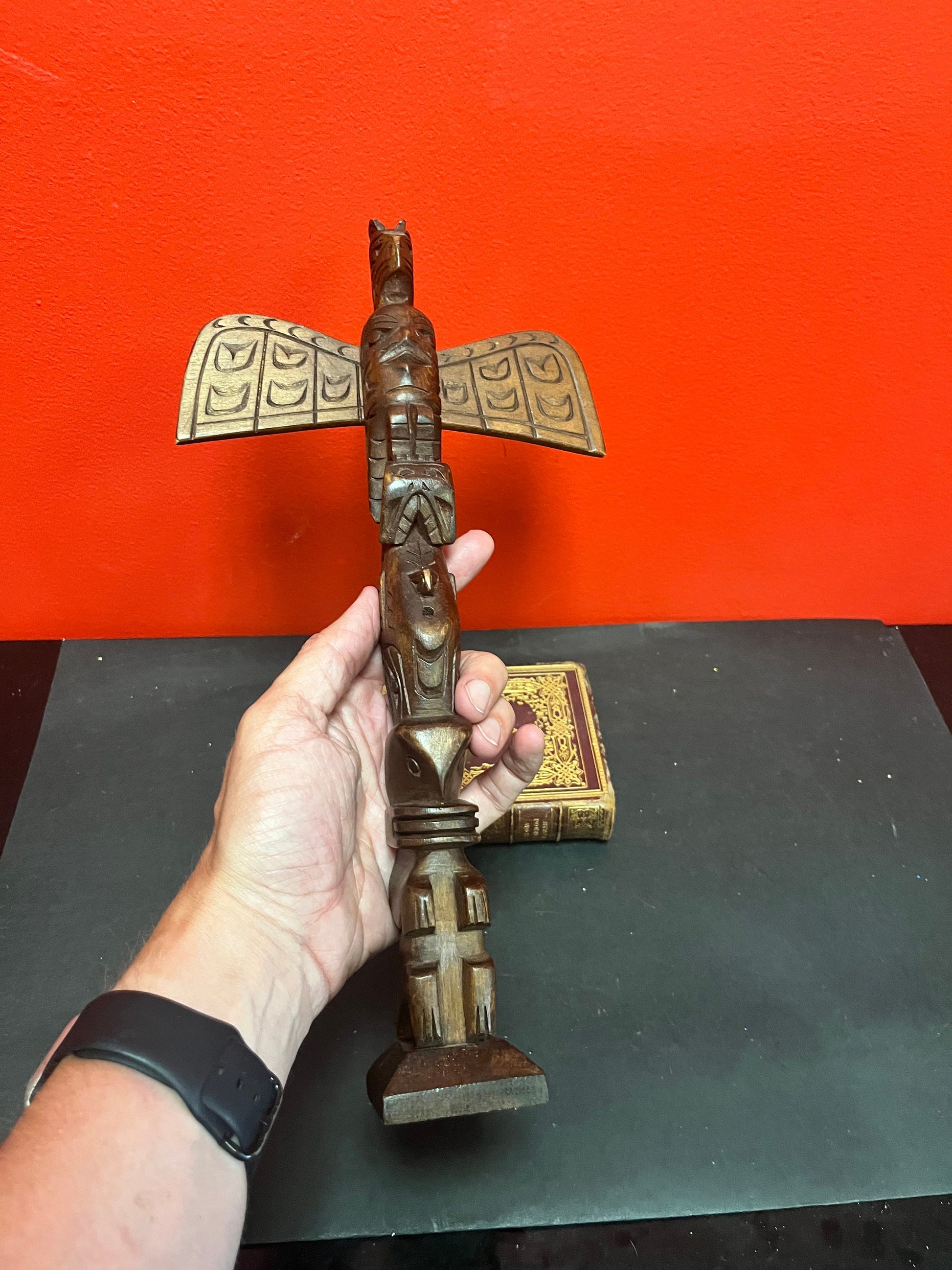 14 x 7 wide stunning Indigenous first nations Pacific Northwest carved totem pole with great detail and imagery