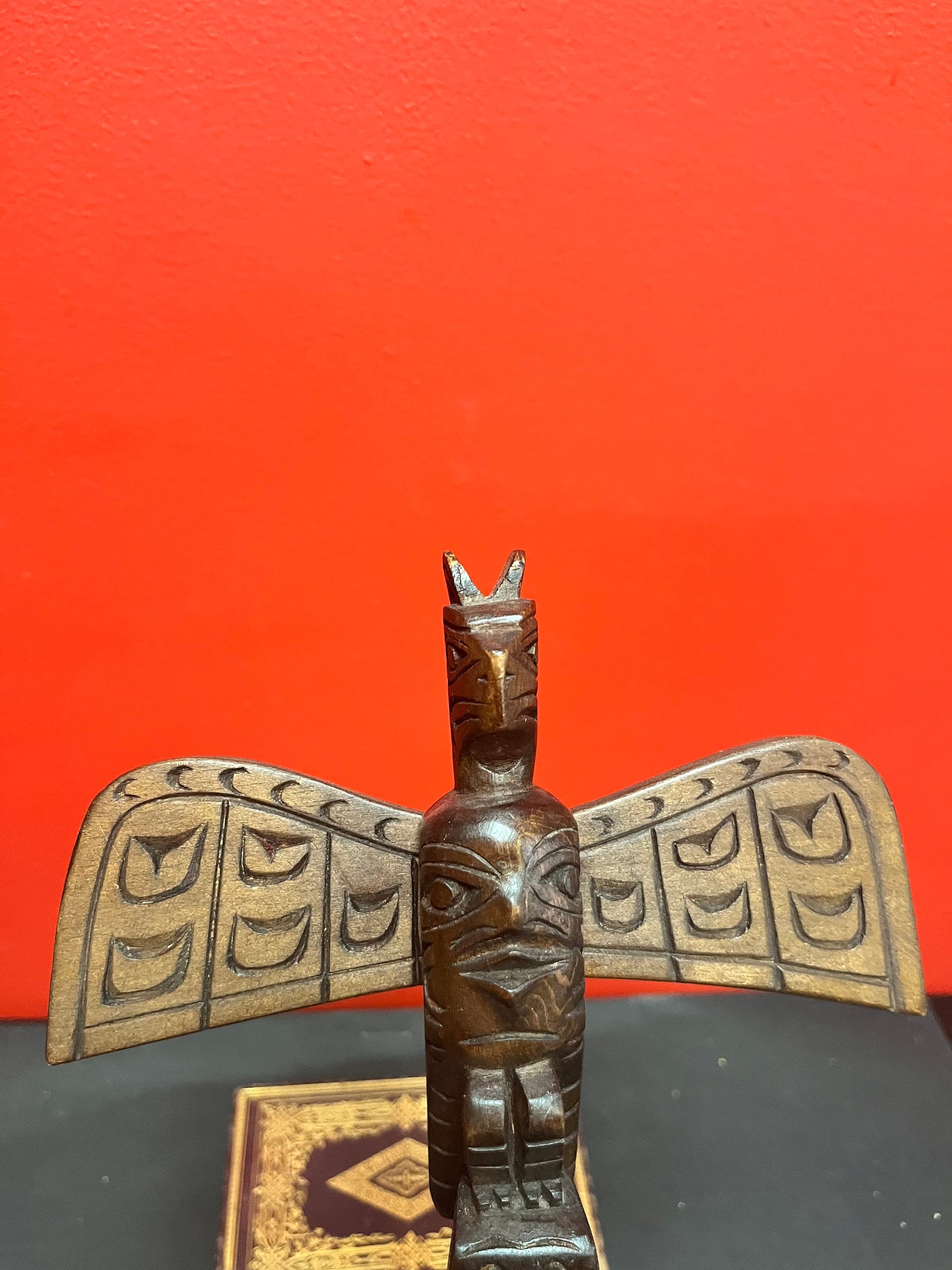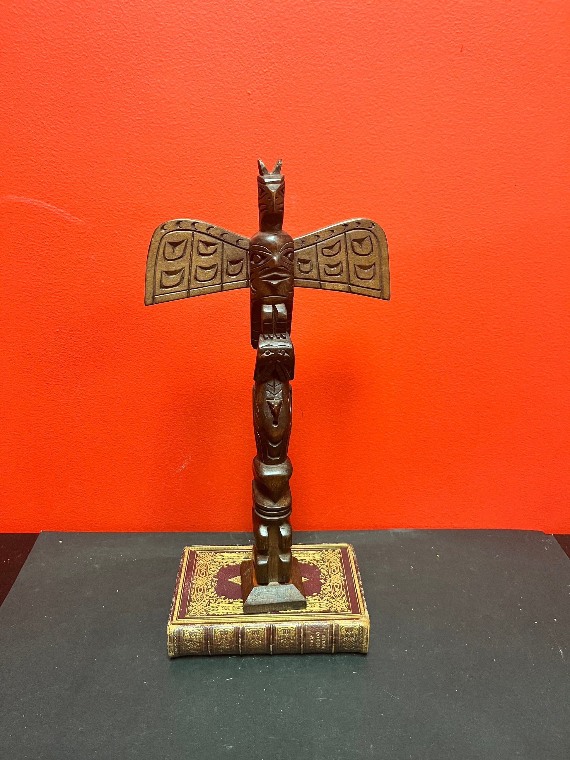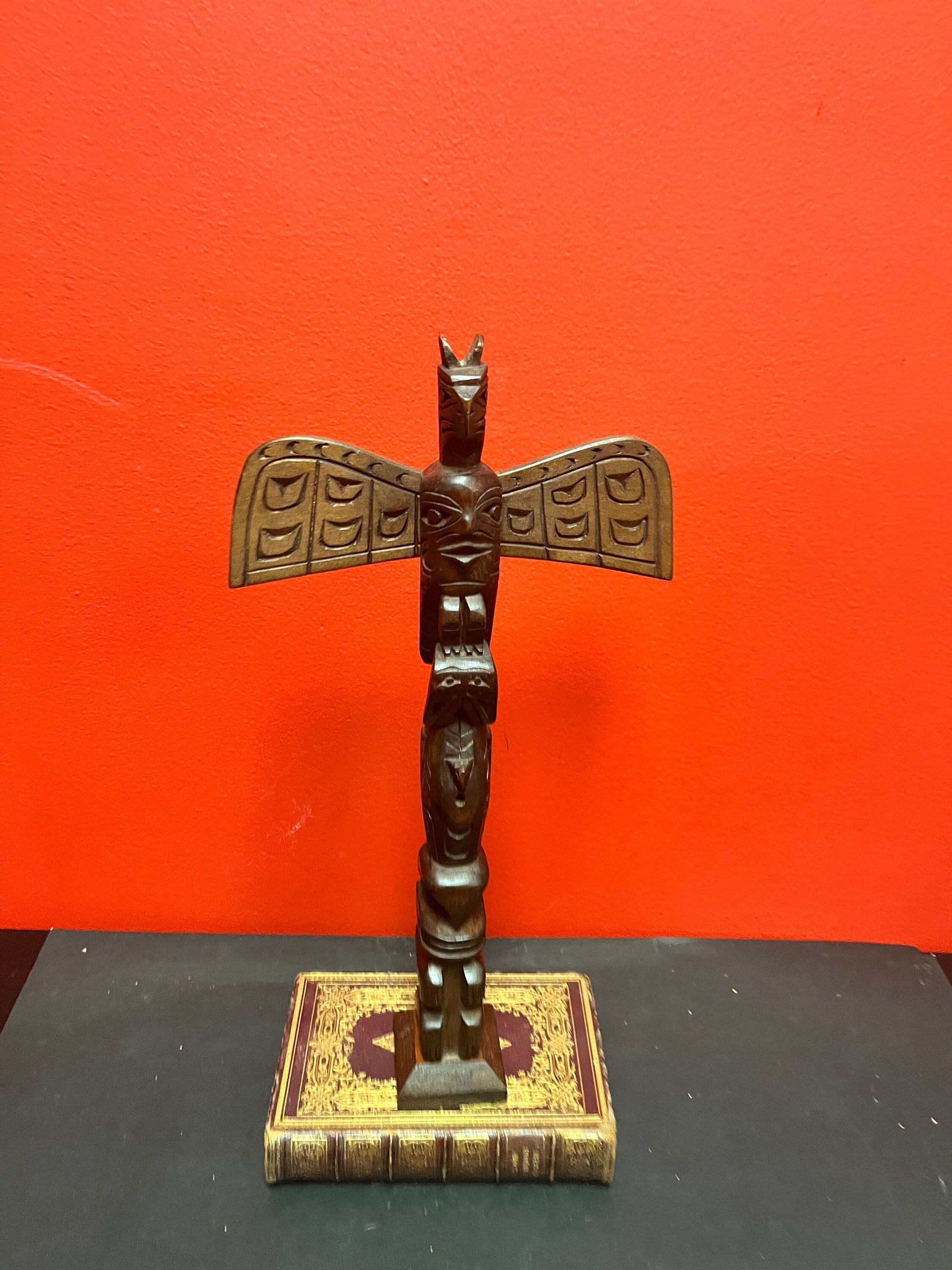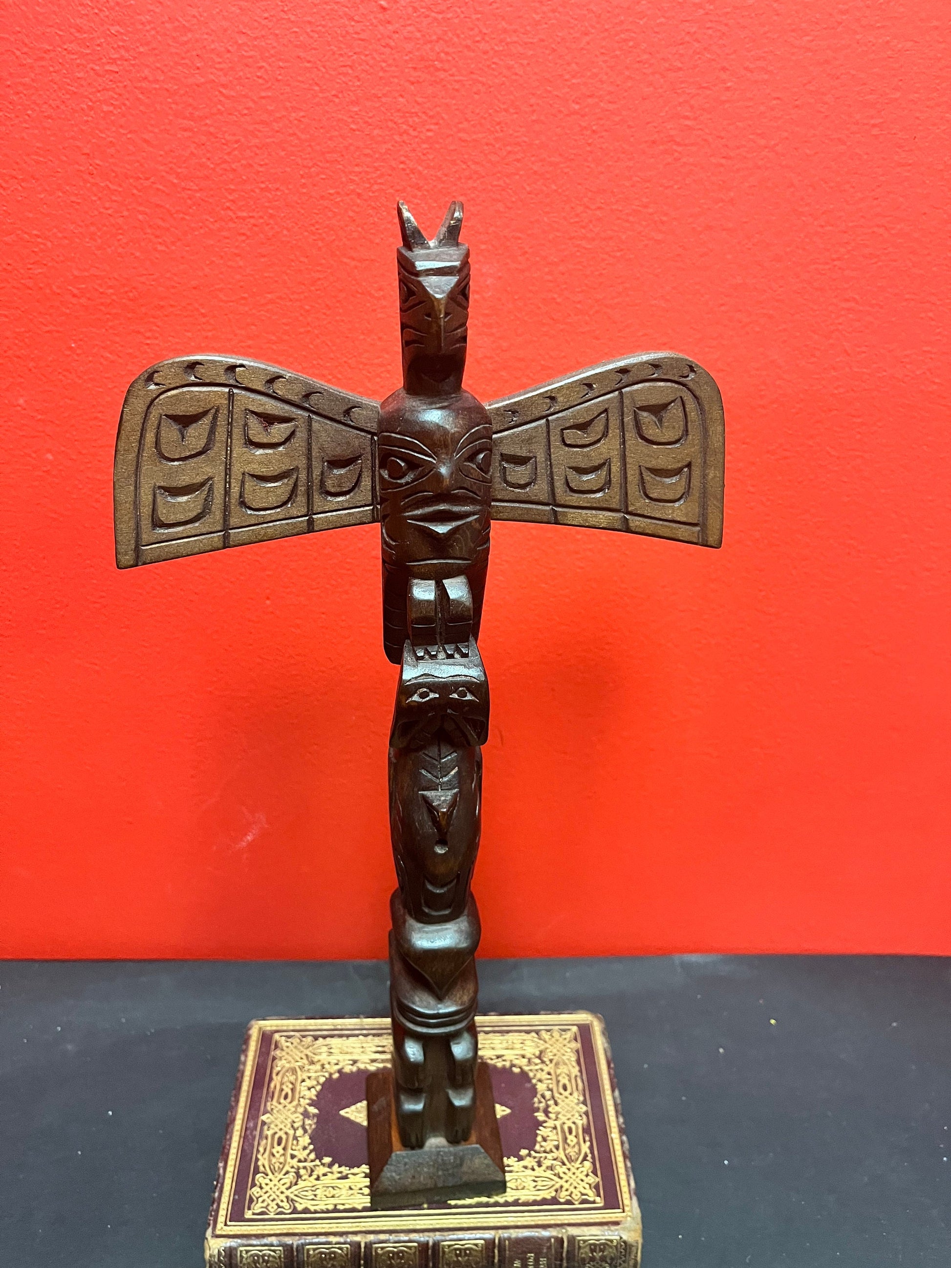 14 x 7 wide stunning Indigenous first nations Pacific Northwest carved totem pole with great detail and imagery