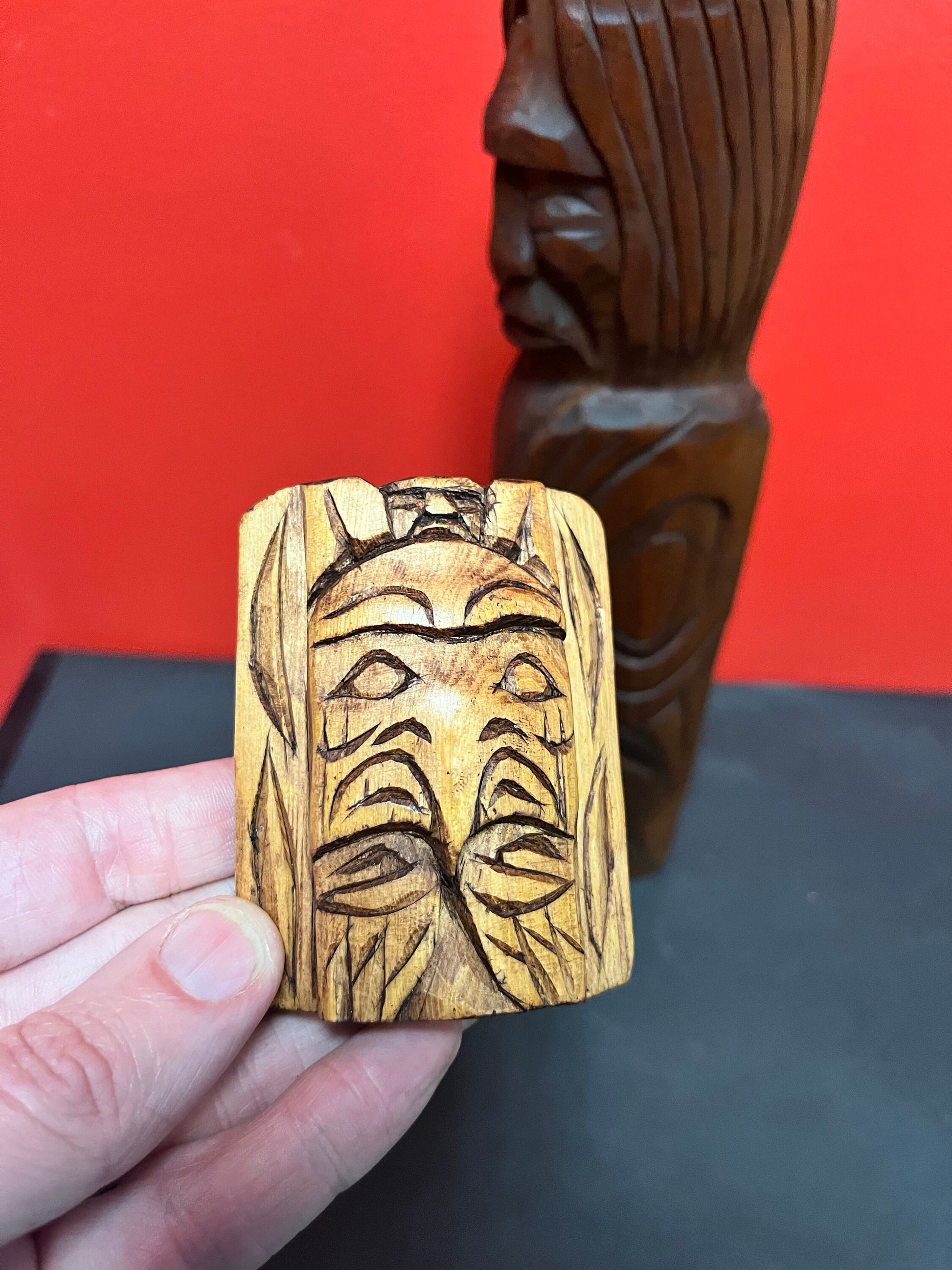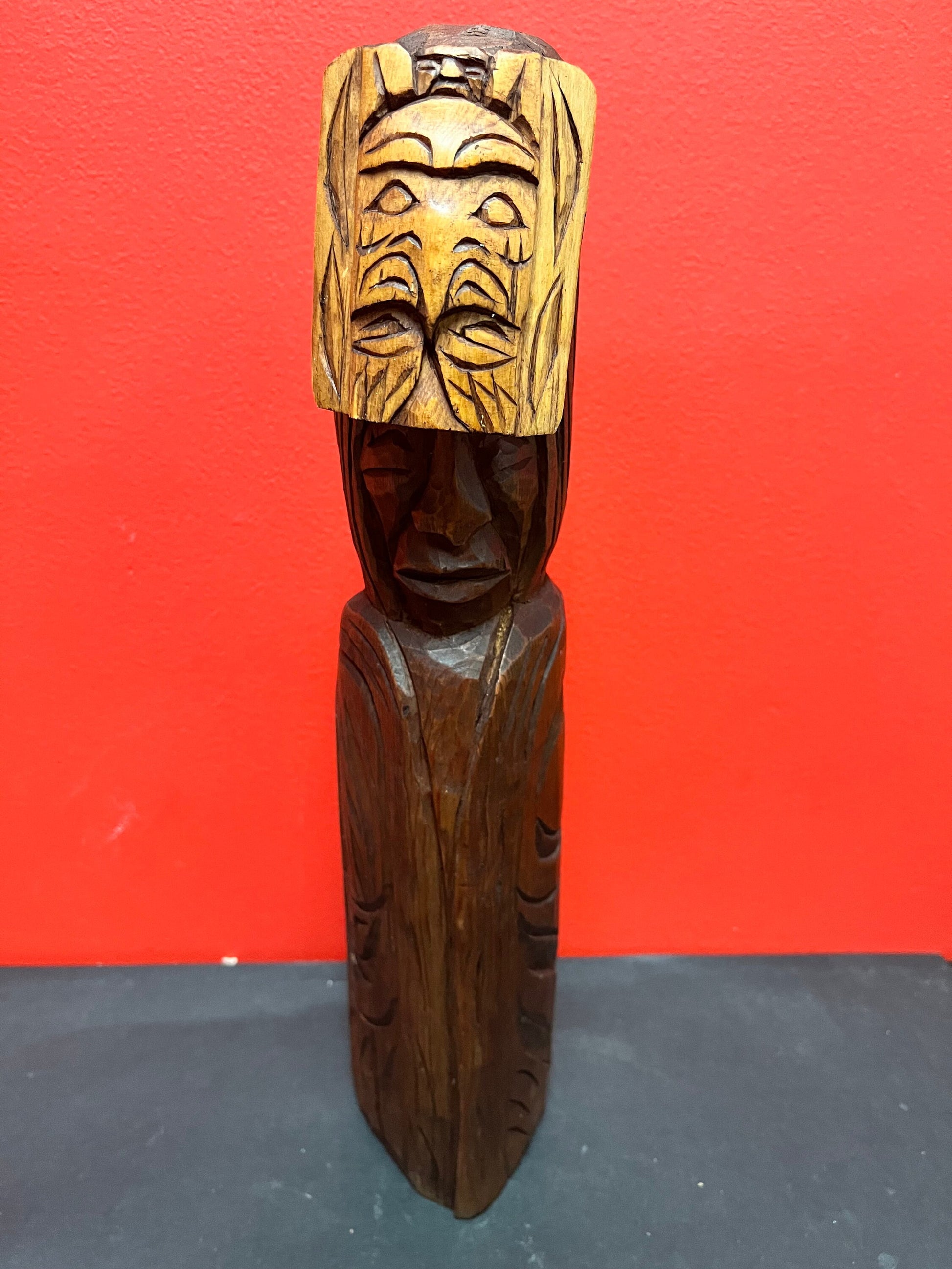16 inch tall mask on totem statue incredible Stan Joseph indigenous first nations Pacific northwest coast unique and beautiful -