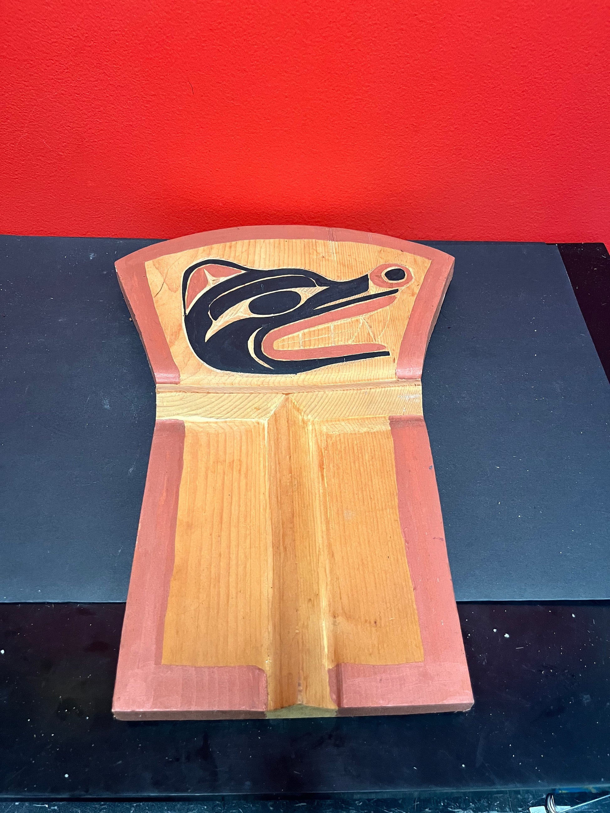 17 x 6 1/2 x 1 thick cedar indigenous, first nations pacific northwest coast bear plaque or board needs hanger great detail -