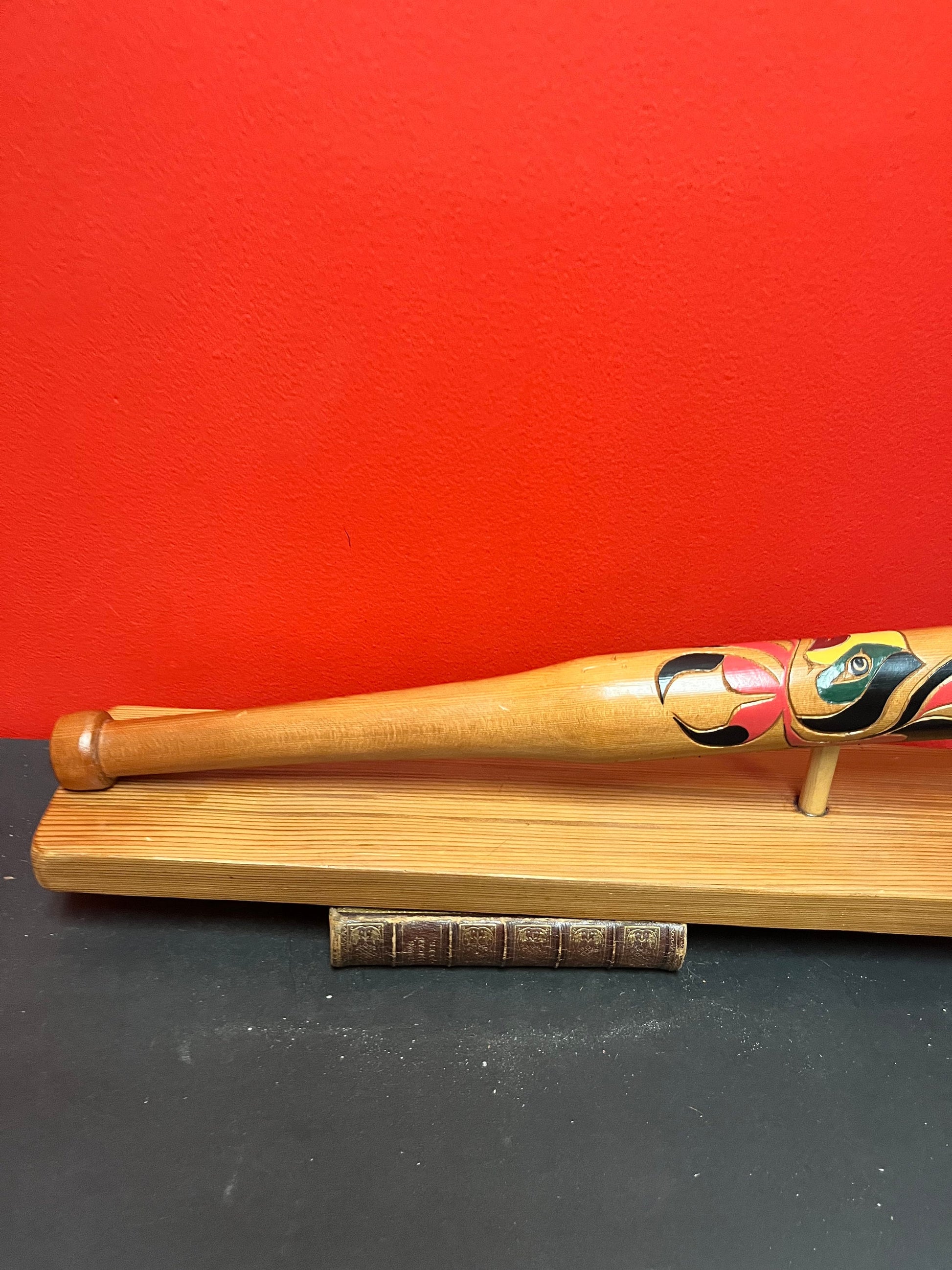 19 x 7 x 4 high authentic indigenous first nations pacific north west coast signed baseball bat on stand super unique and cool