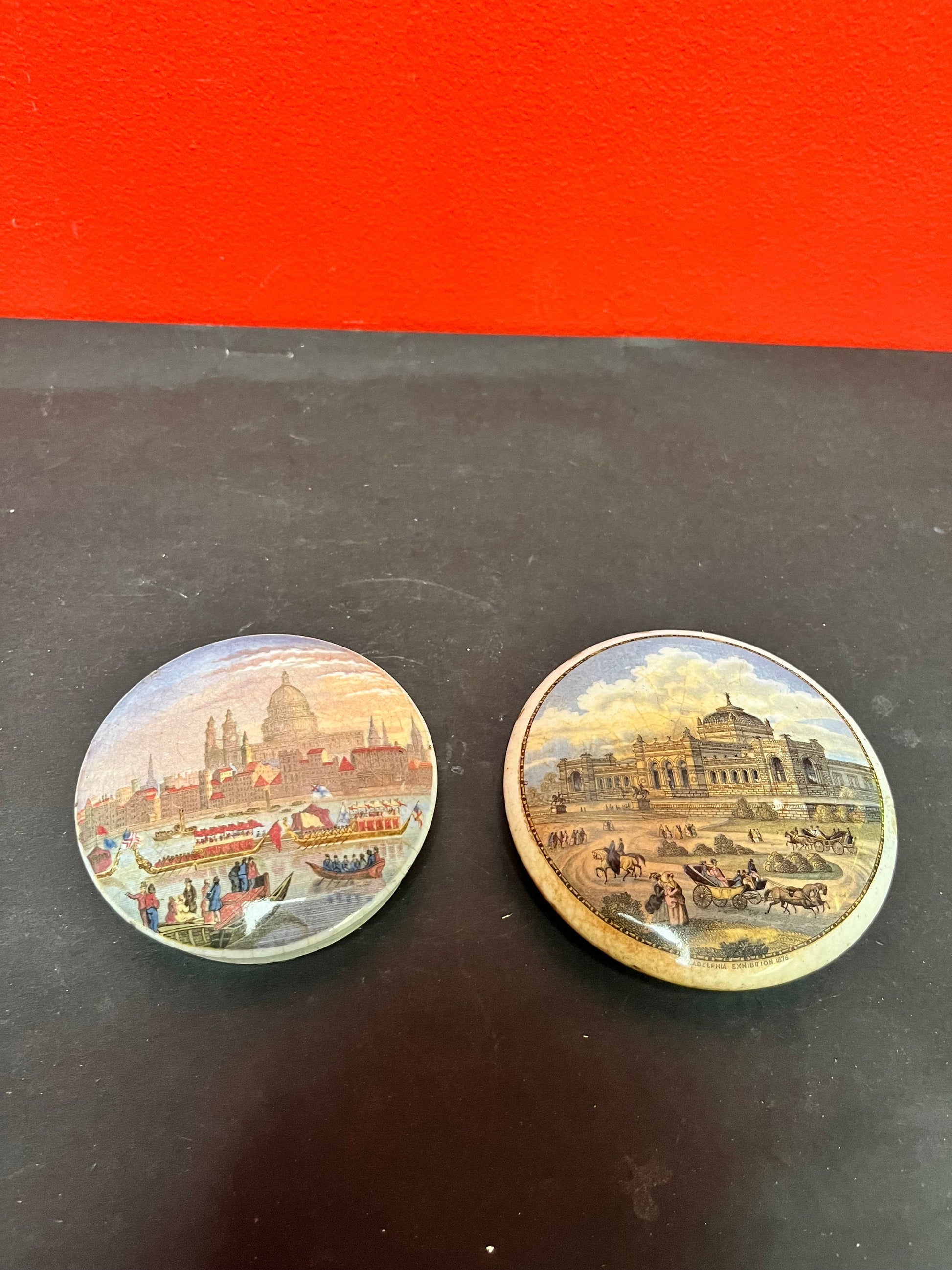 2 19th century 4 and 41/2 inch English pot lids in antique condition see photos great value