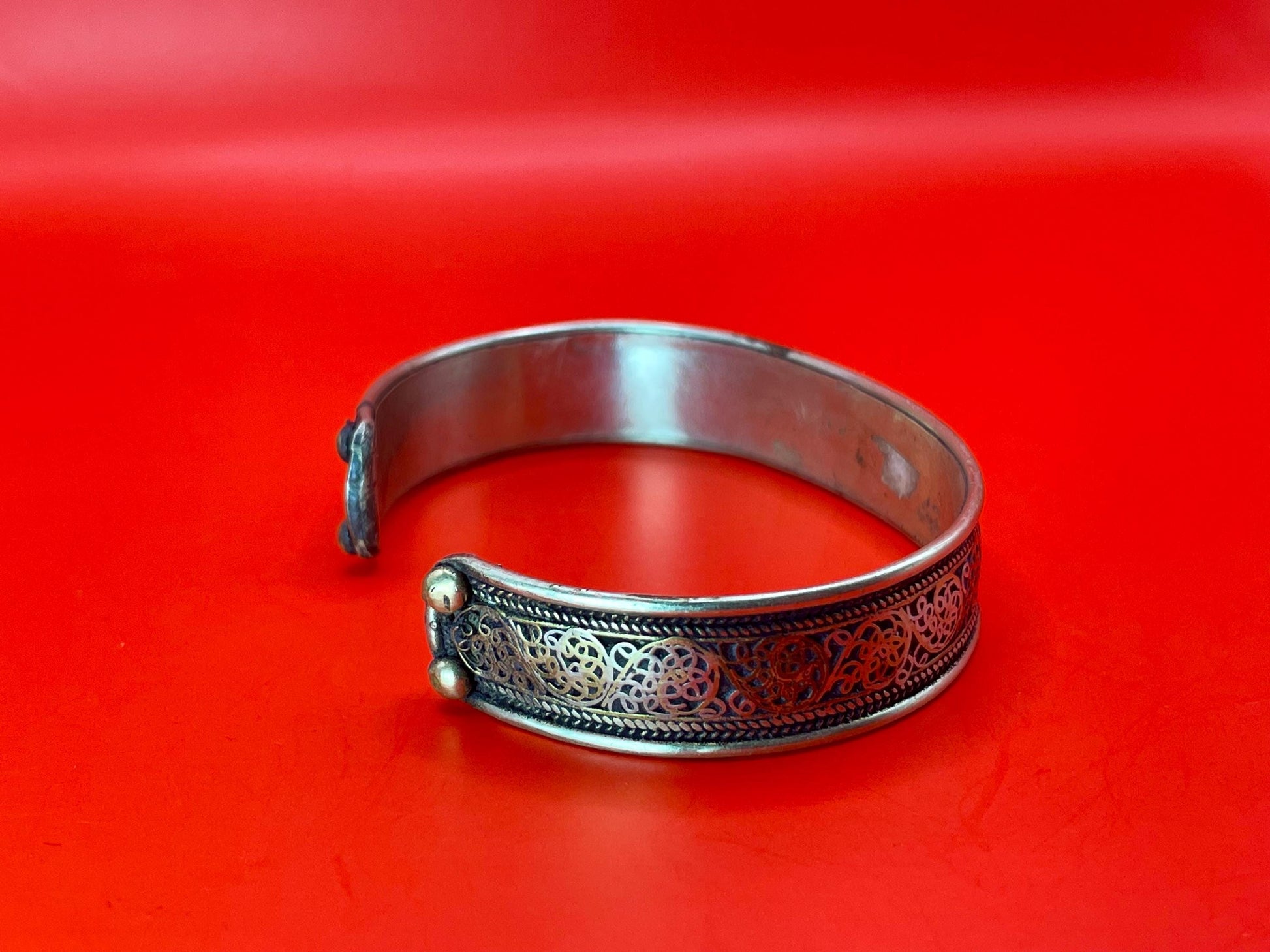 A great two toned metal Persian Cuff Bracelet. 2.5 inches but can be adjusted slightly to fit many wrist sizes.