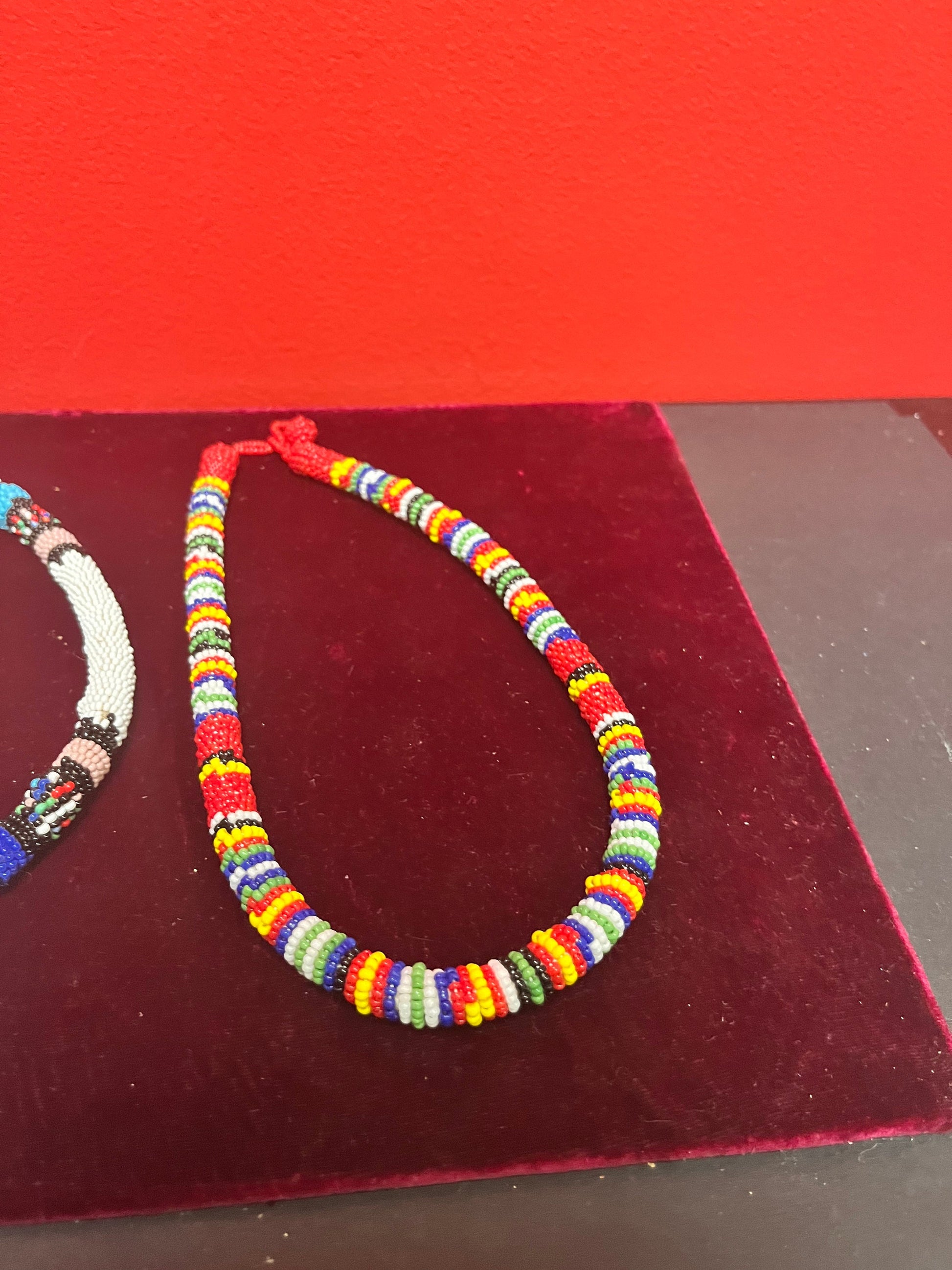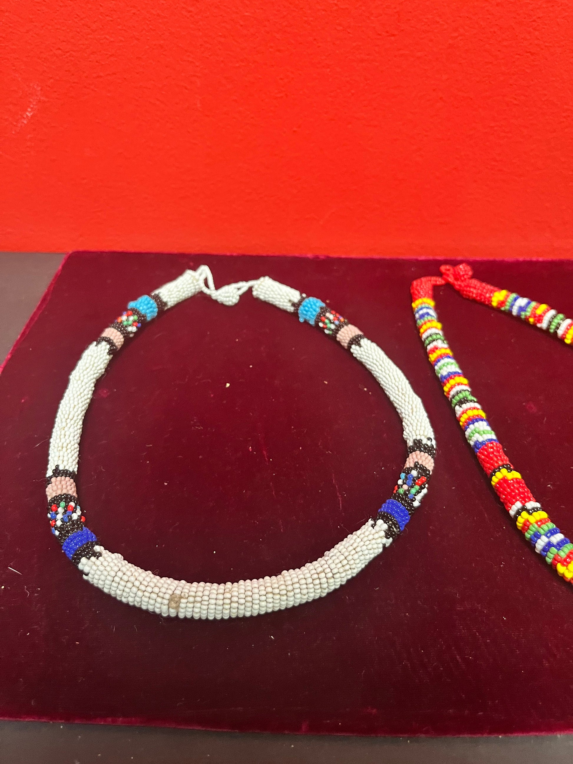 2 African approximately 17 inch Zulu beaded necklaces