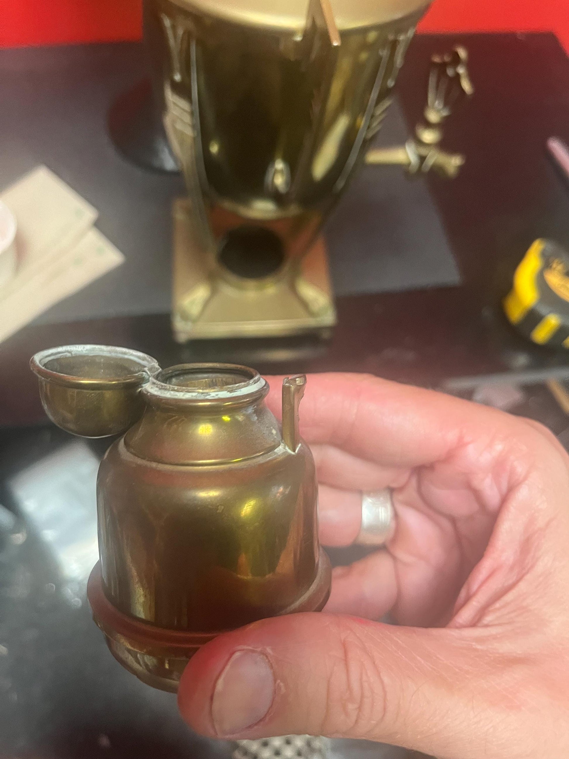 20 inch tall brass tea or coffee urn on stand antique art nouveau beauty amazing patina wow seems to be useable