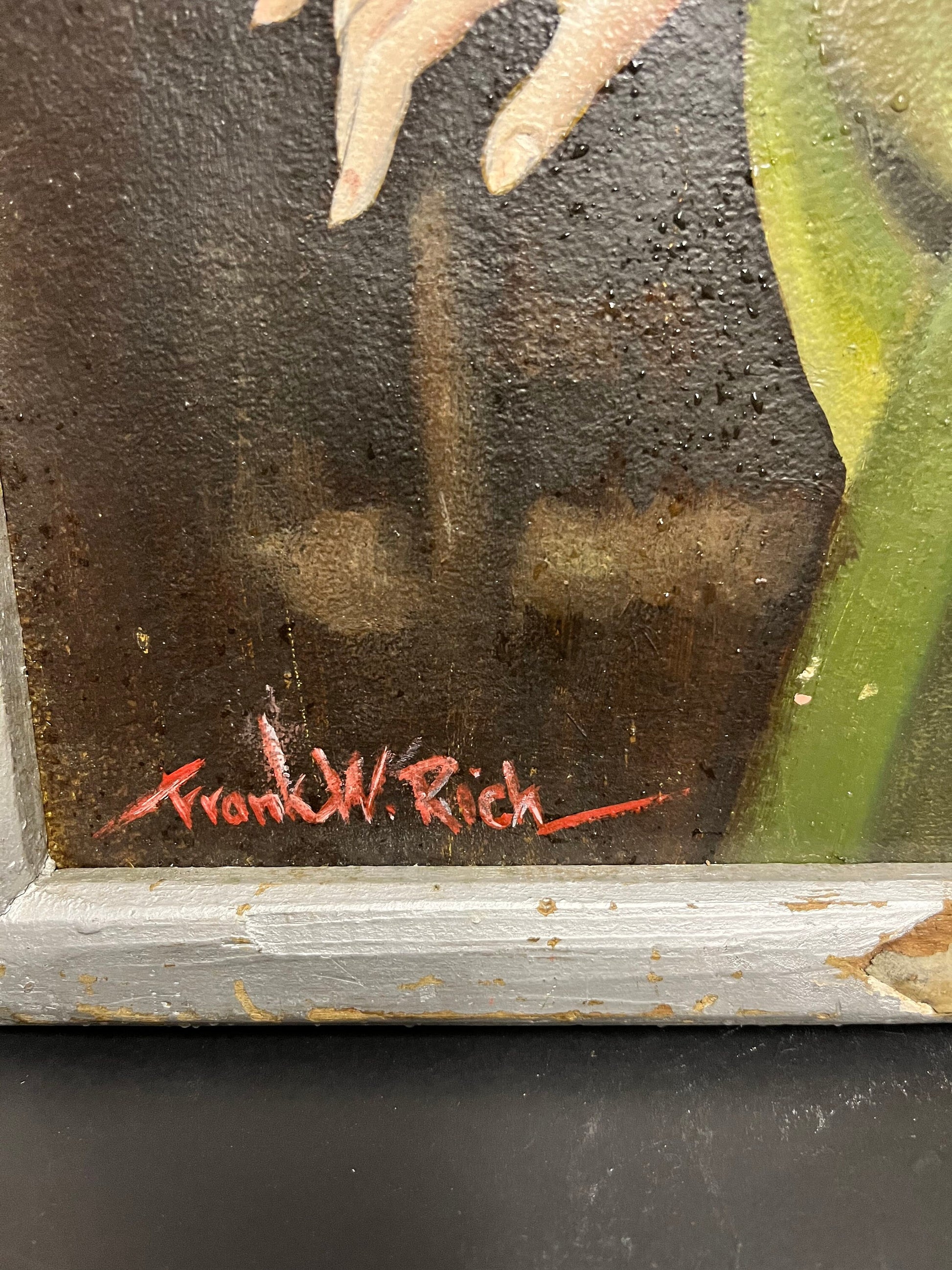 21 x 18 original painting in shabby chic frame absolute masterpiece, probably European late 19 century wonderful artwork, and great gift