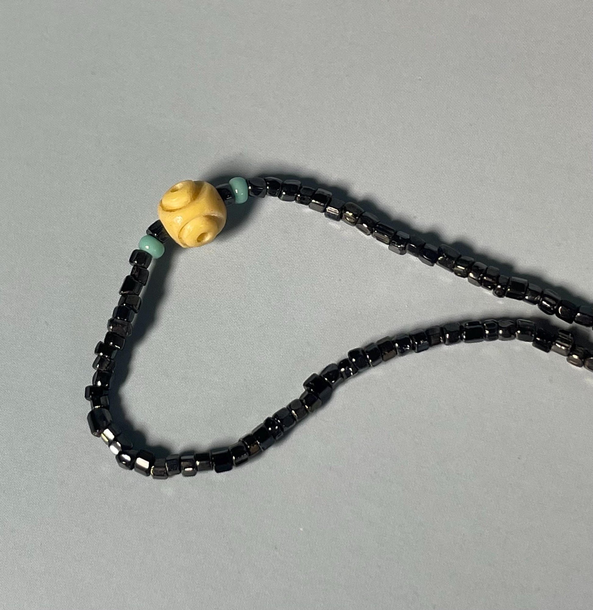 29 inch Tribal Necklace with Beads, Stone, Wood, and Bone 6 inch Tassel Drop