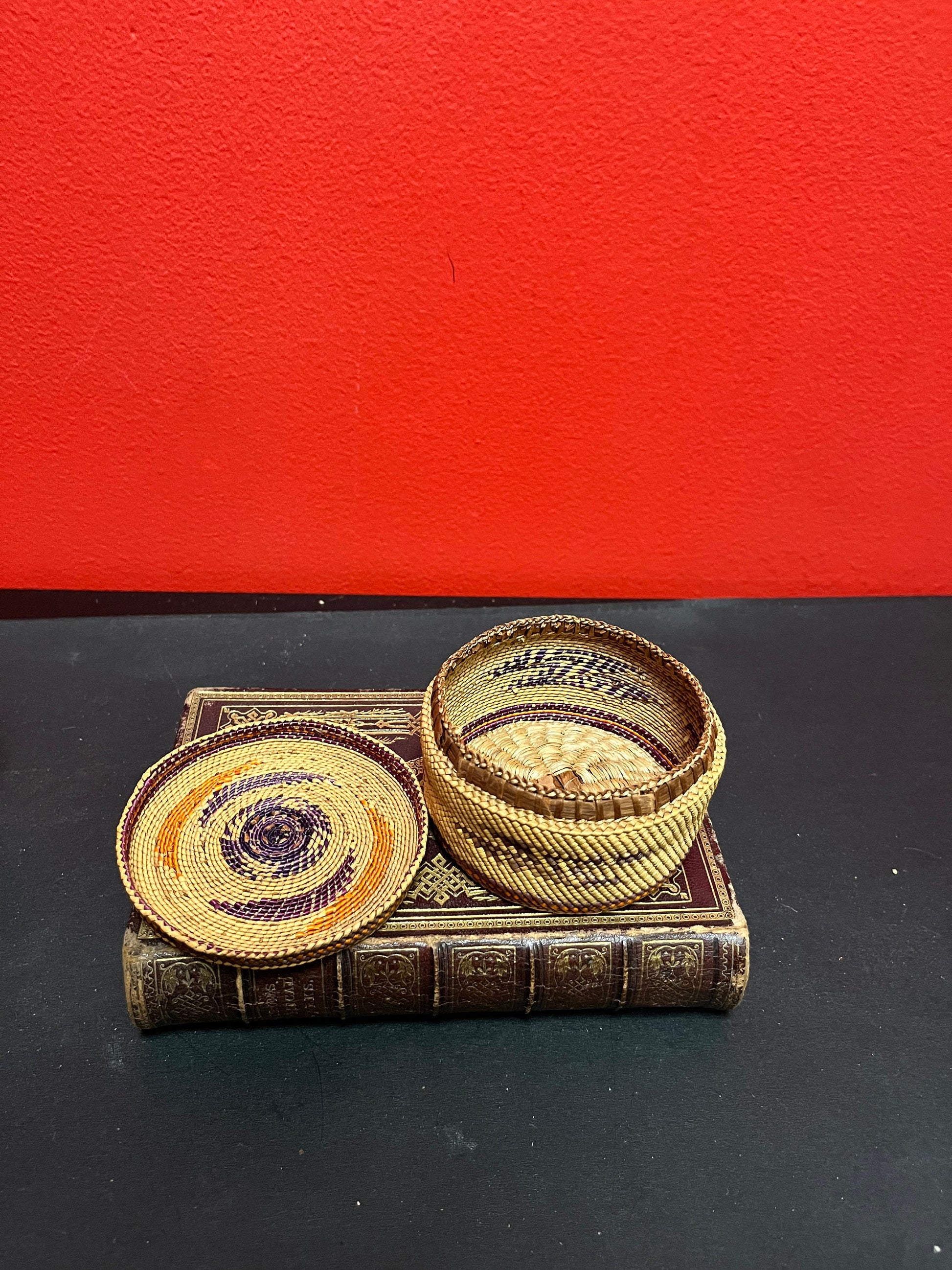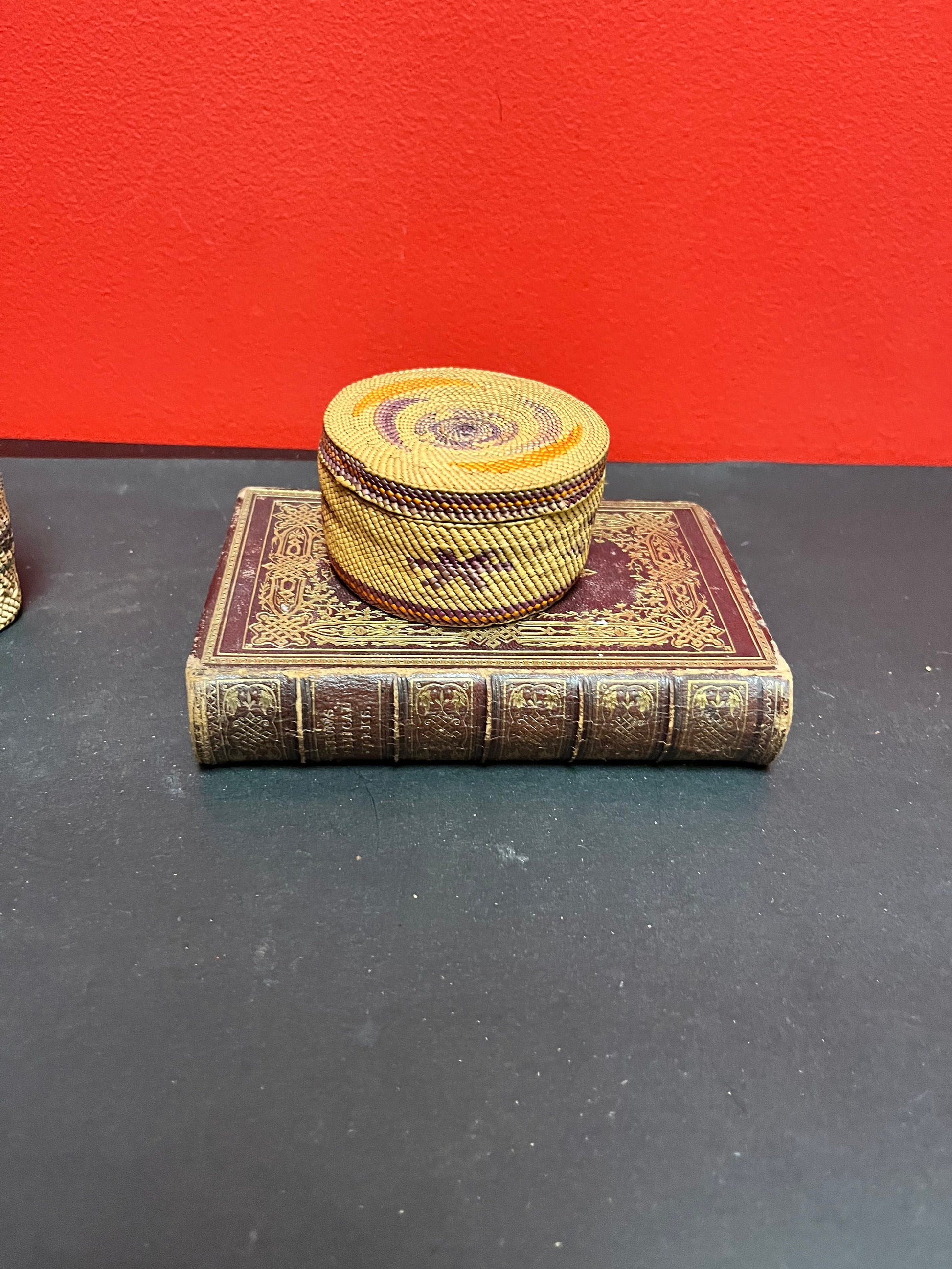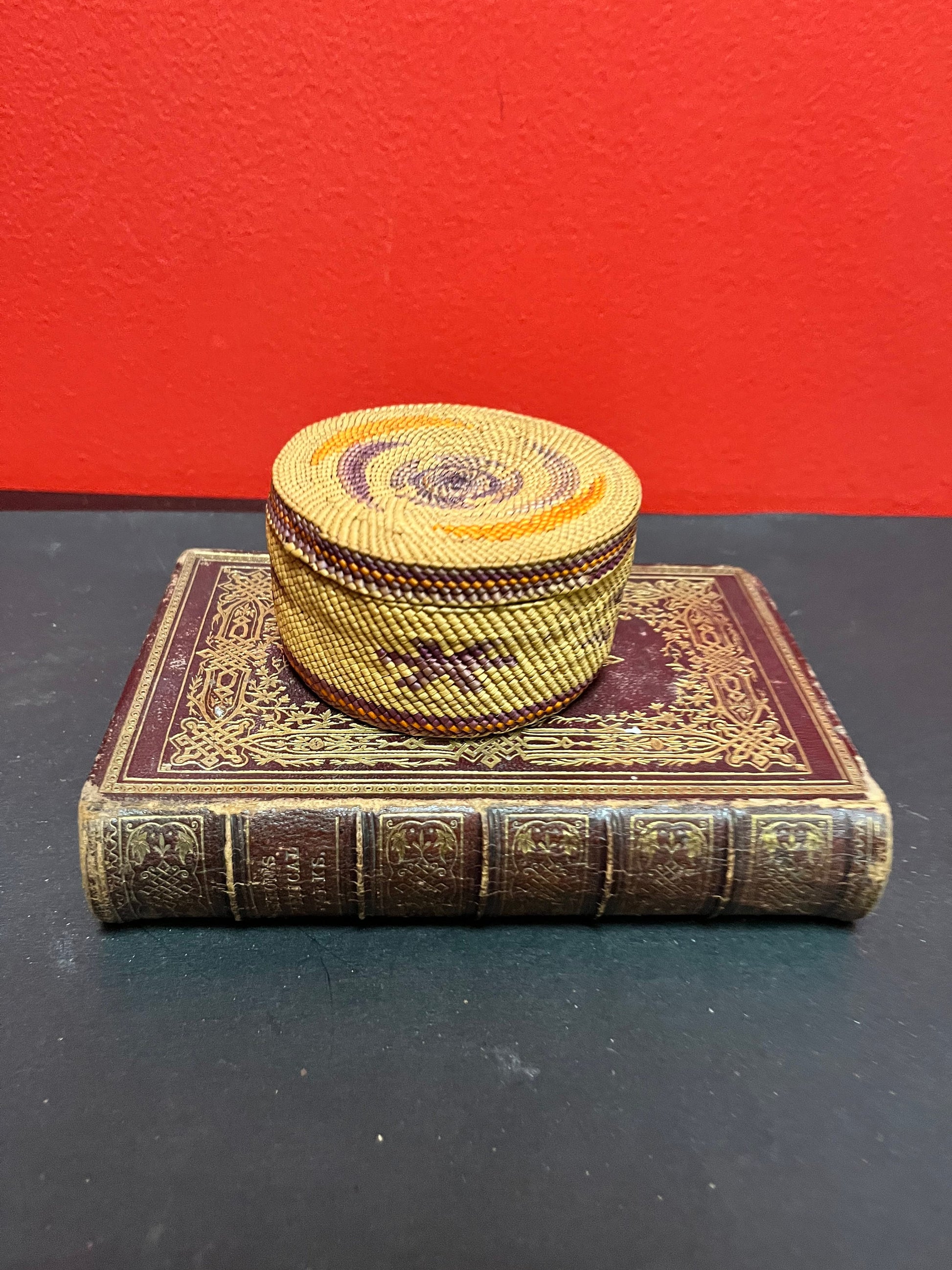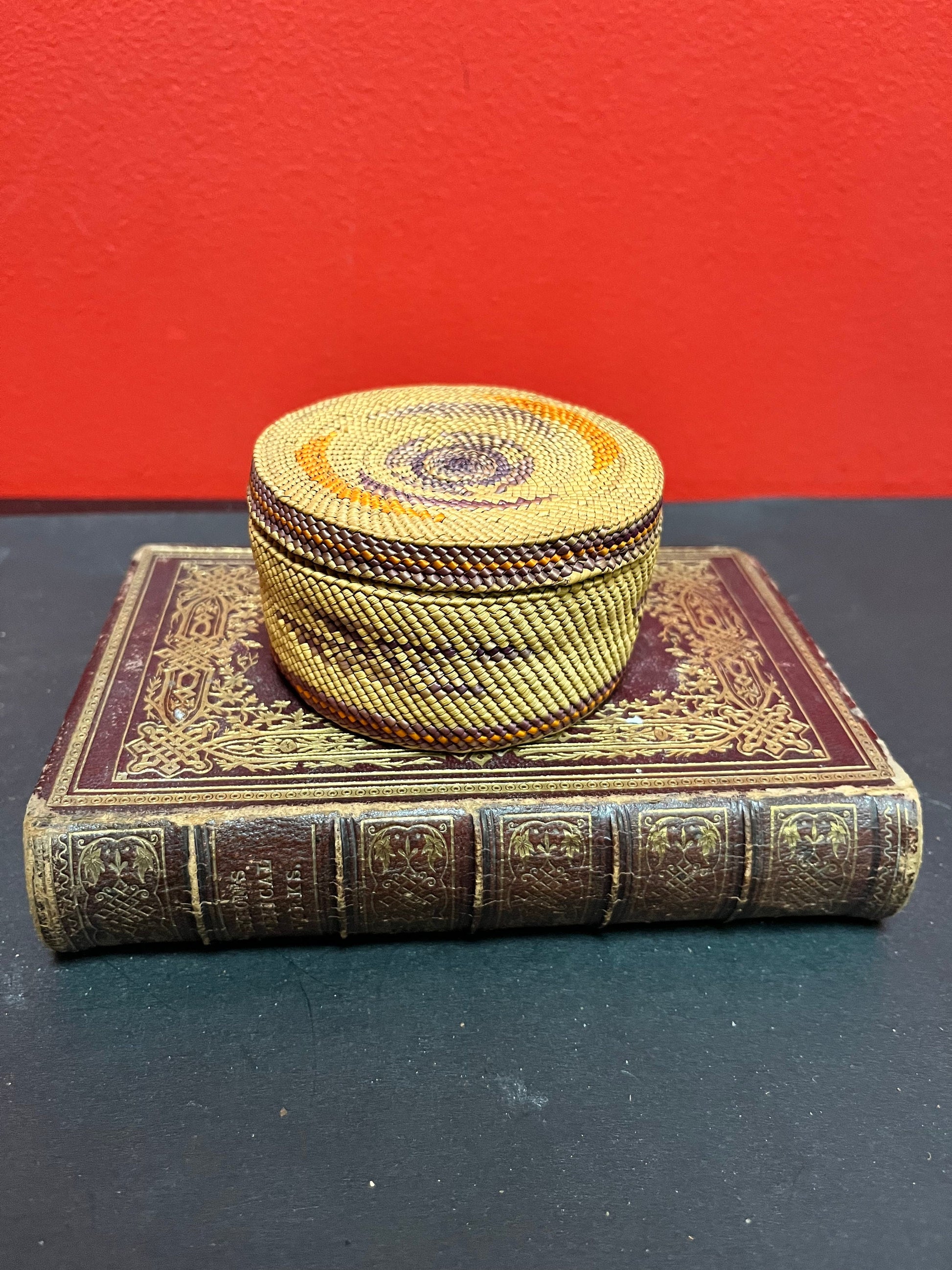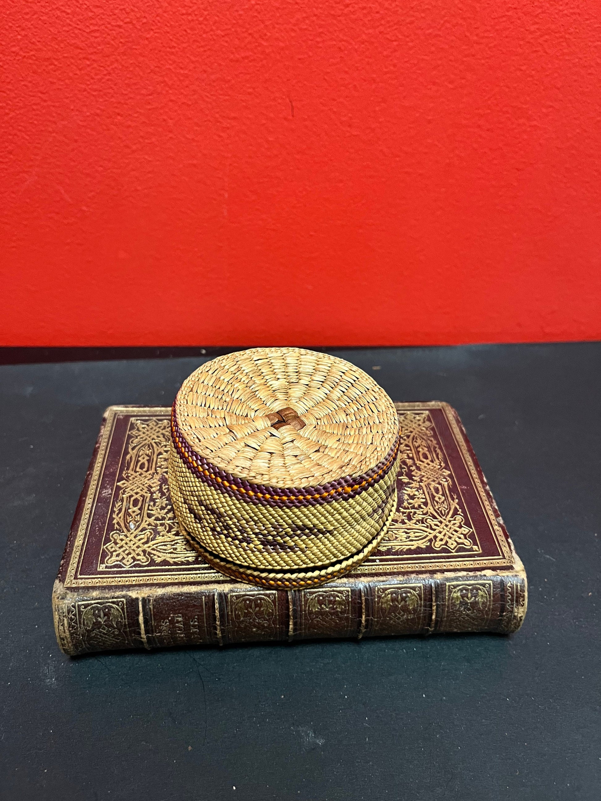3 1/2 x 2 high tightly woven stunning Indigenous, first nations pacific northwest coast antique basket fabulous condition