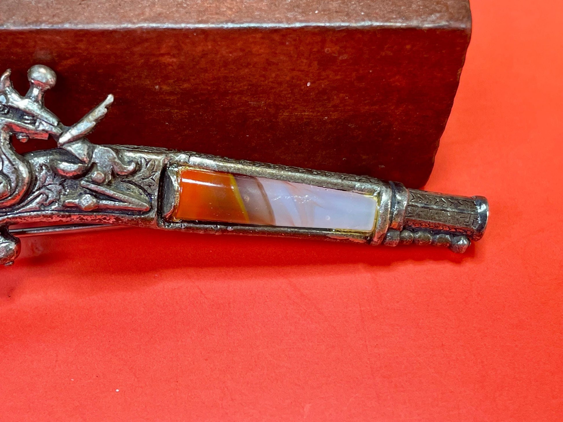 3.25 inch vintage gemstone gun brooch good condition and great gift