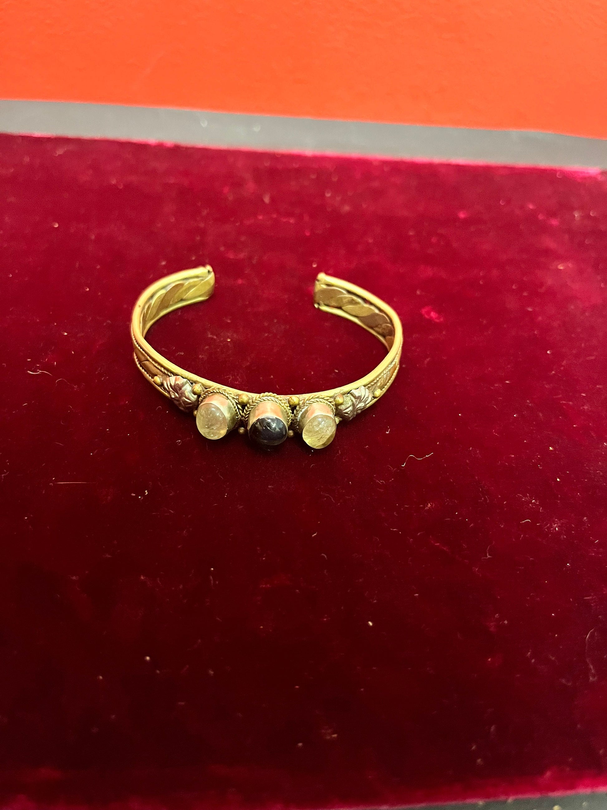 3 inch lovely copper silver and brass bracelet with cartouches very cool