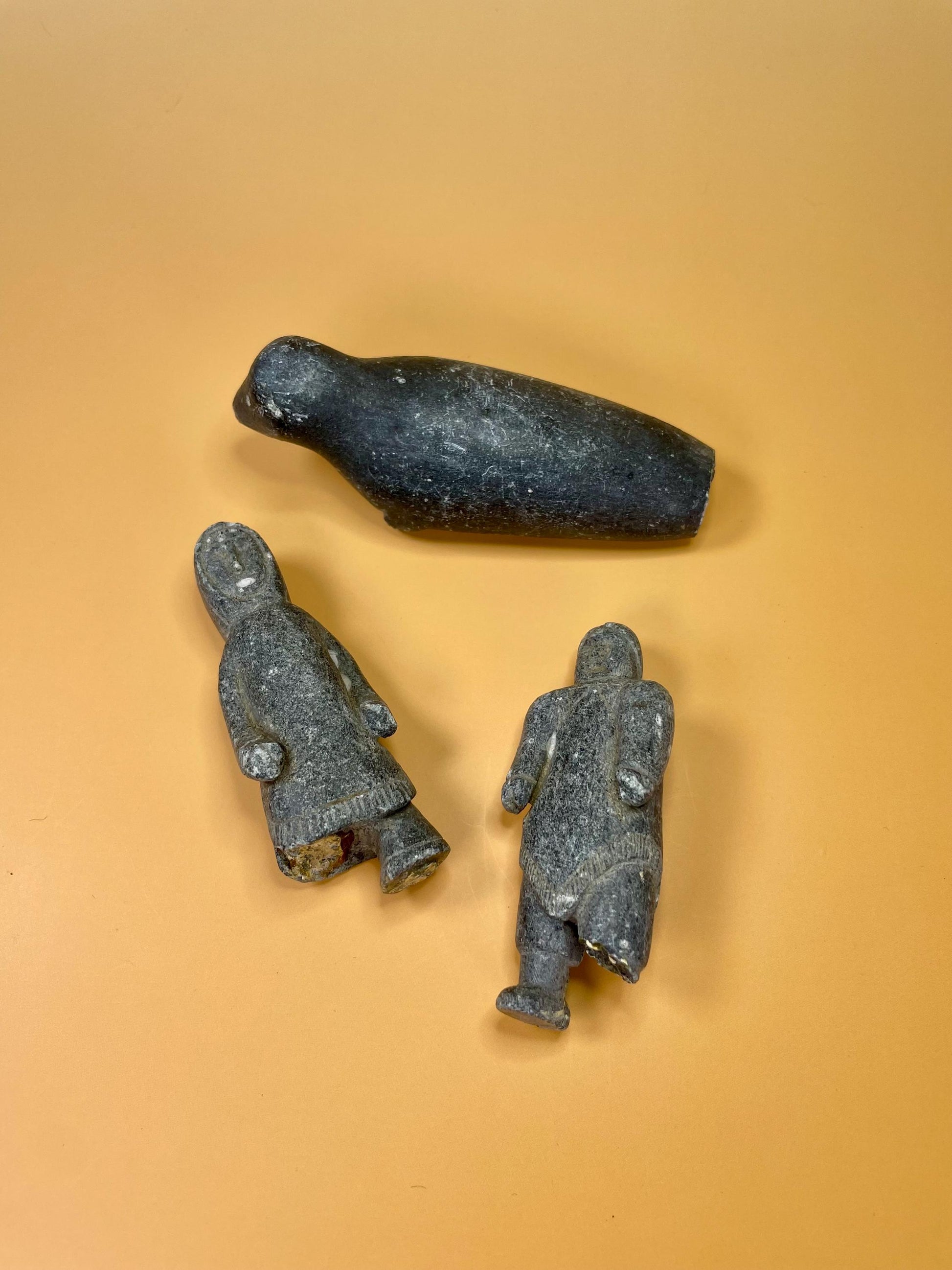 3 Indigenous Inuit soapstone carvings all three broken, so see photos and priced low accordingly