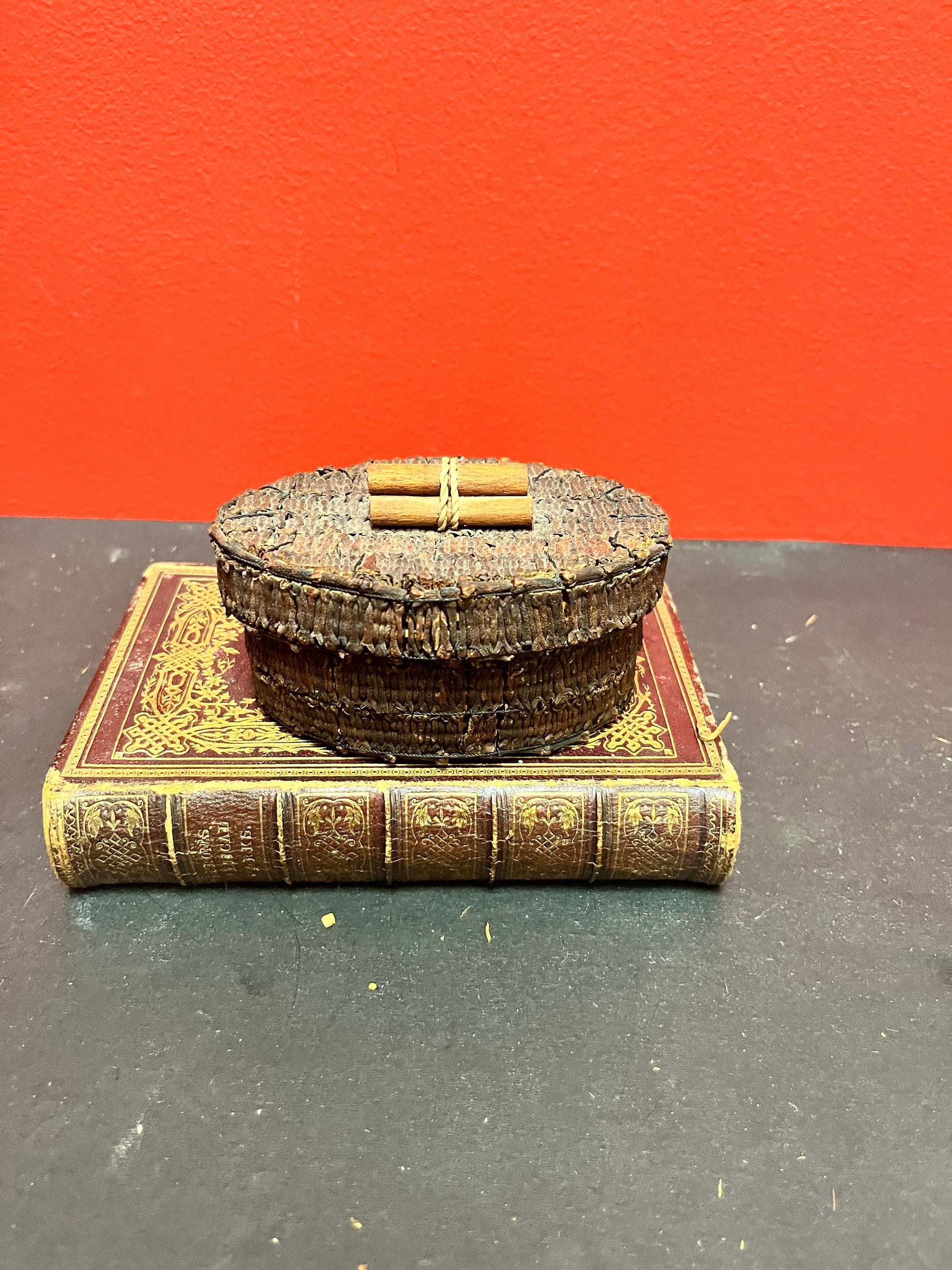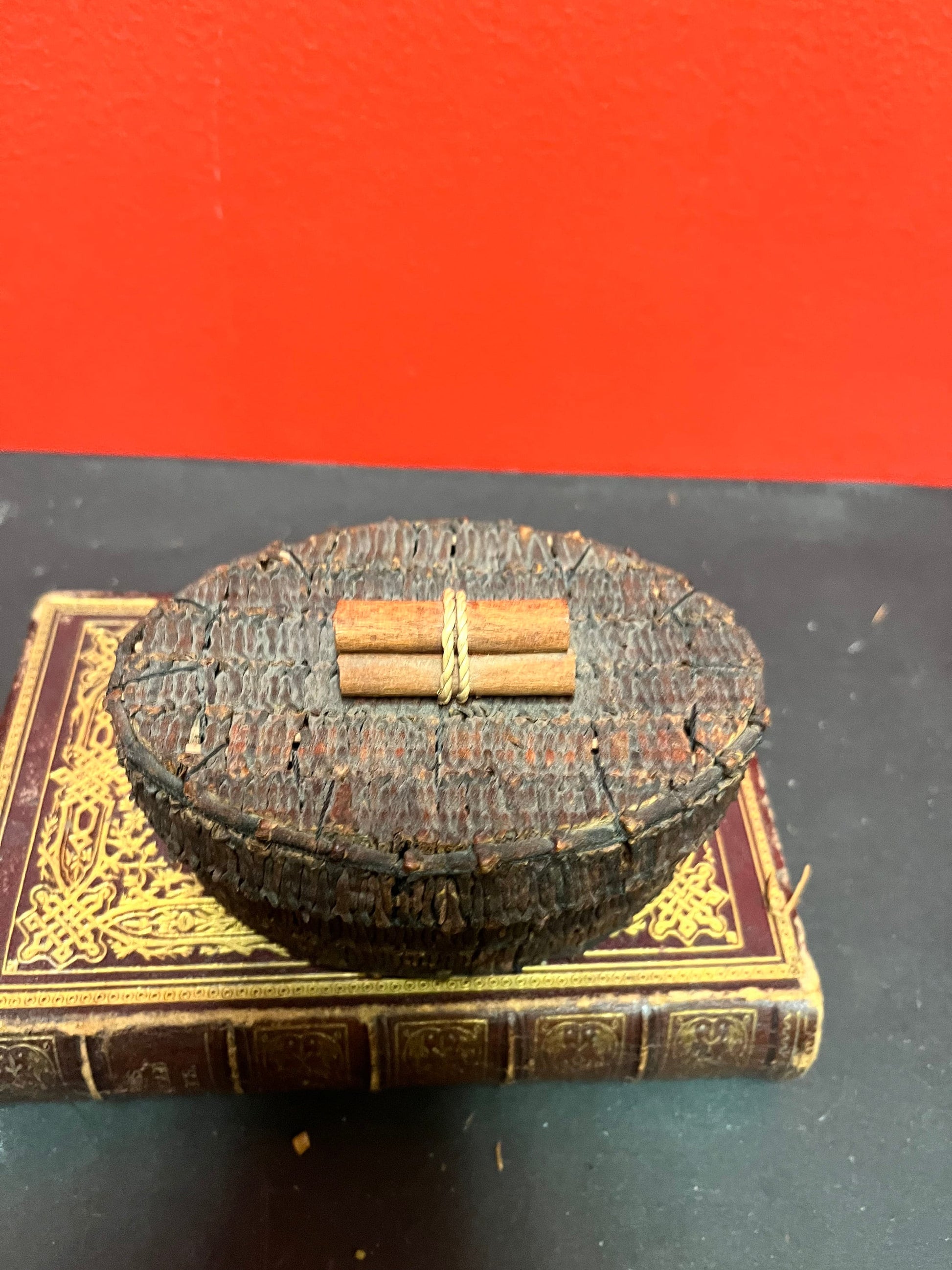 4 1/2 x 3 x 2 high antique unique indigenous First Nations bark basket hmm wow cool piece