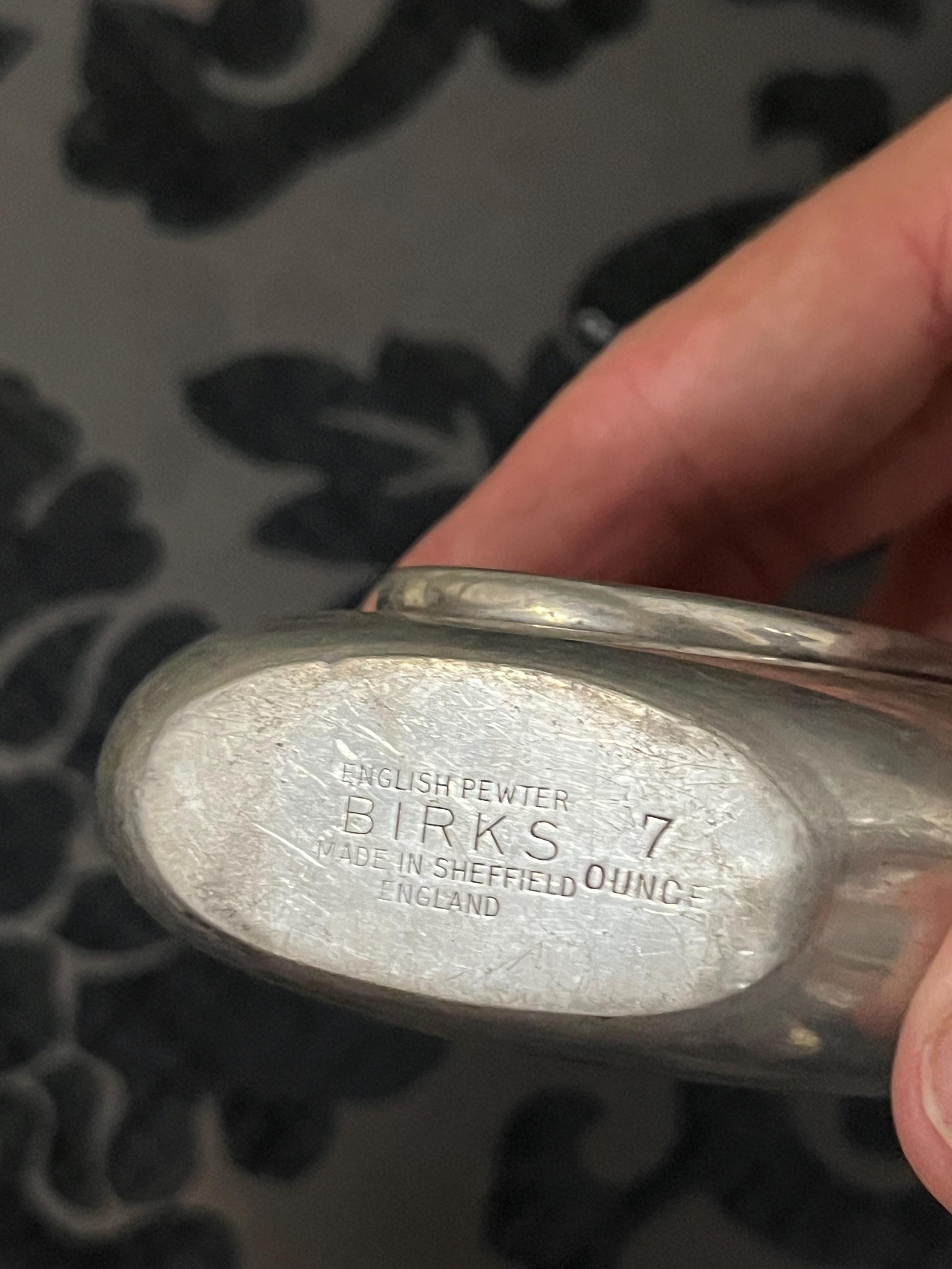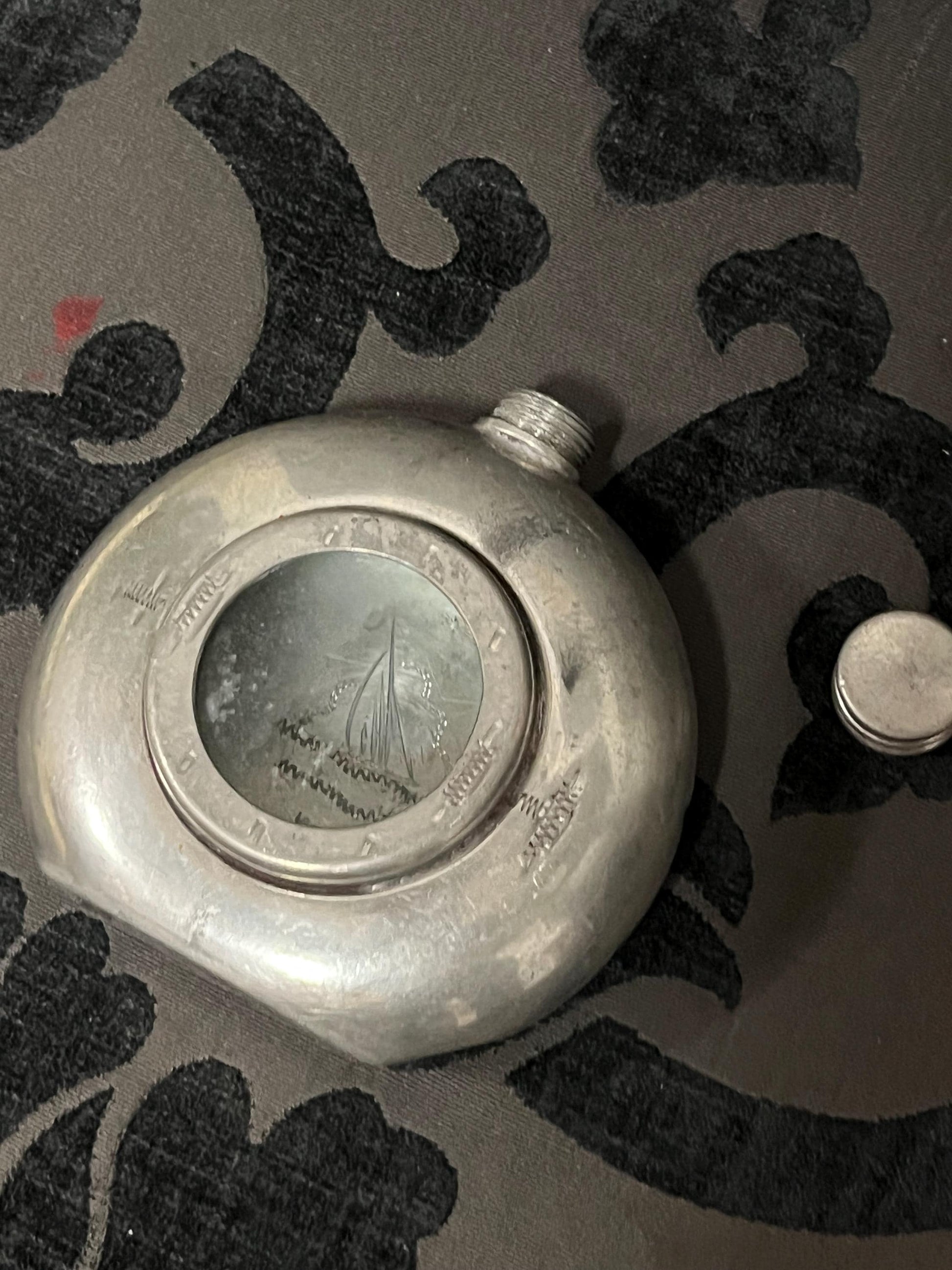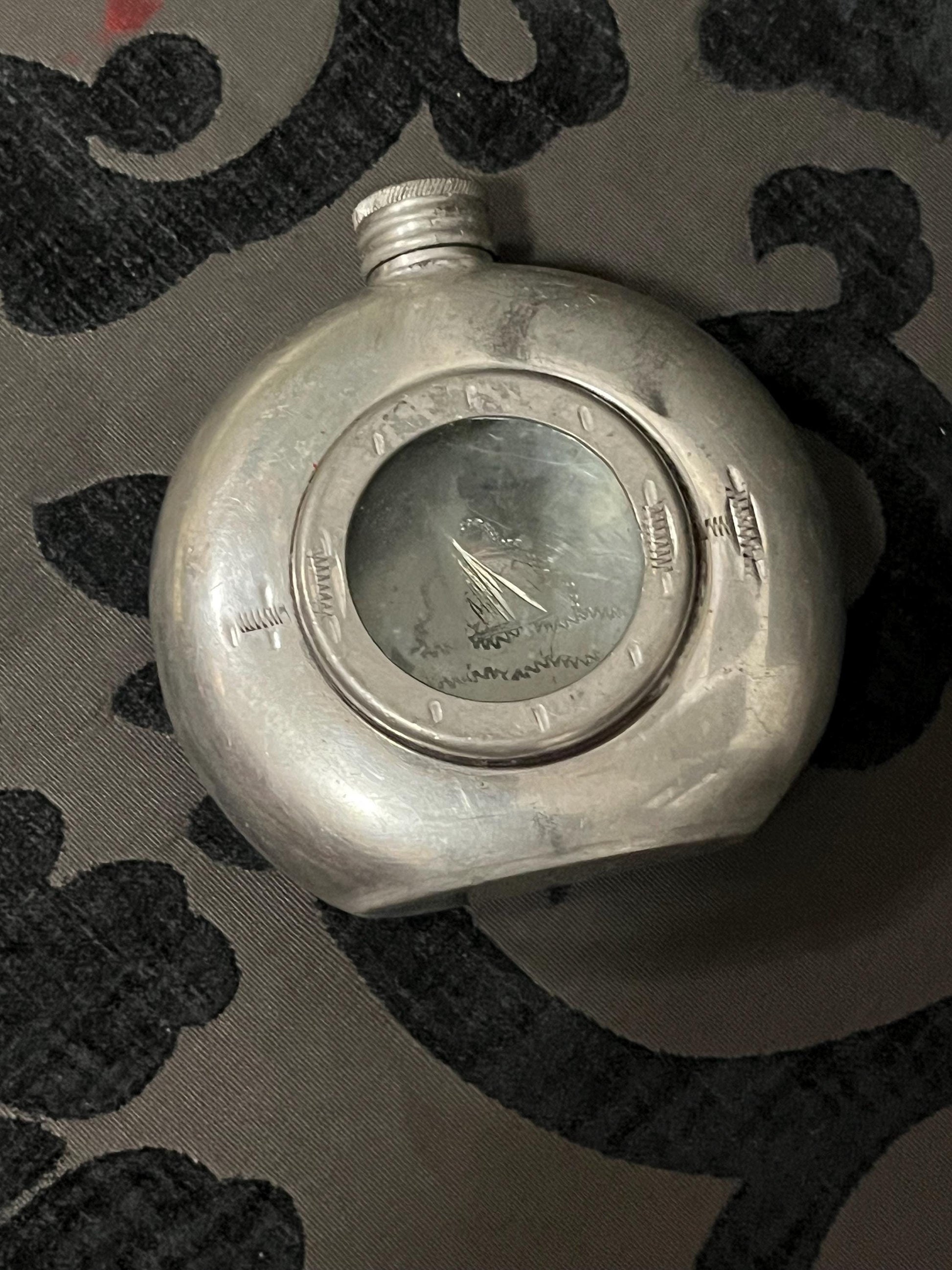 4.5 inch tall BIRKS British pewter nautical flask antique condition and great value