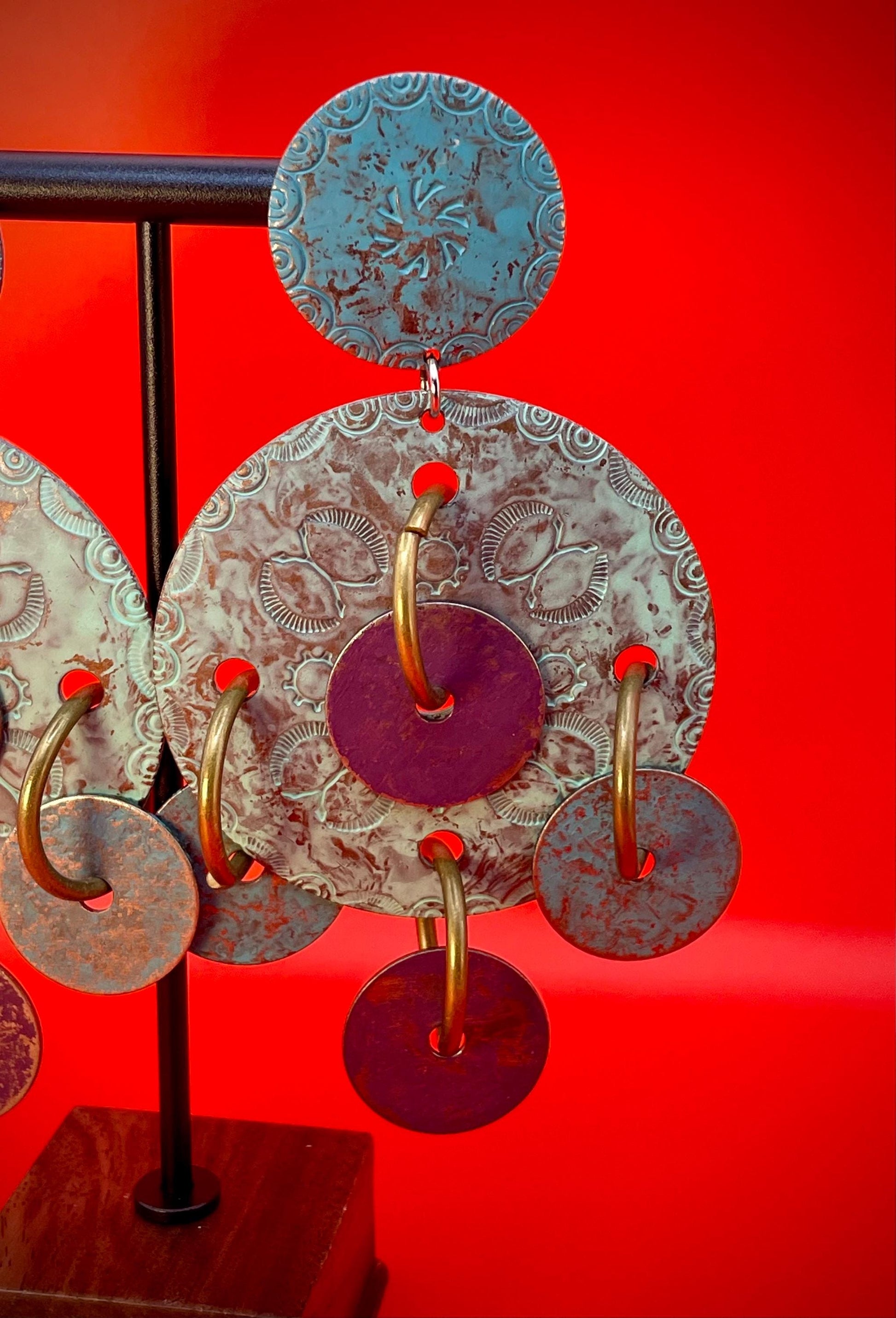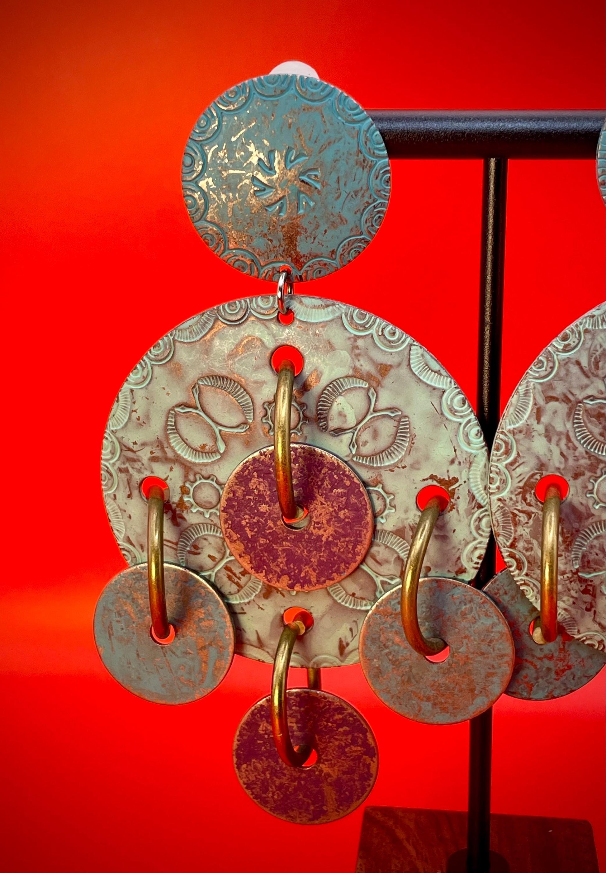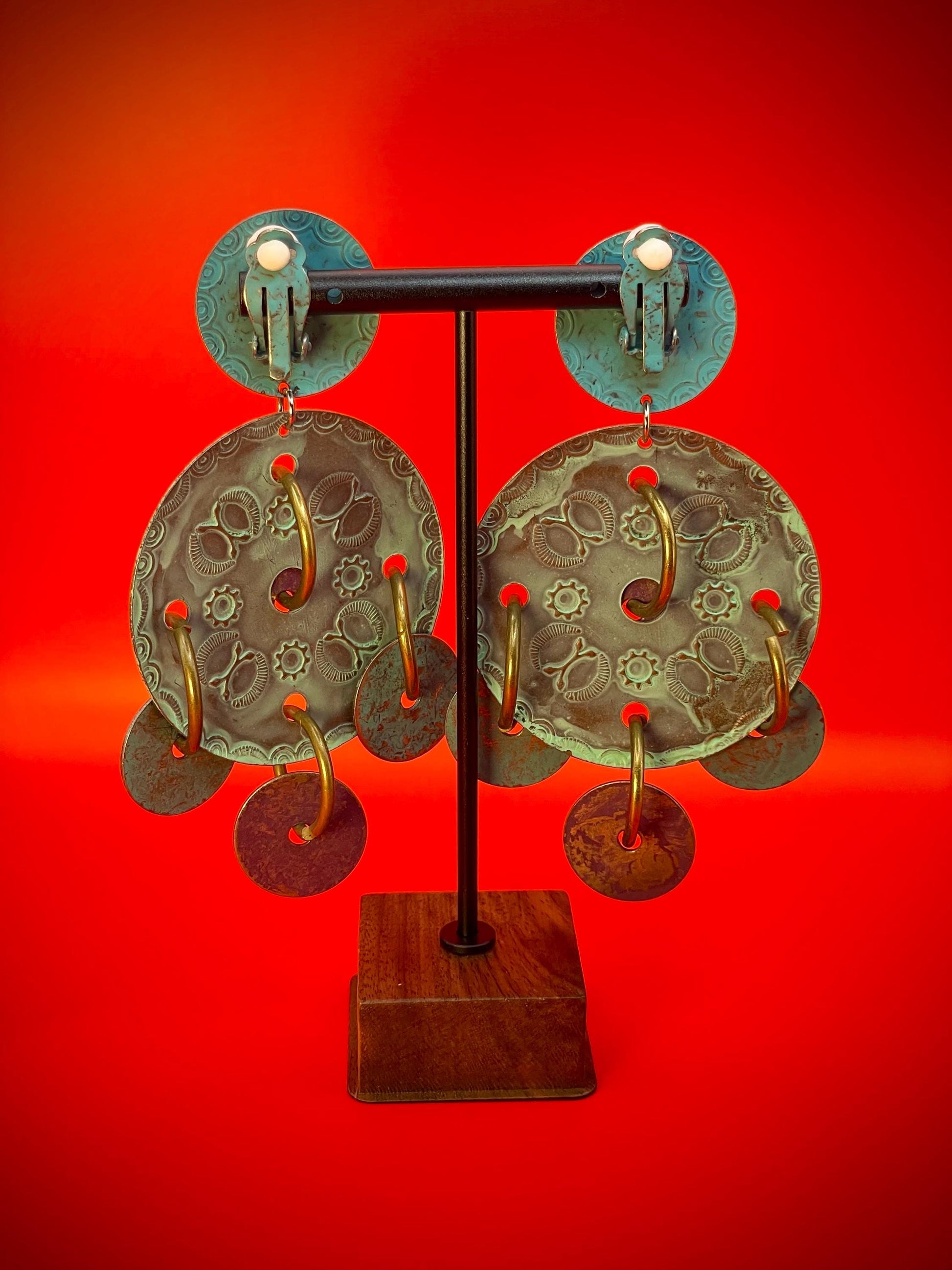 Add a bold touch to your style with these vintage bronze clip-on earrings, standing out at an impressive 4 inches long.