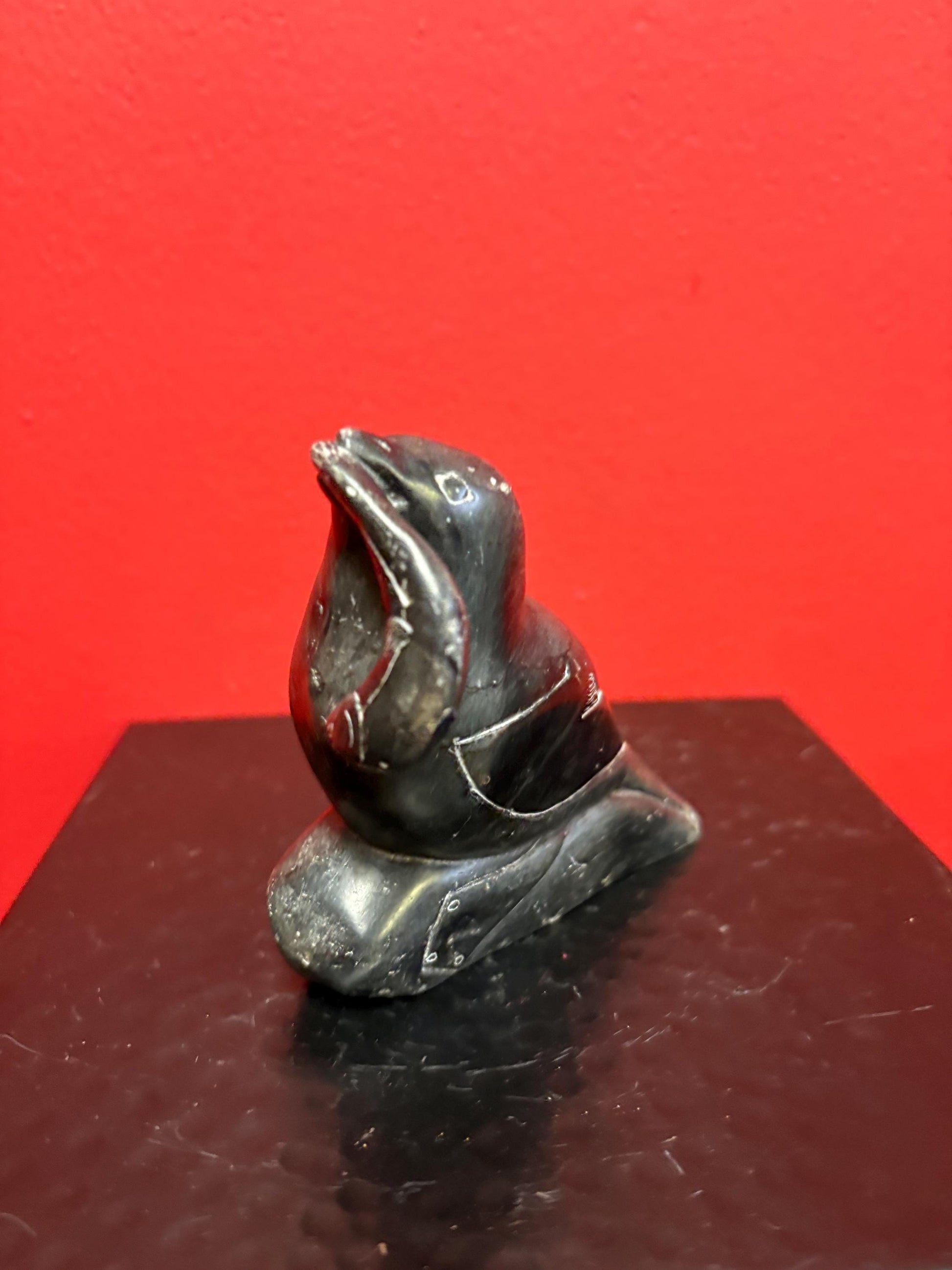 4 x 4 inch signed indigenous first nations, Inuit soapstone seal and salmon good condition great value