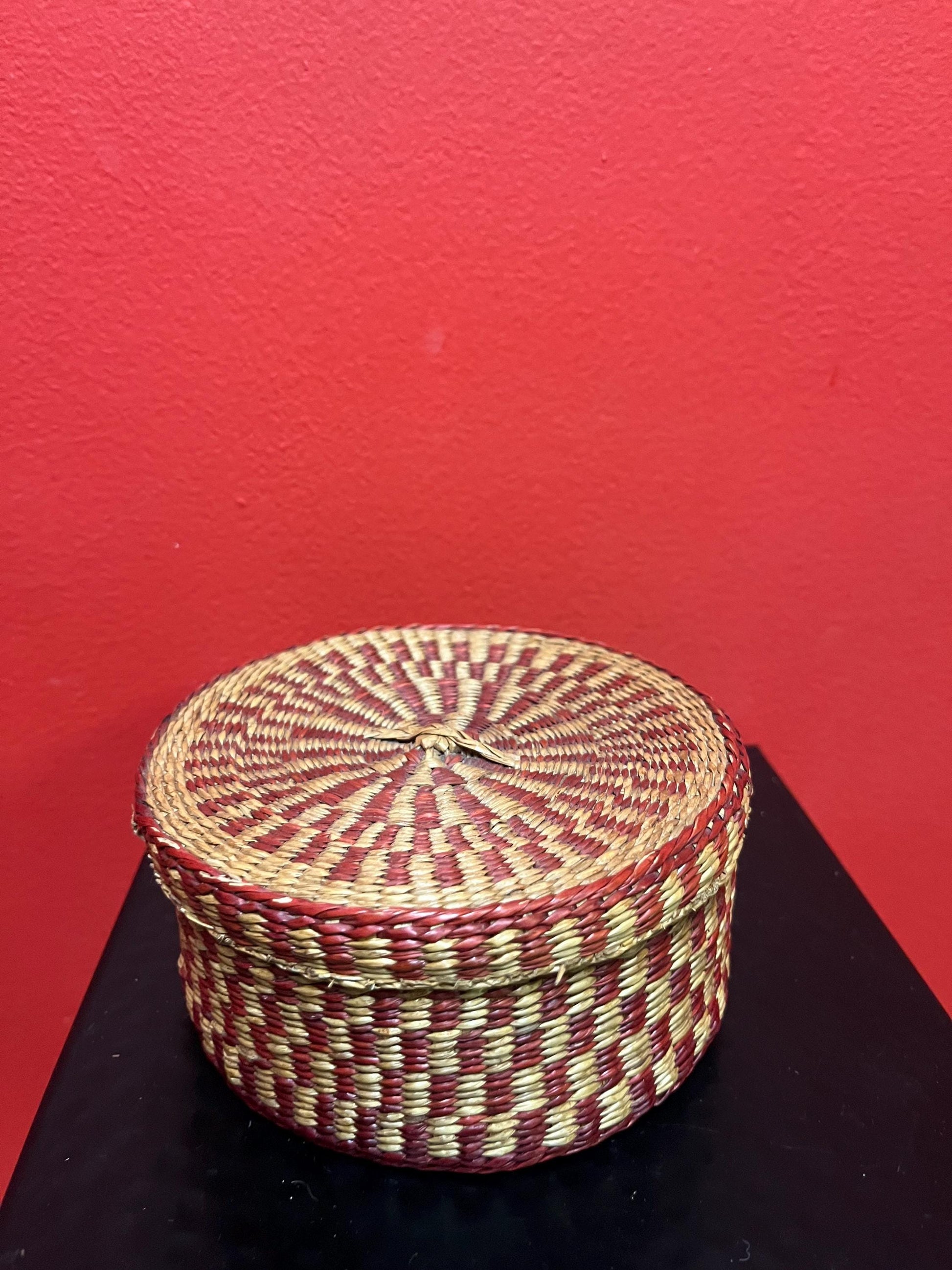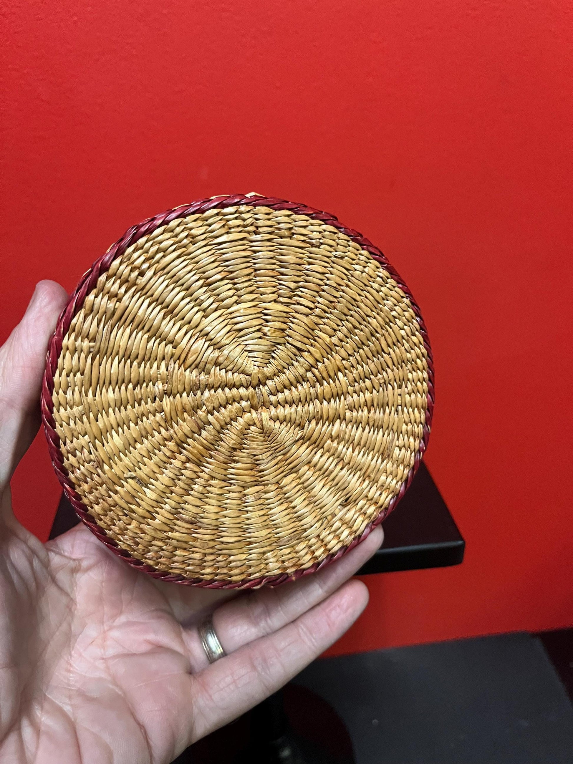 5 by 2.5 inch high Chinese woven basket in lovely condition good gift
