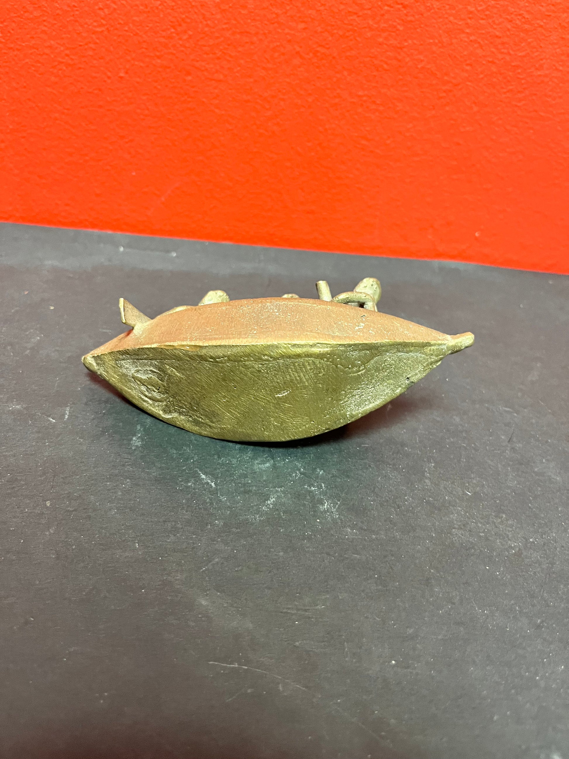 5 inch long African Ashanti bronze men rowing a canoe lovely detail