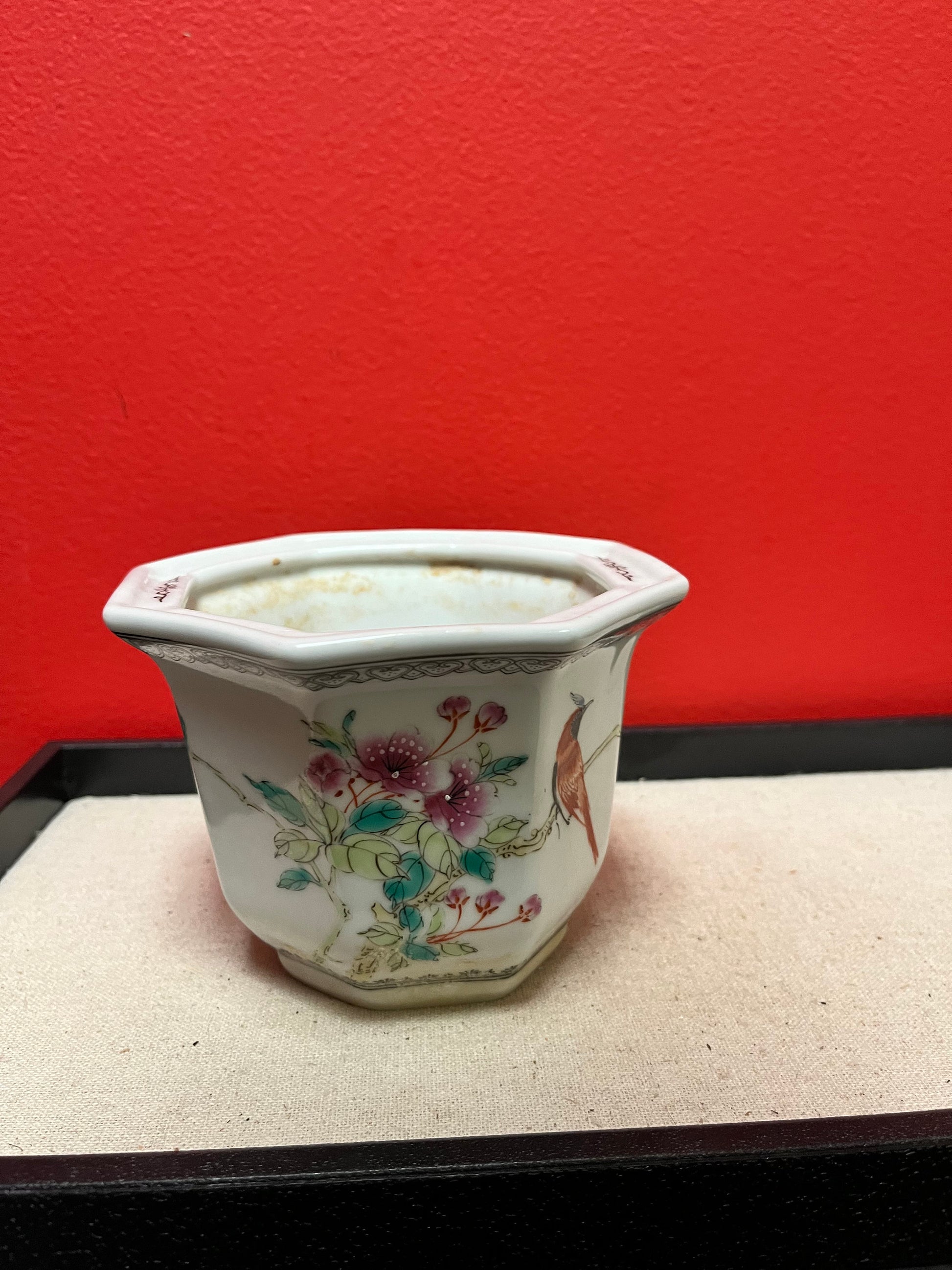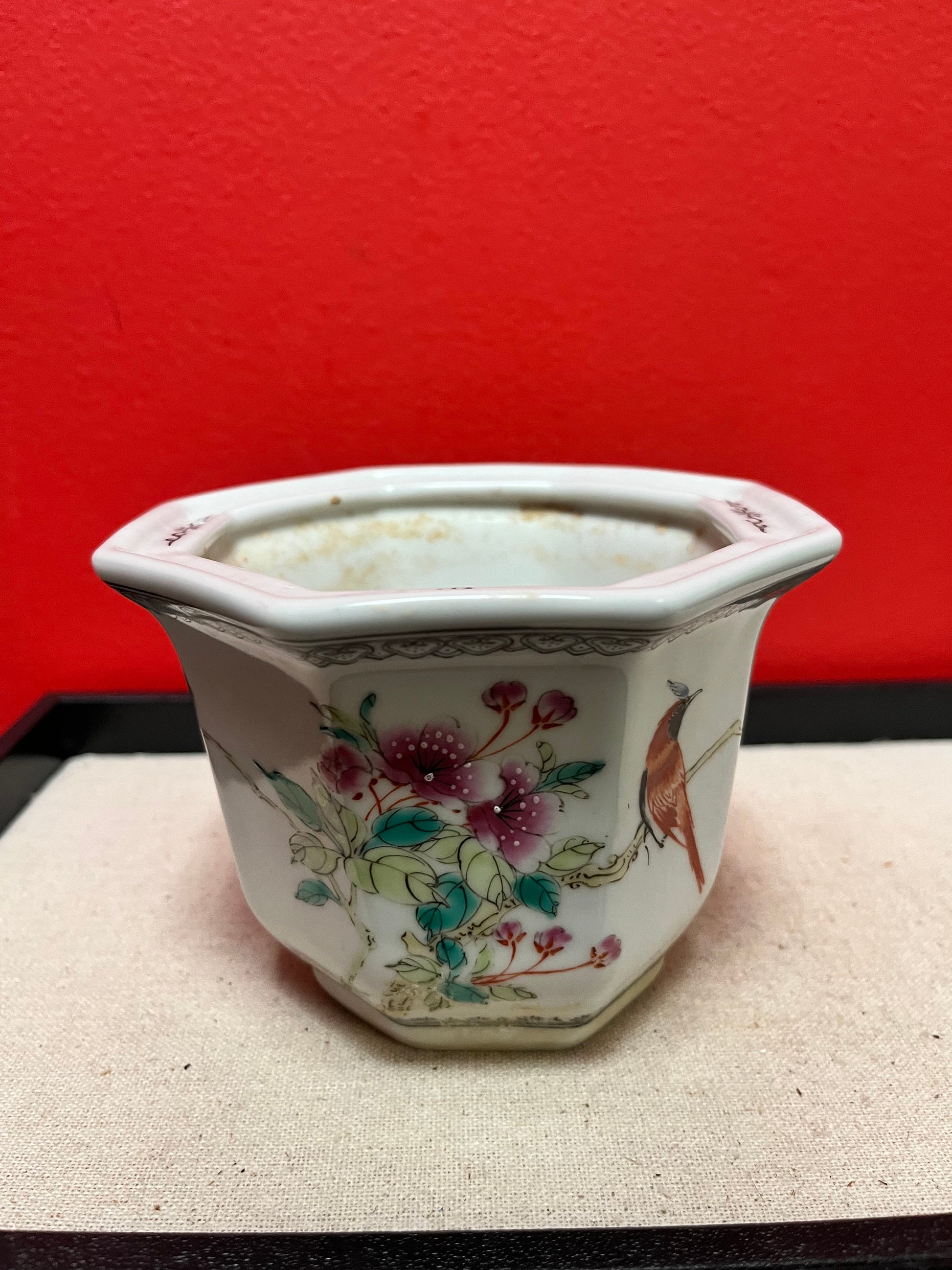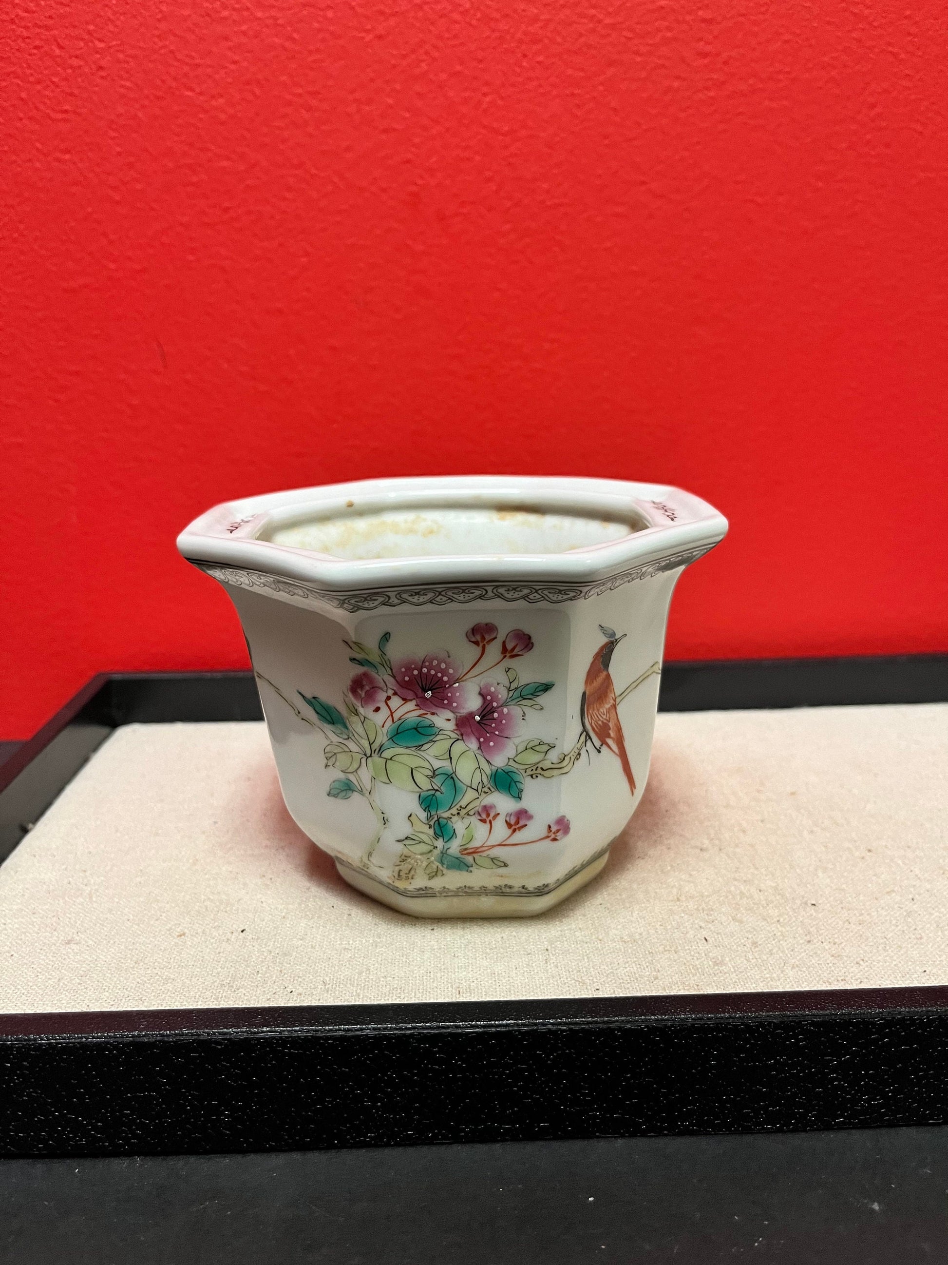 5 x 4“ high Chinese signed porcelain plant pot great condition