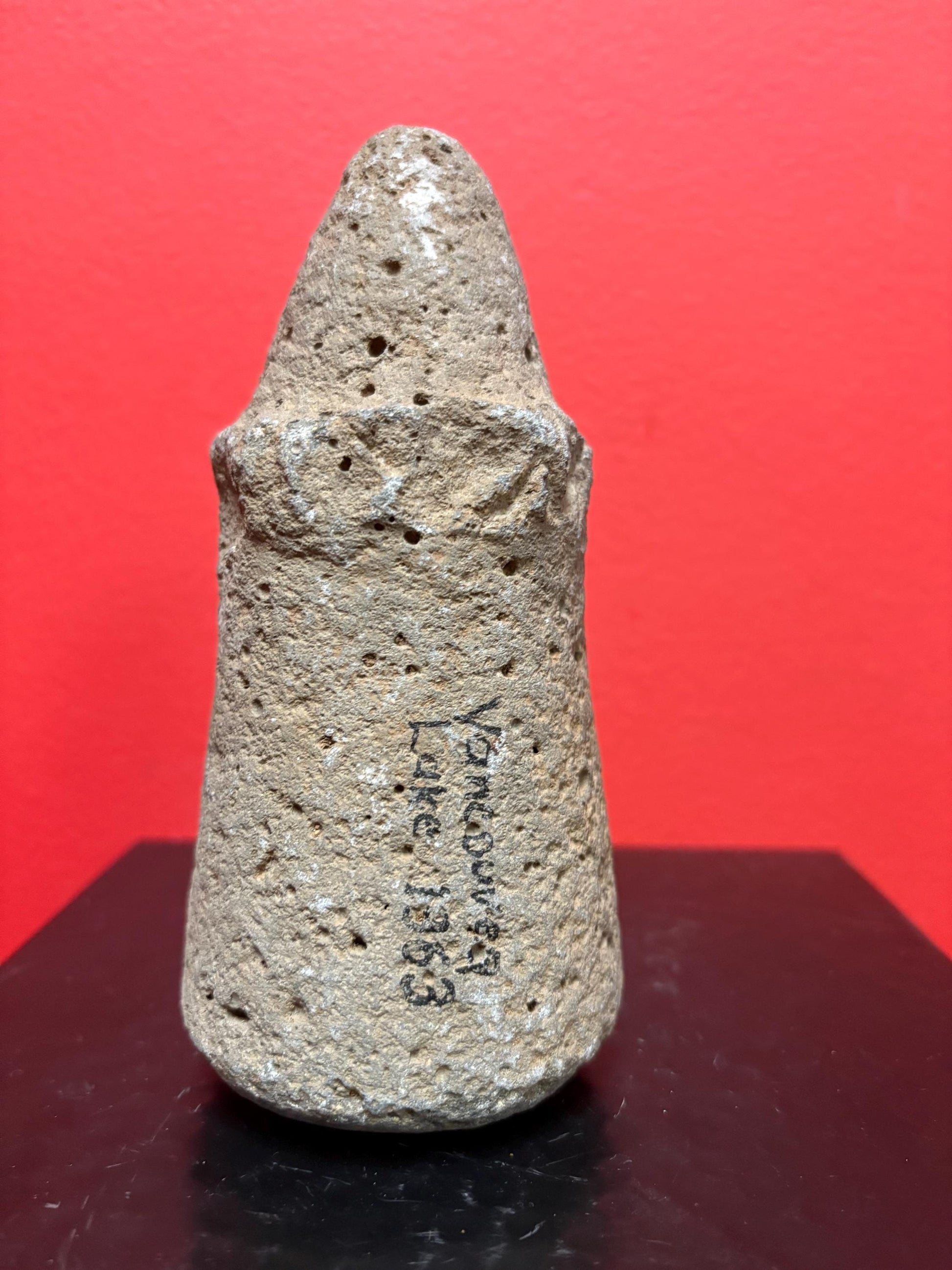 6 inch high authentic antique indigenous first nations Pacific Northwest Coast stone plummet tool from Vancouver Island collection