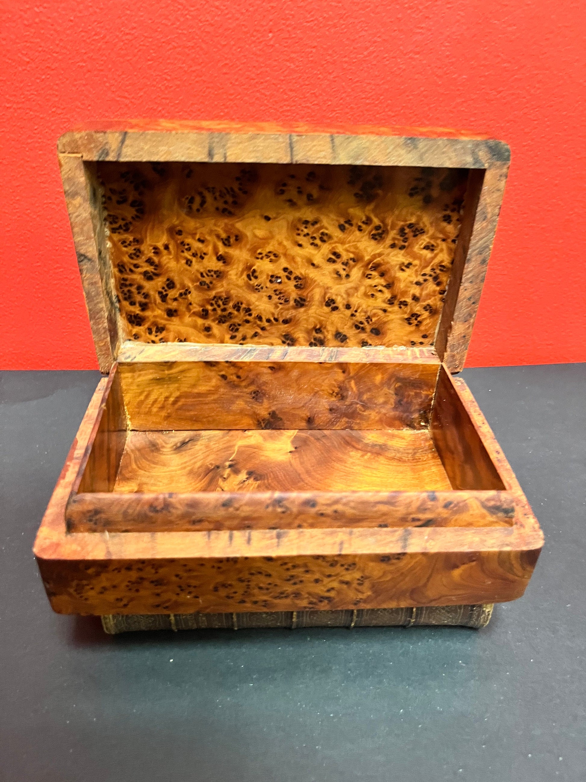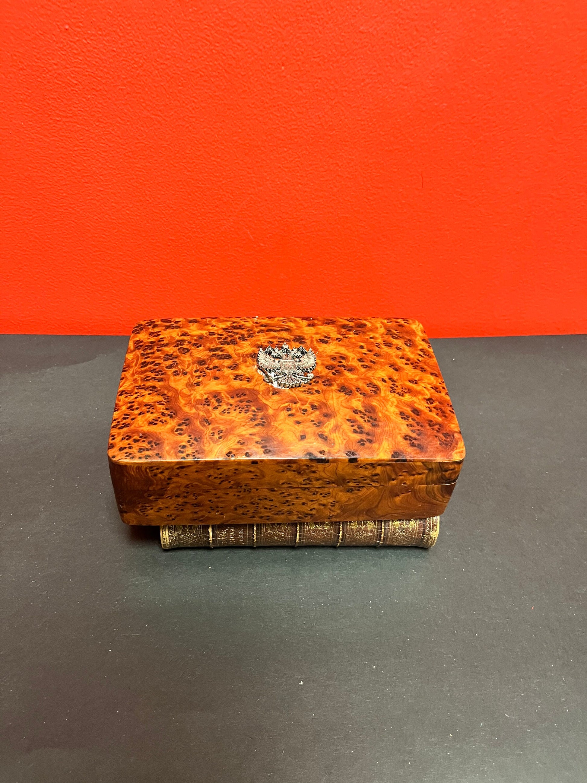 7 1/2 x 3, Eastern European walnut antique box with silver royal emblem