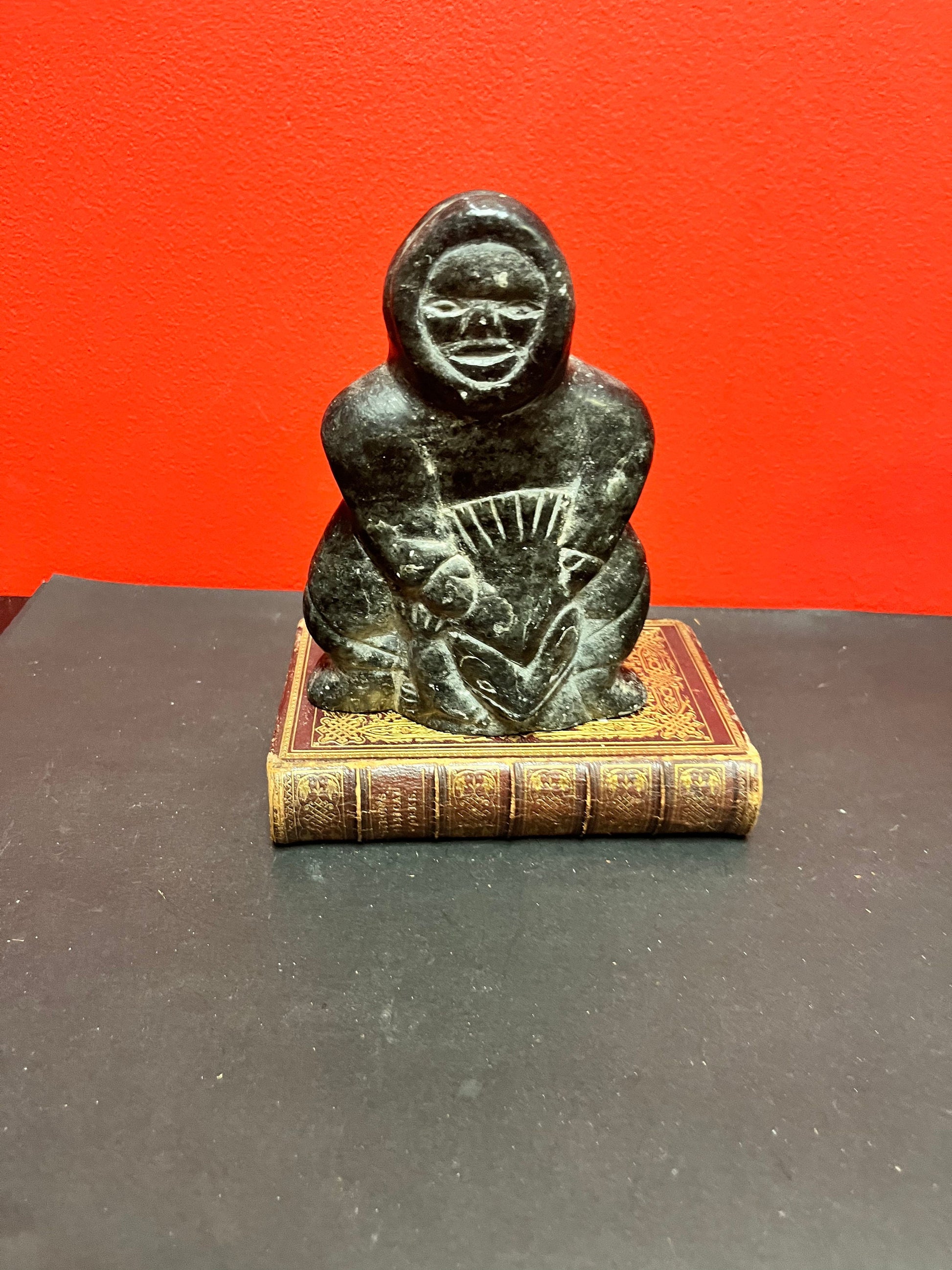 7 inch inuit soapstone statue of a hunter was a fish 1975 great condition