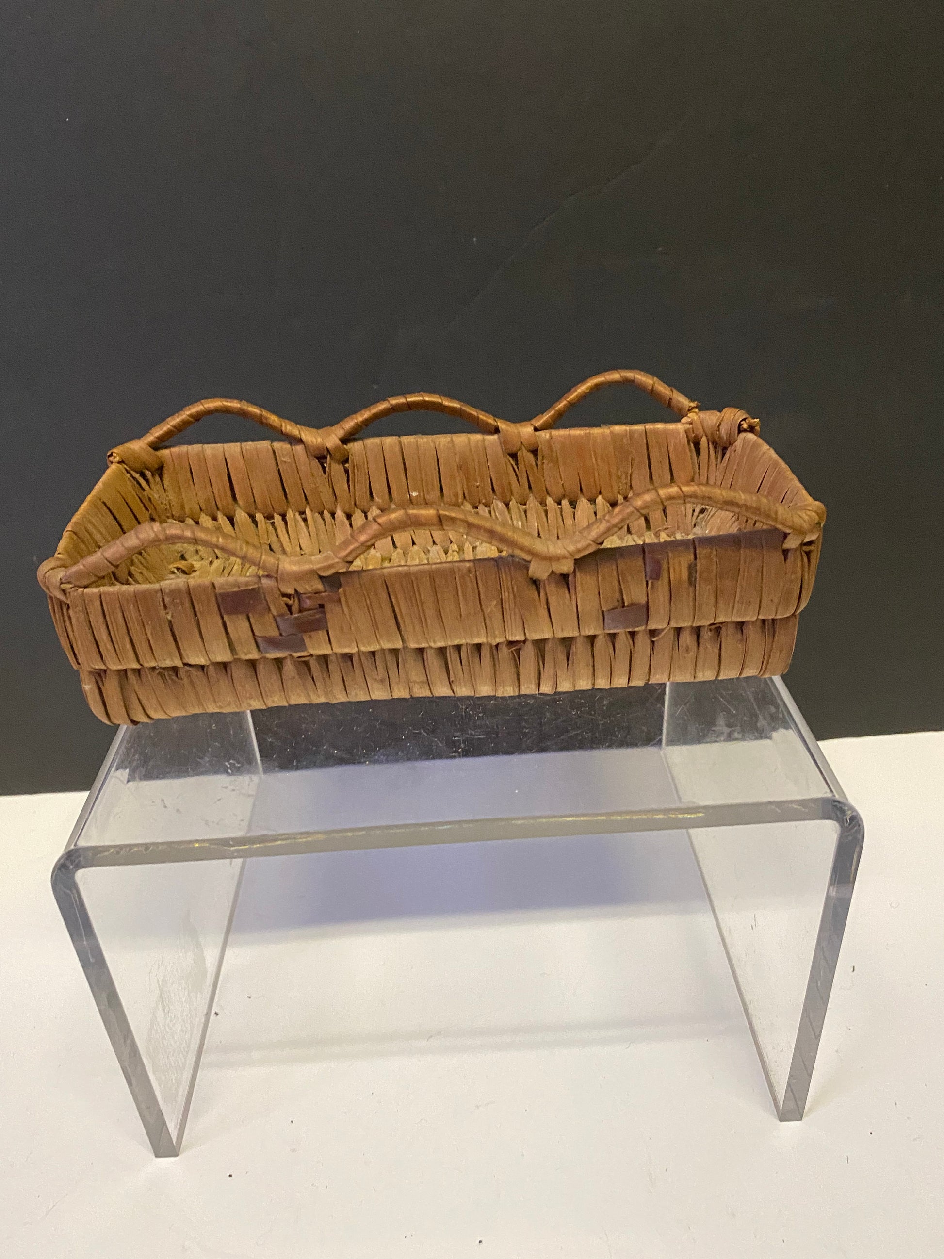 7 inch Long superb Indigenous First Nations coast Salish unusual basket small damage on one corner