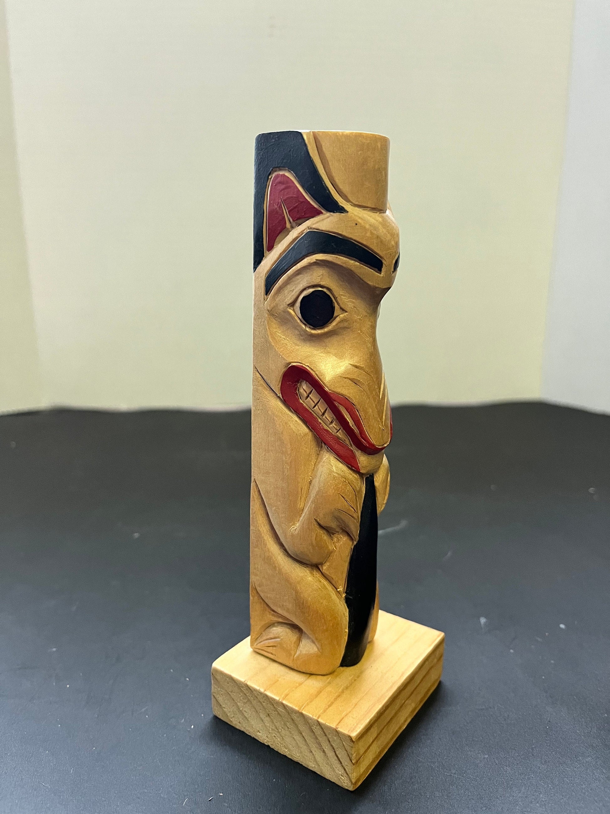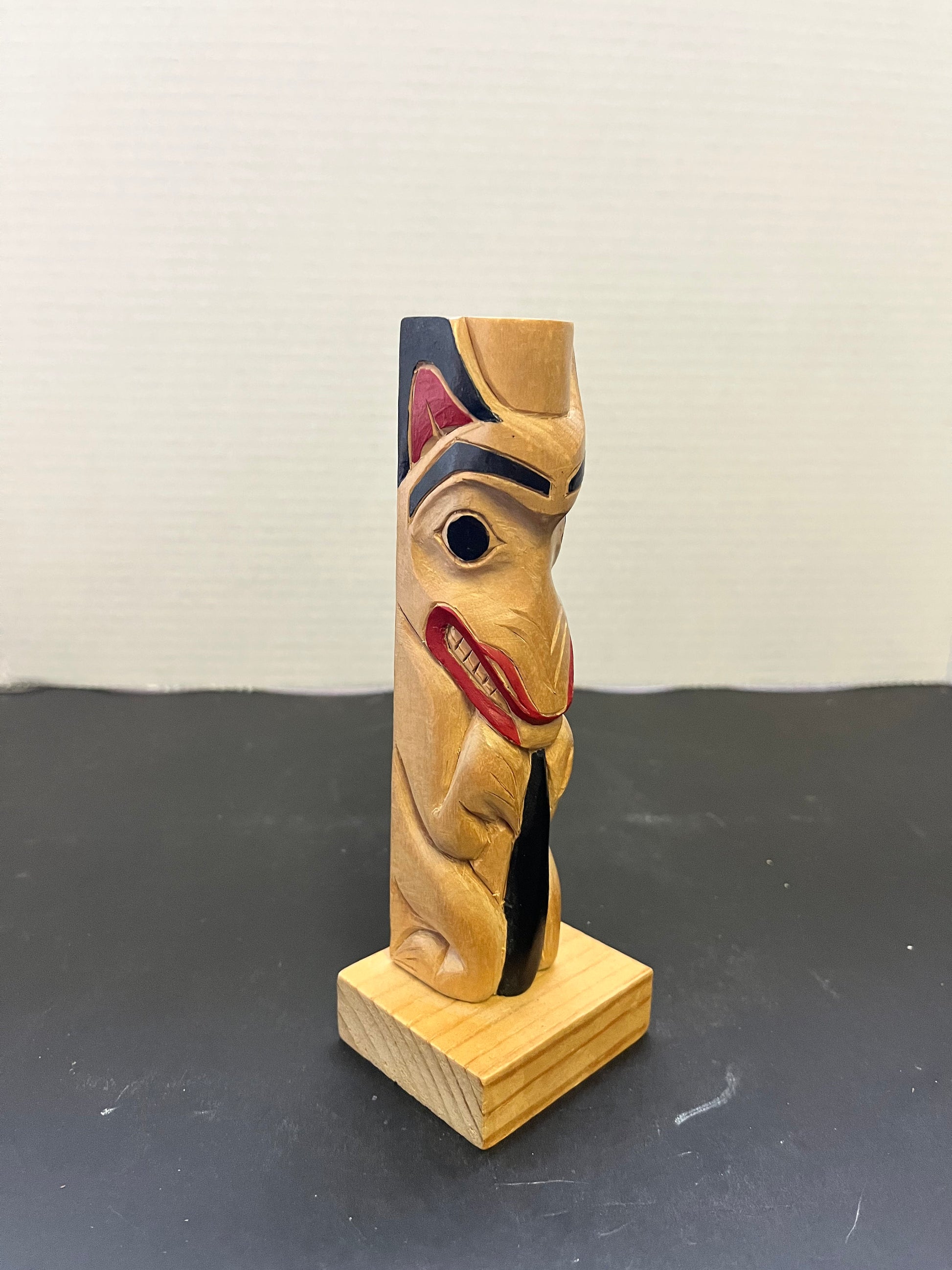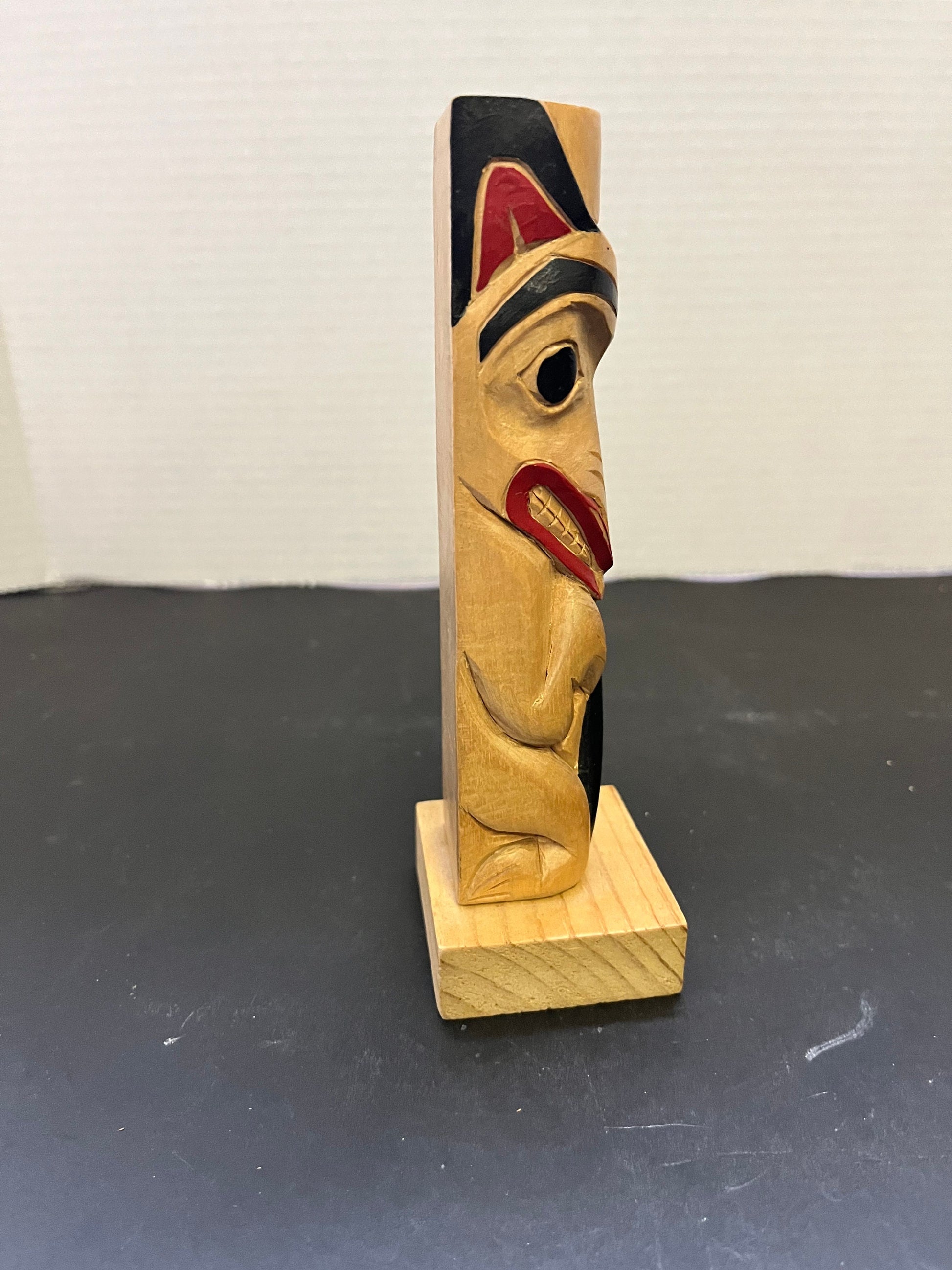 7 x 2 1/2 x 2 deep fabulous indigenous first nations pacific northwest coast, signed by R Tait unreal cedar carving and painting - wow