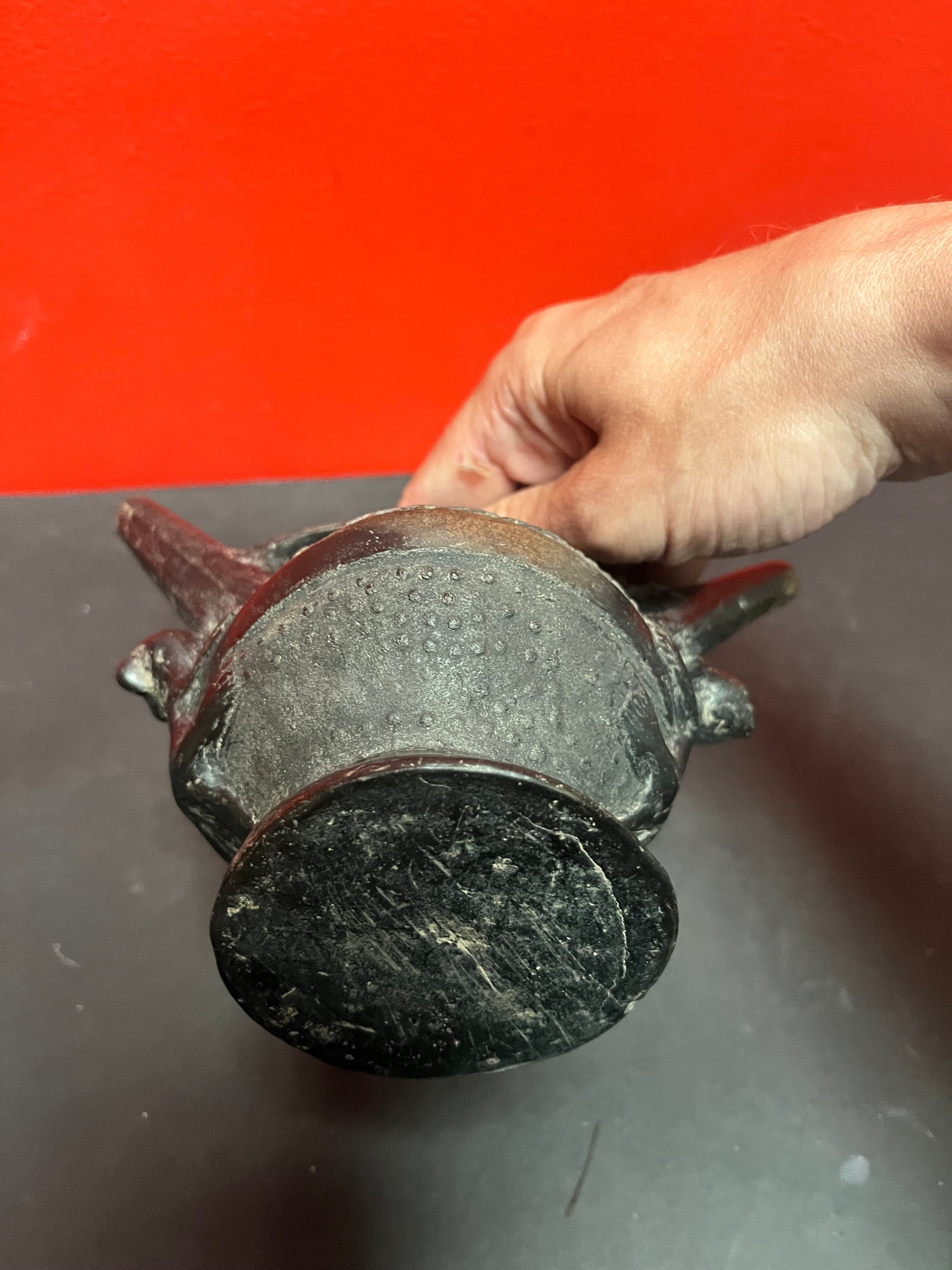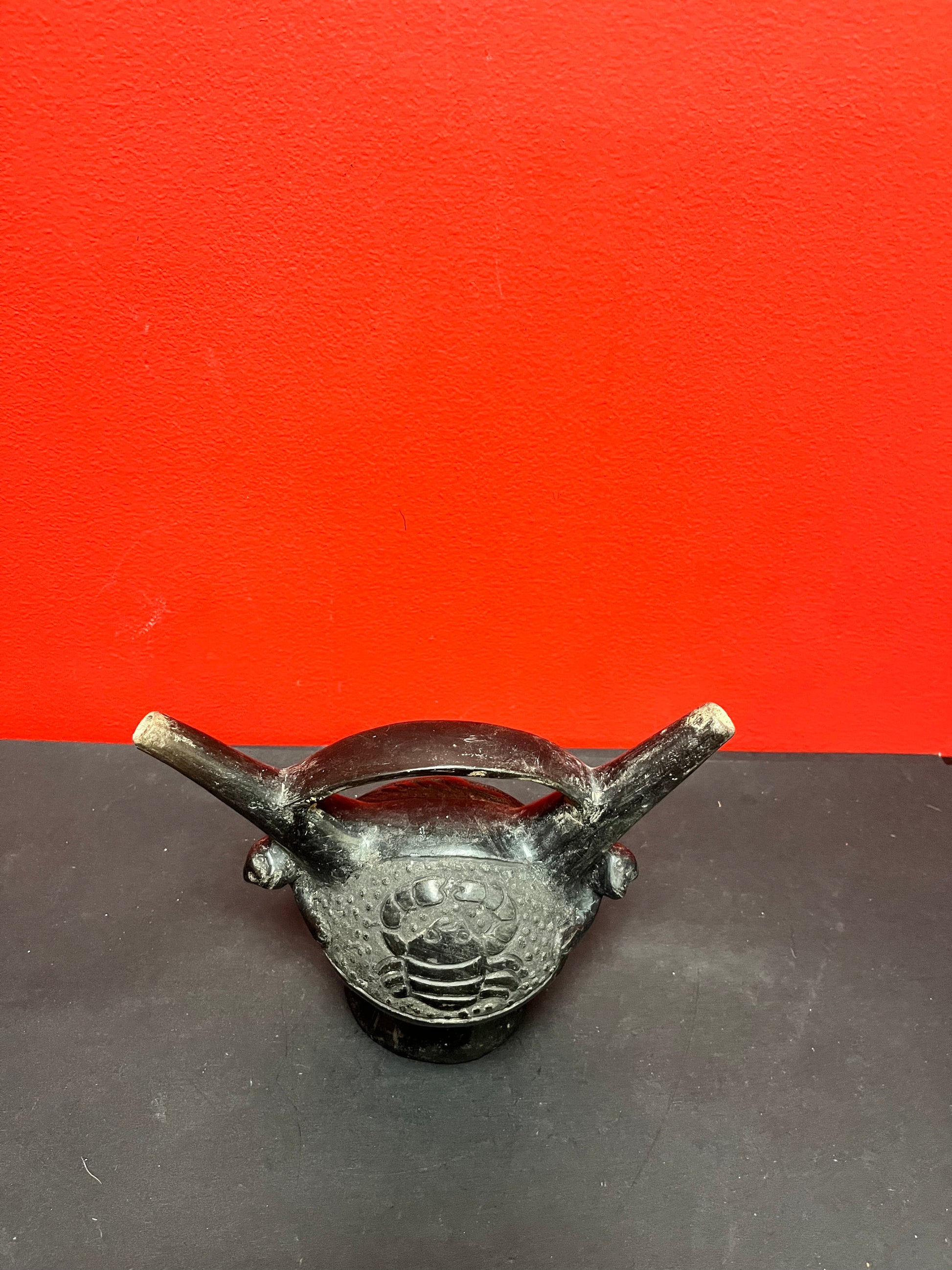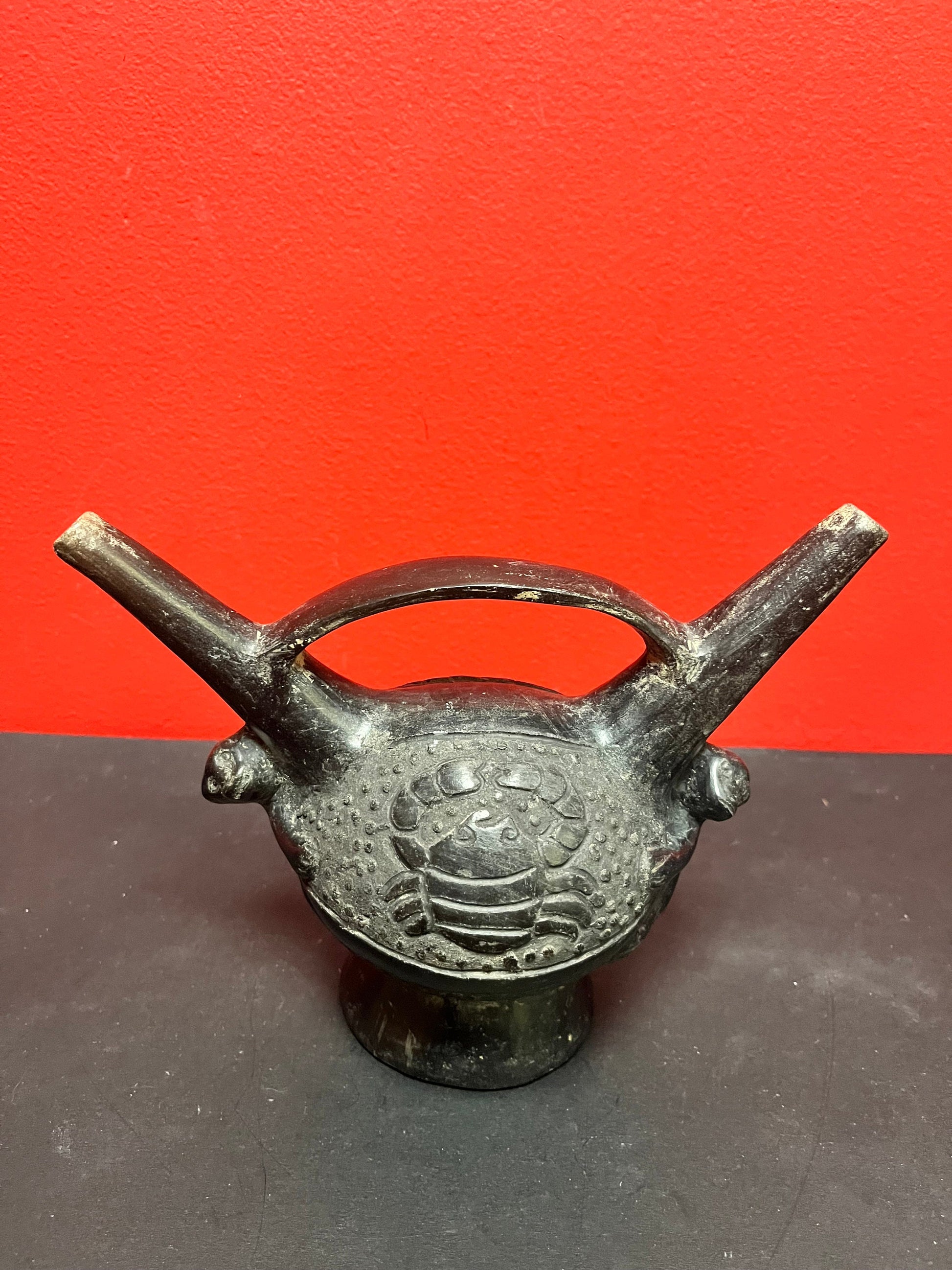 7 x 8 wide antique Colombian Clay vessel. Great imagery, and good condition