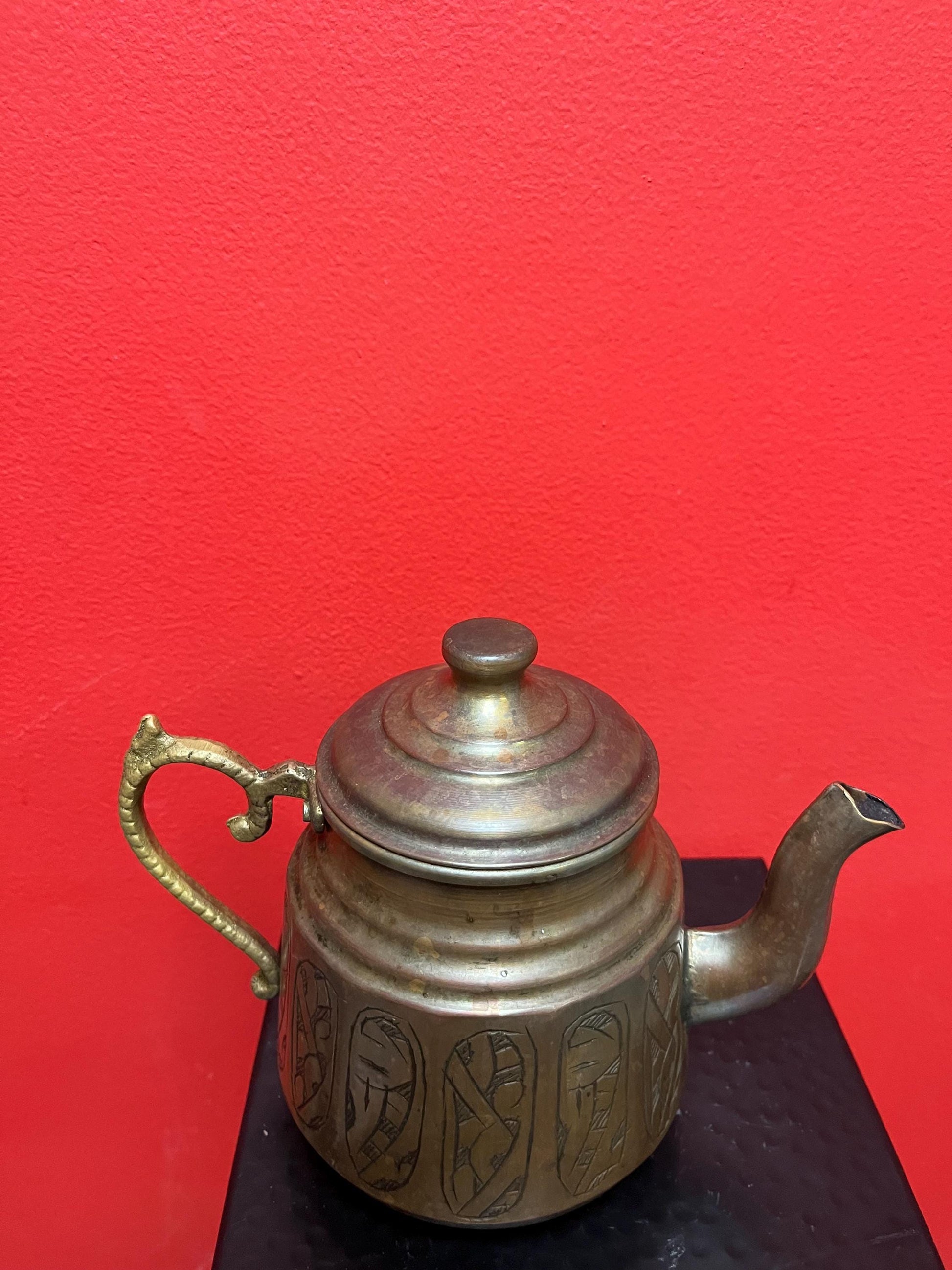 7x 6 inch high antique Persian copper teapot with brass handle ready to use and beautiful detail great gift