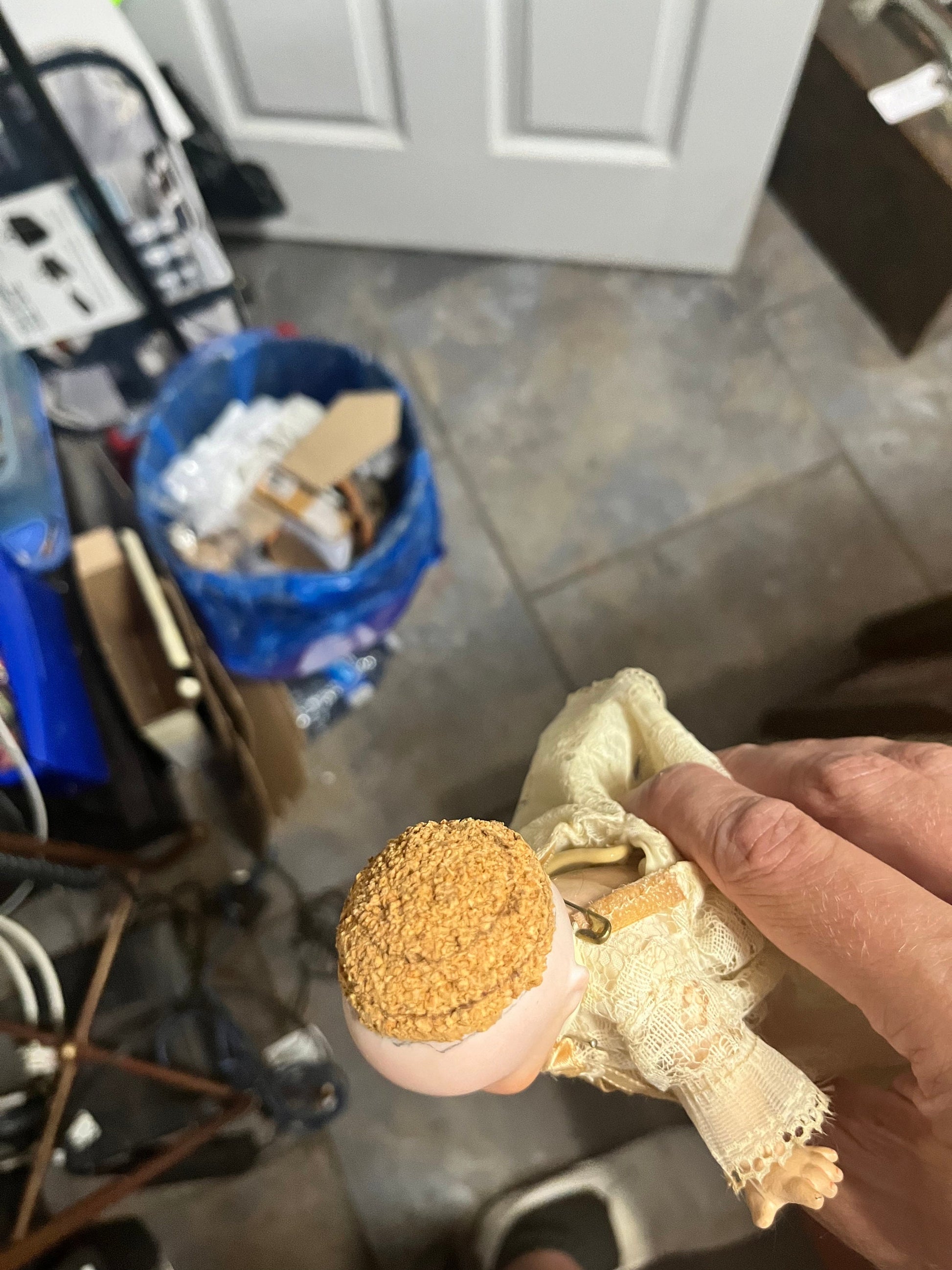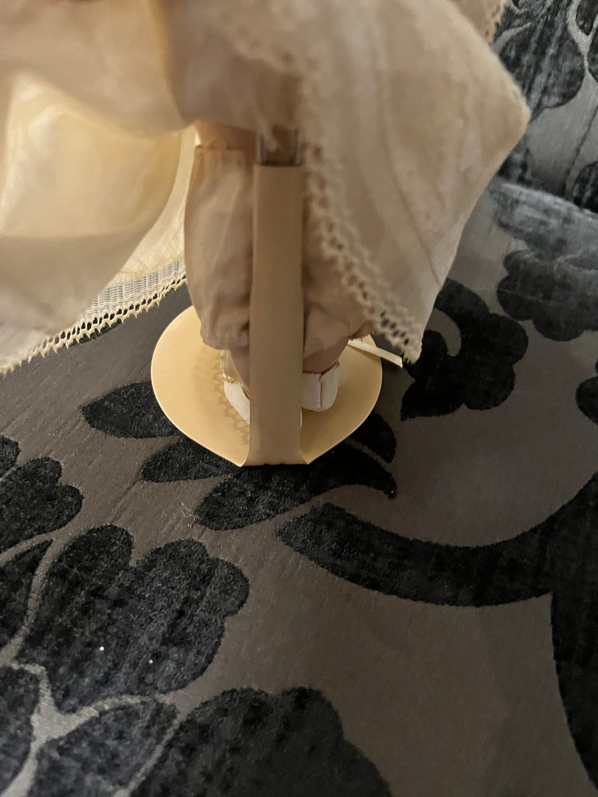 8 1/2 inch Victorian porcelain doll with original clothes on stand