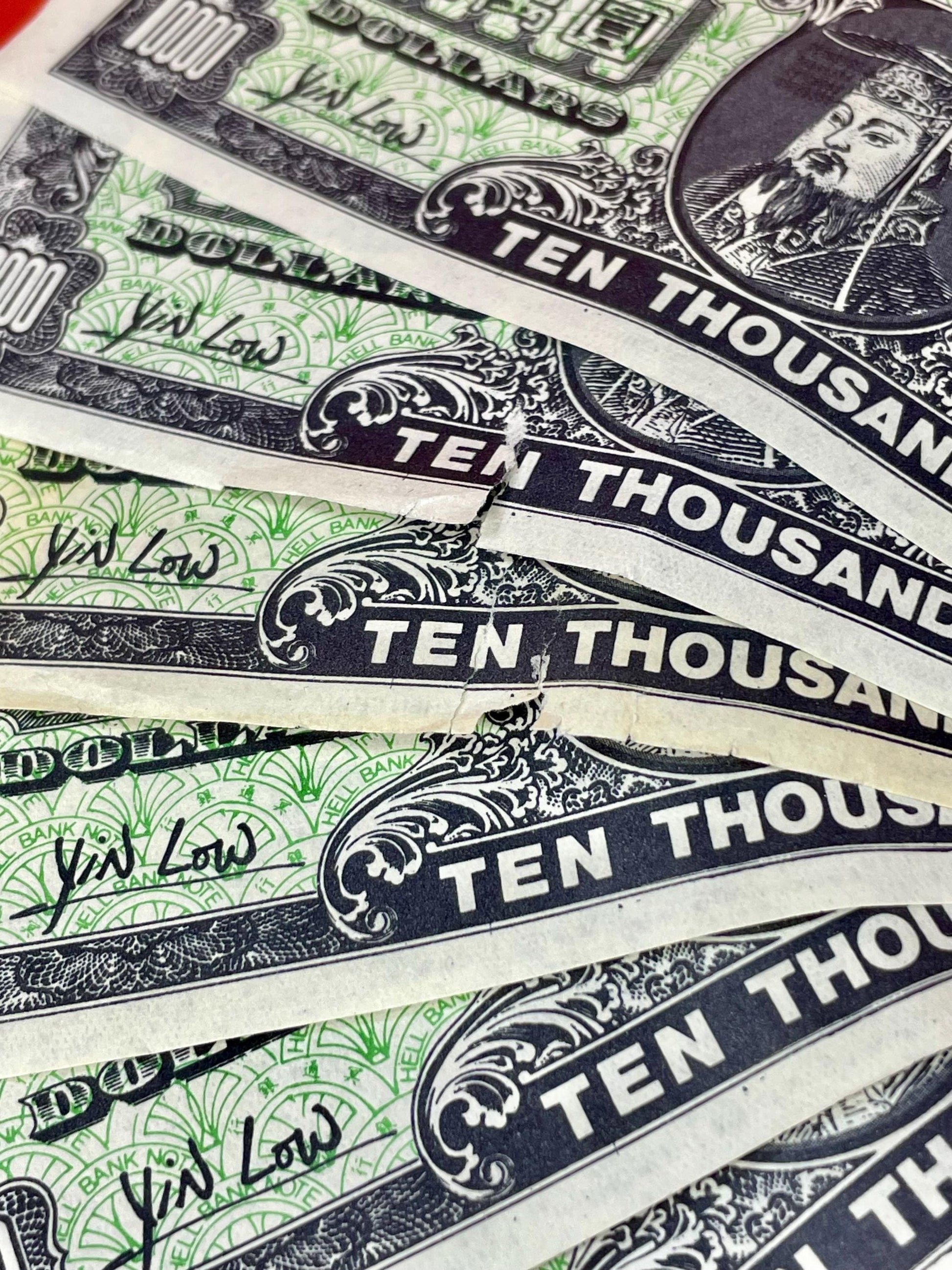 This set includes 8 colorful Chinese Hell Bank Notes, traditionally used as offerings to ancestors. A unique and meaningful addition to any collection or cultural display.
