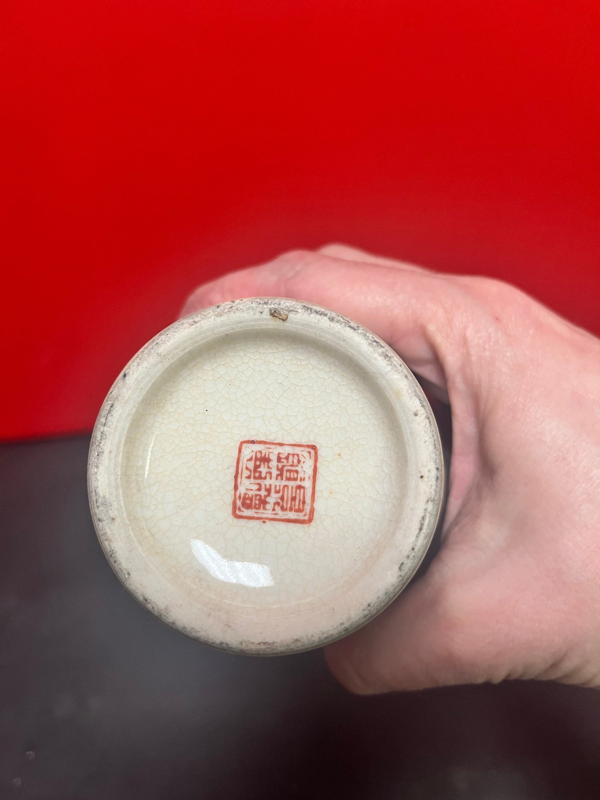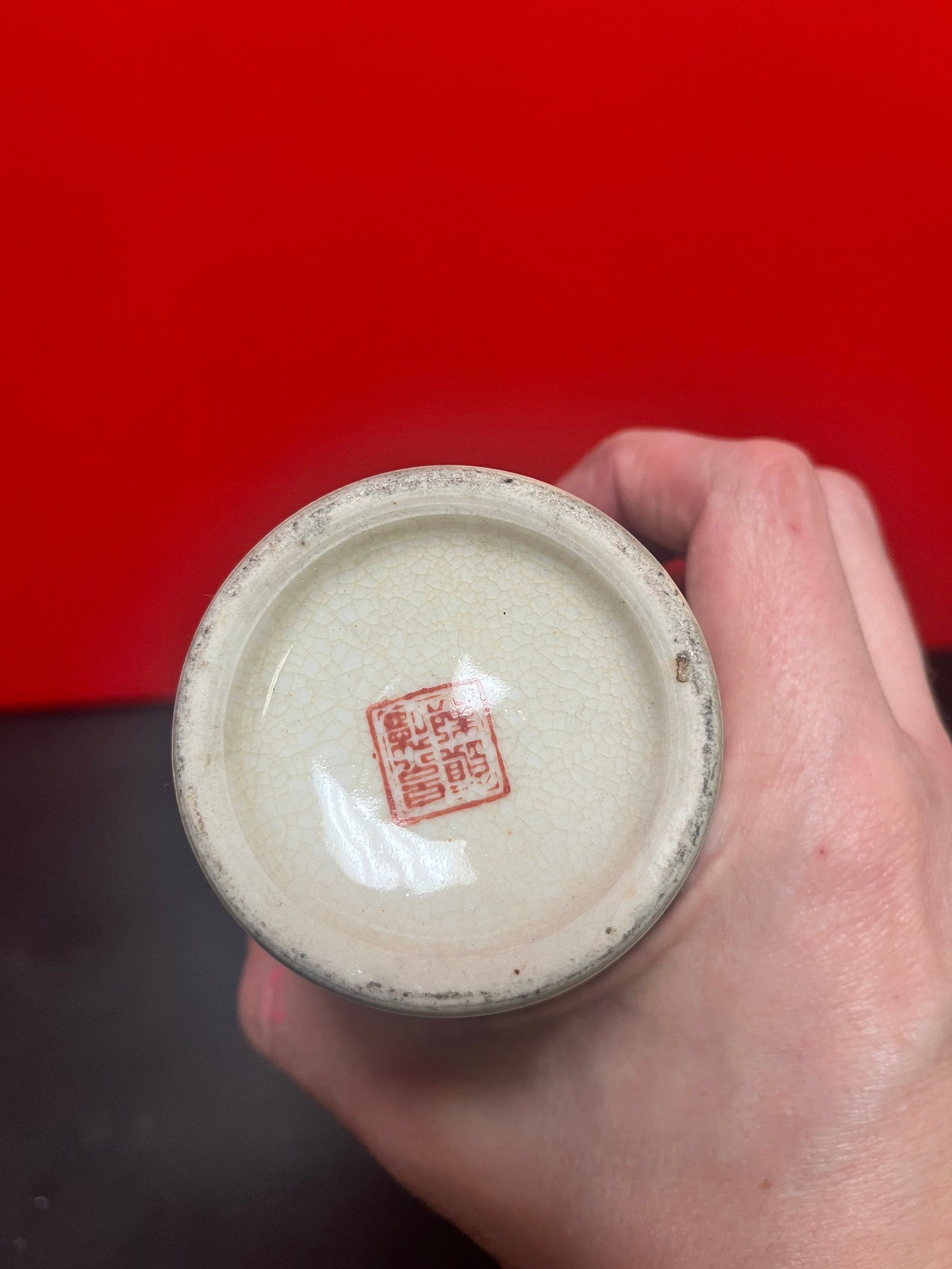 8 inch 19th century Chinese famille rose crackled porcelain vase perfect condition