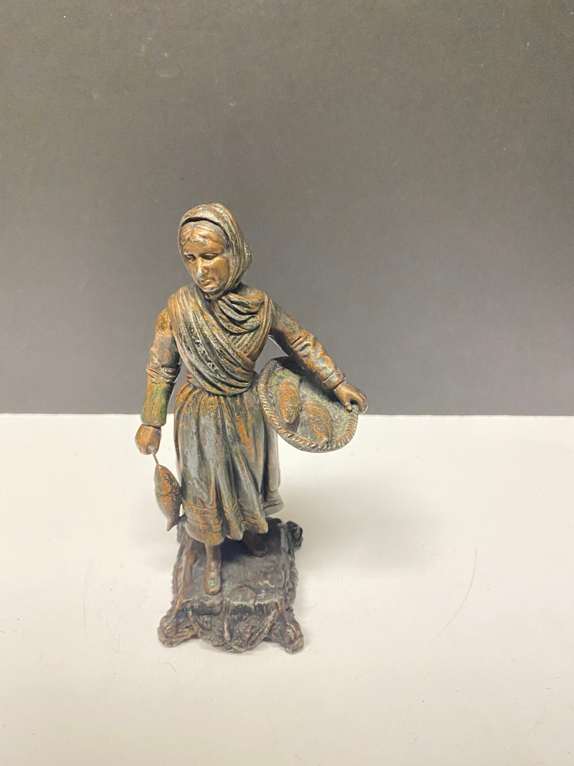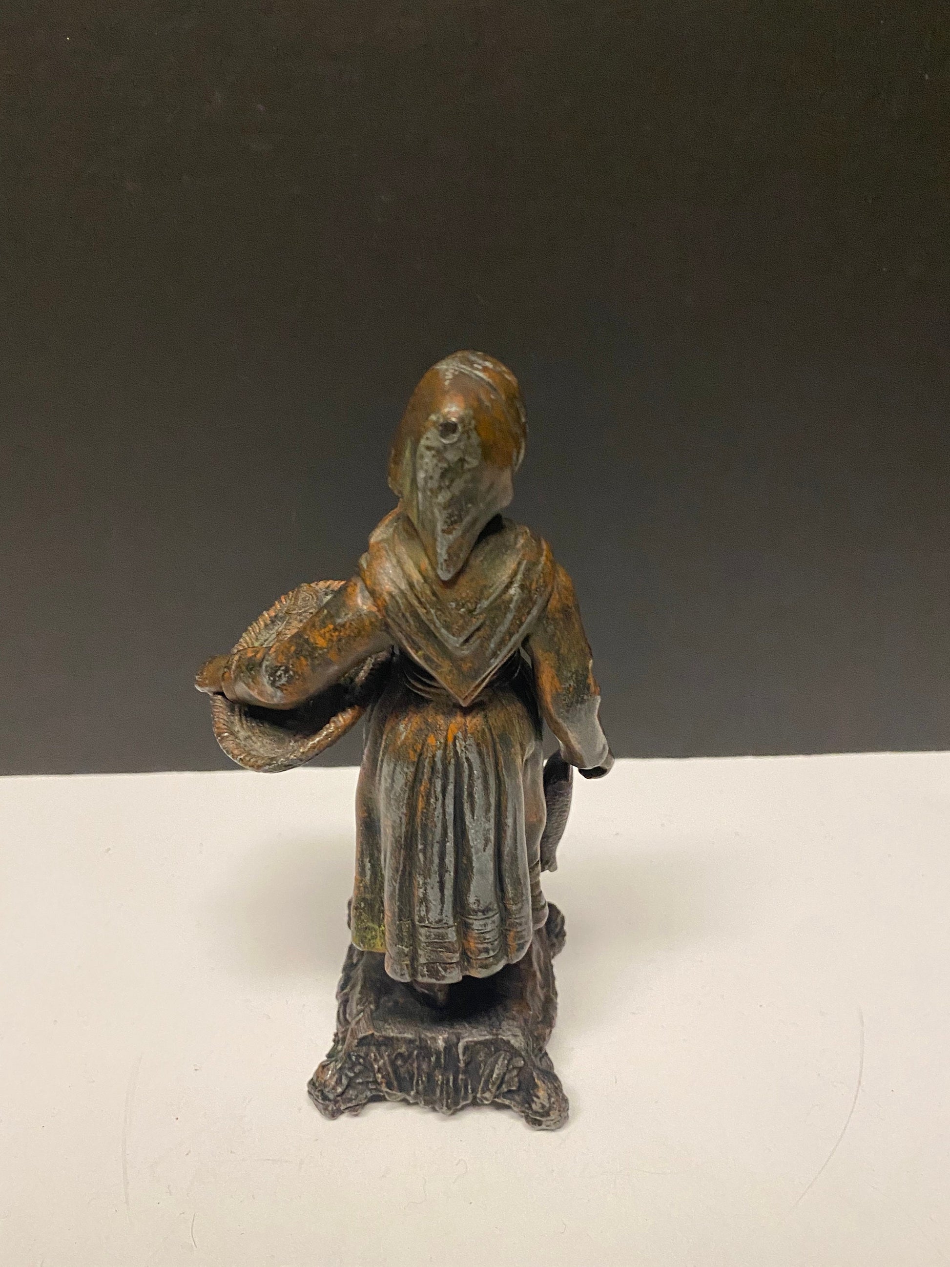 8 inch Absolutely fantastic antique European bronze statue of a fisher woman was wonderful Patina great gift wow