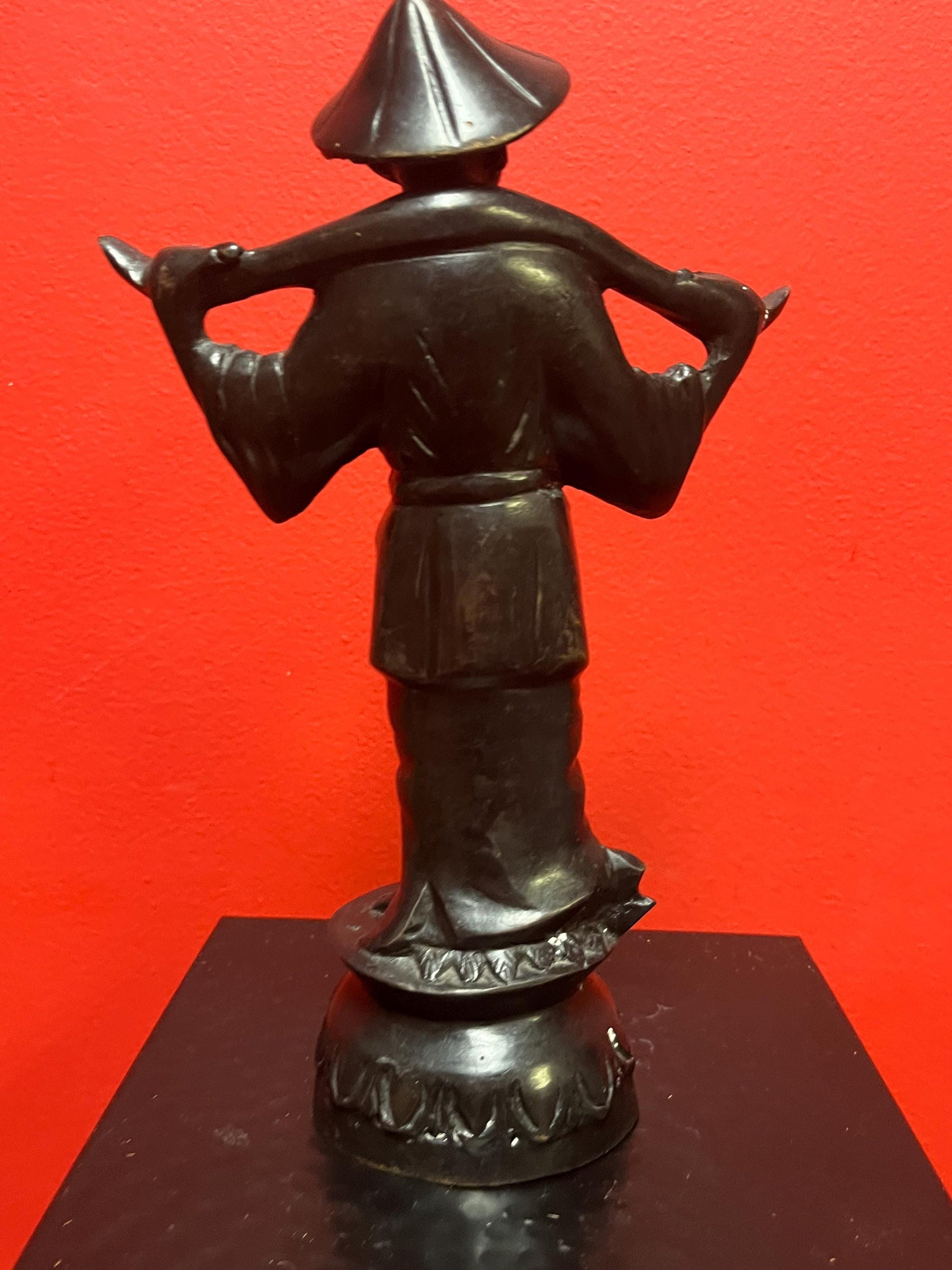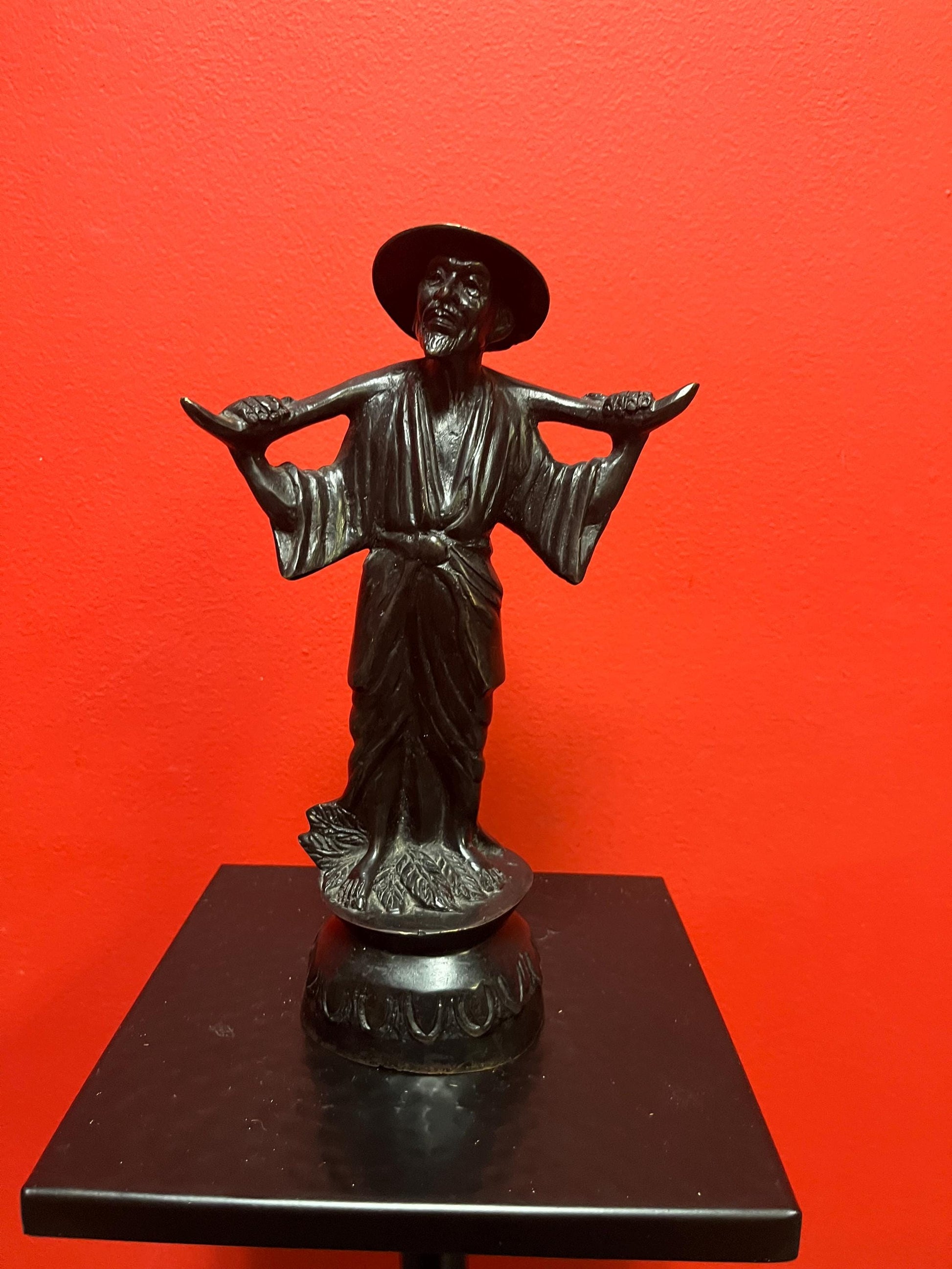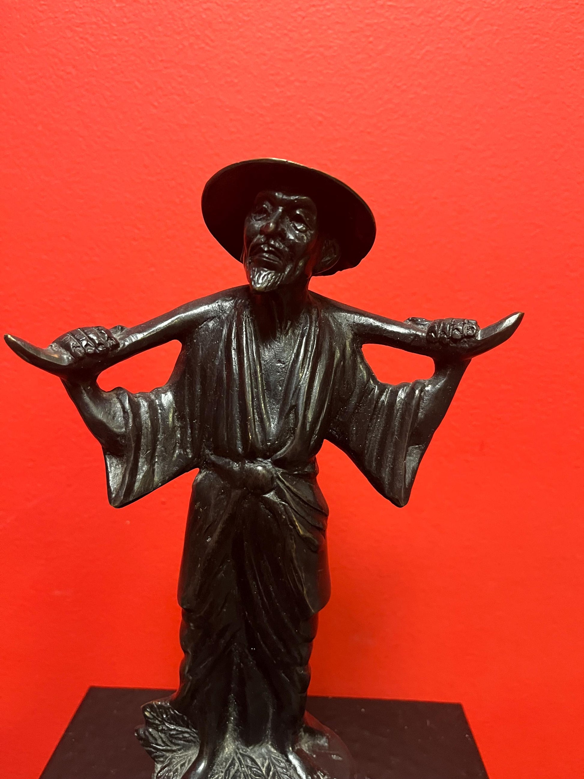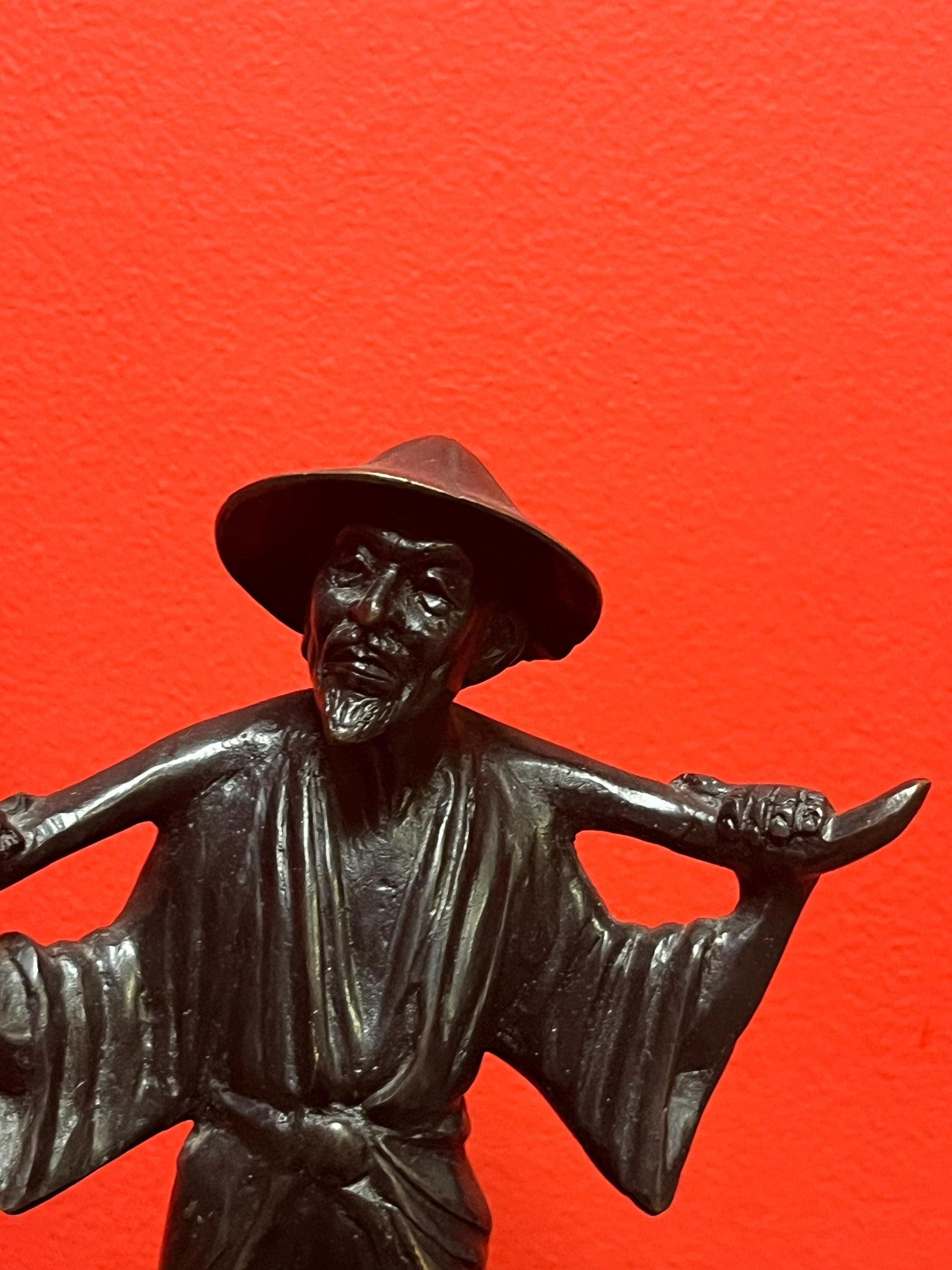 9.5 x 6 inch wide Chinese bronze statue of a man lovely patina and great quality good condition and great value heavy