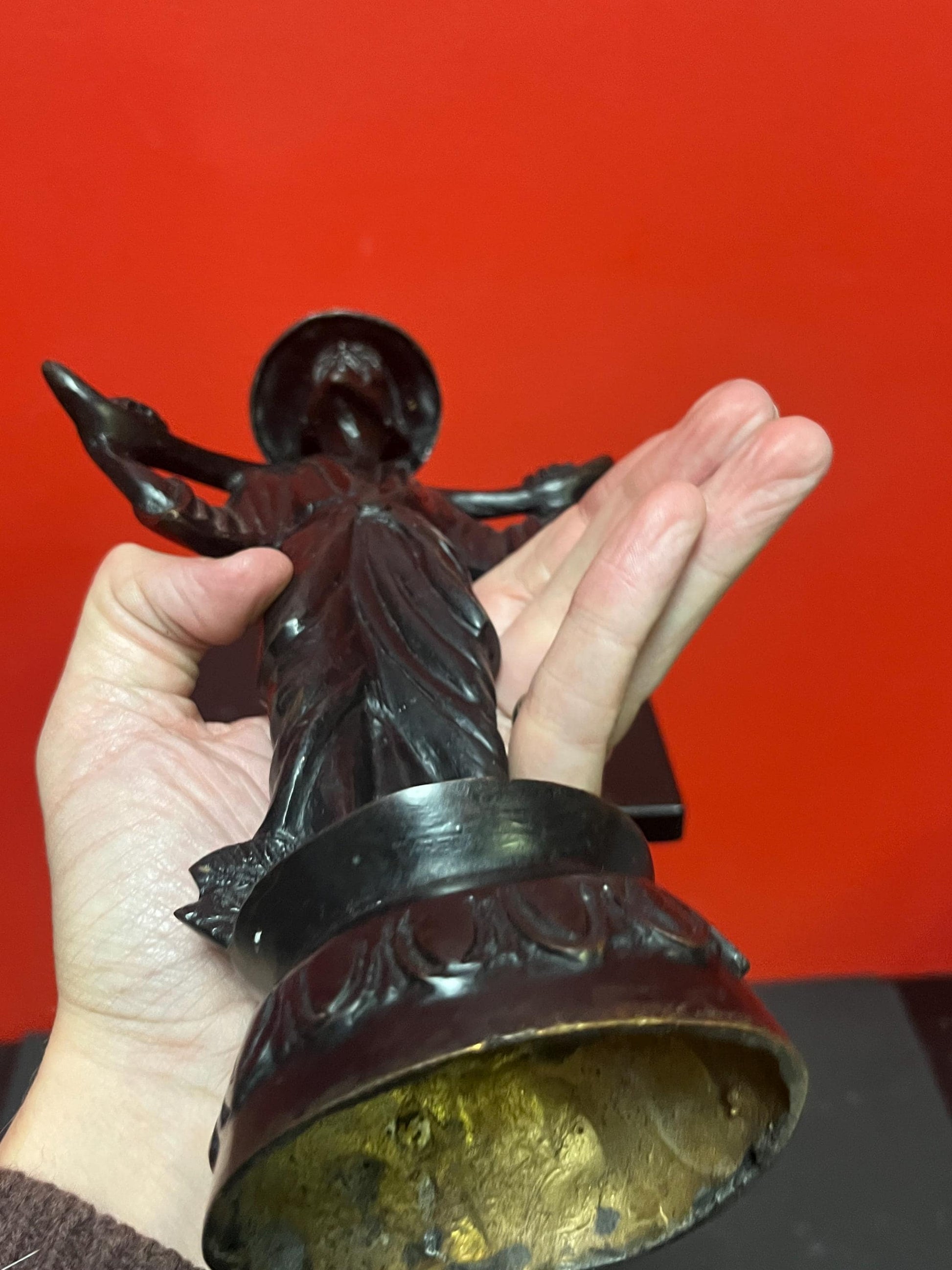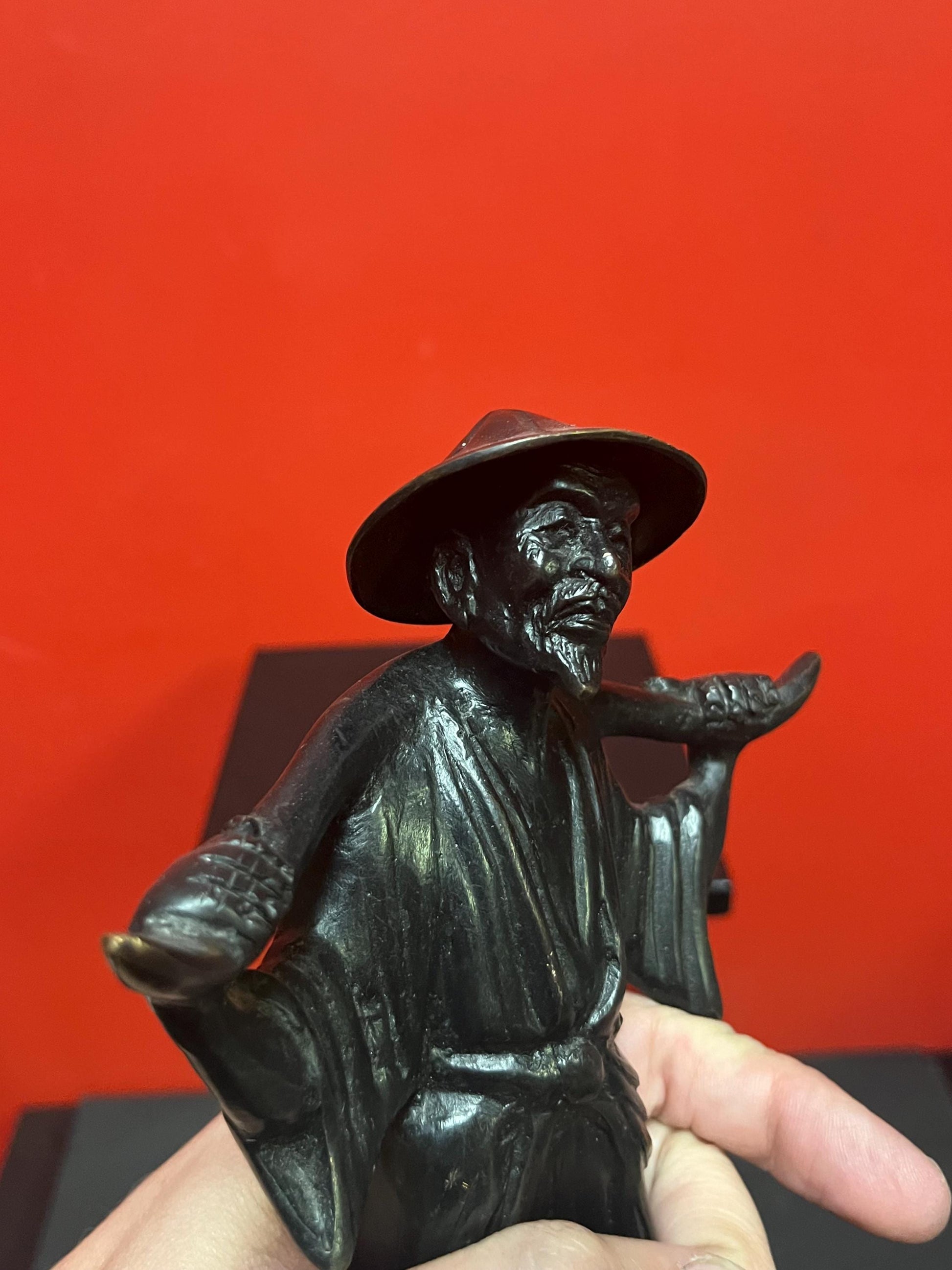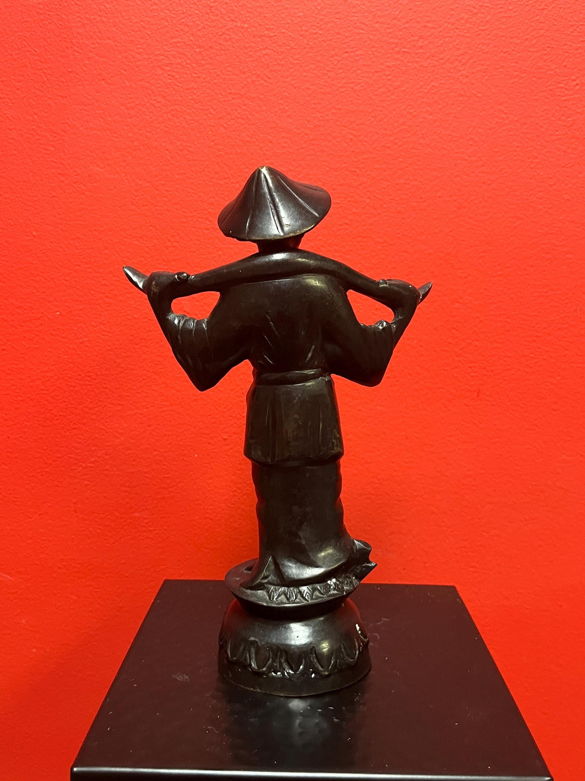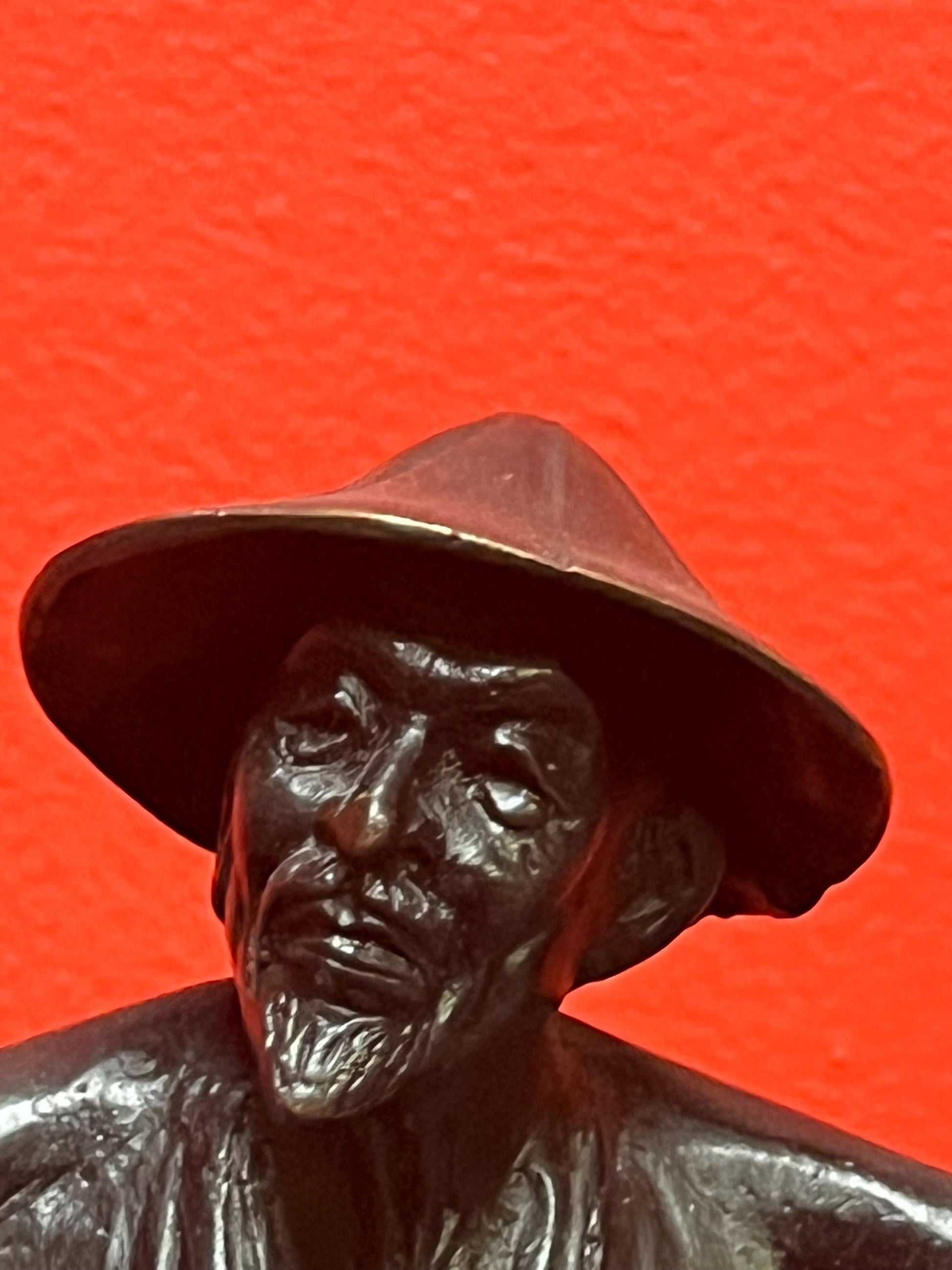 9.5 x 6 inch wide Chinese bronze statue of a man lovely patina and great quality good condition and great value heavy