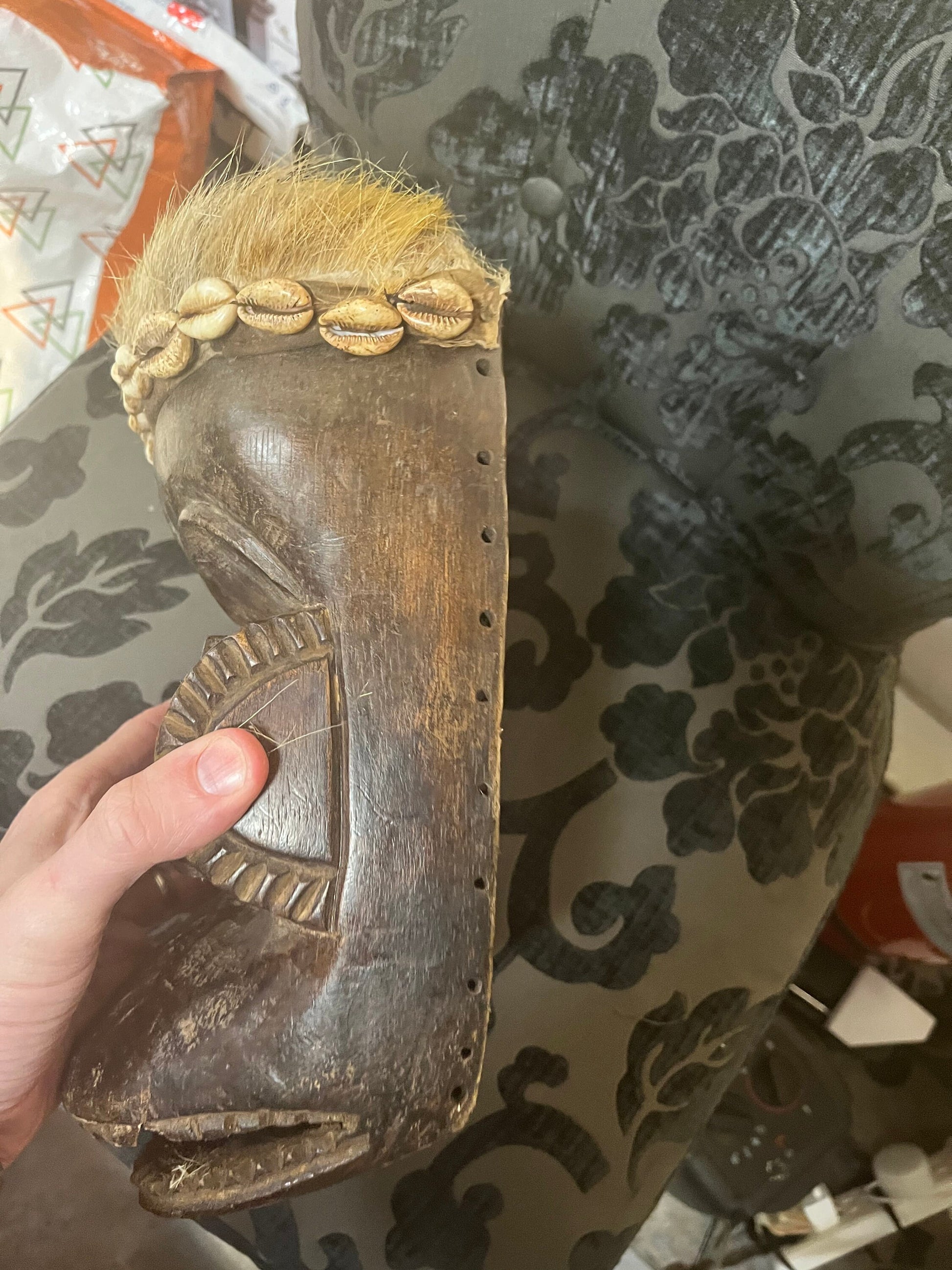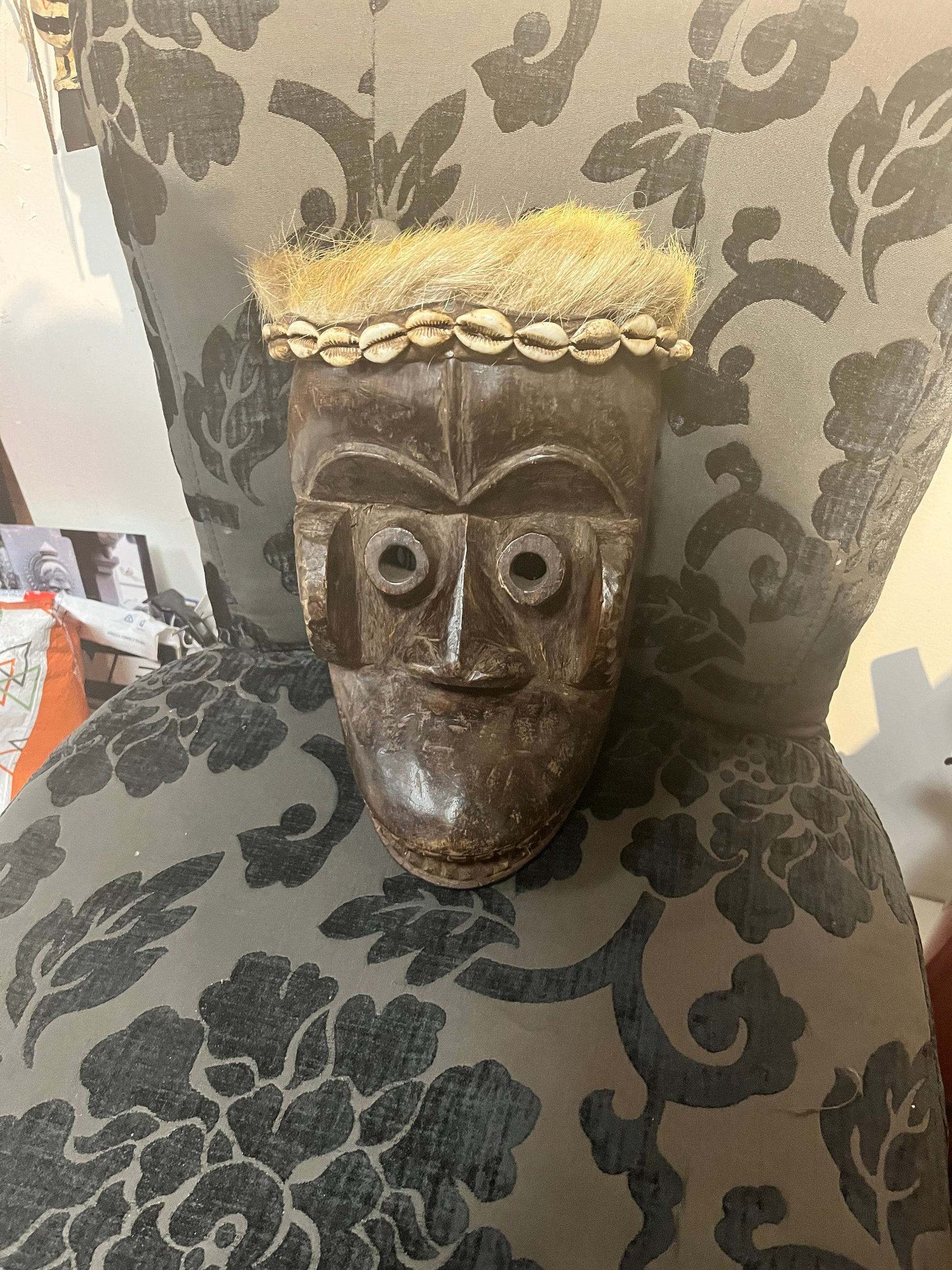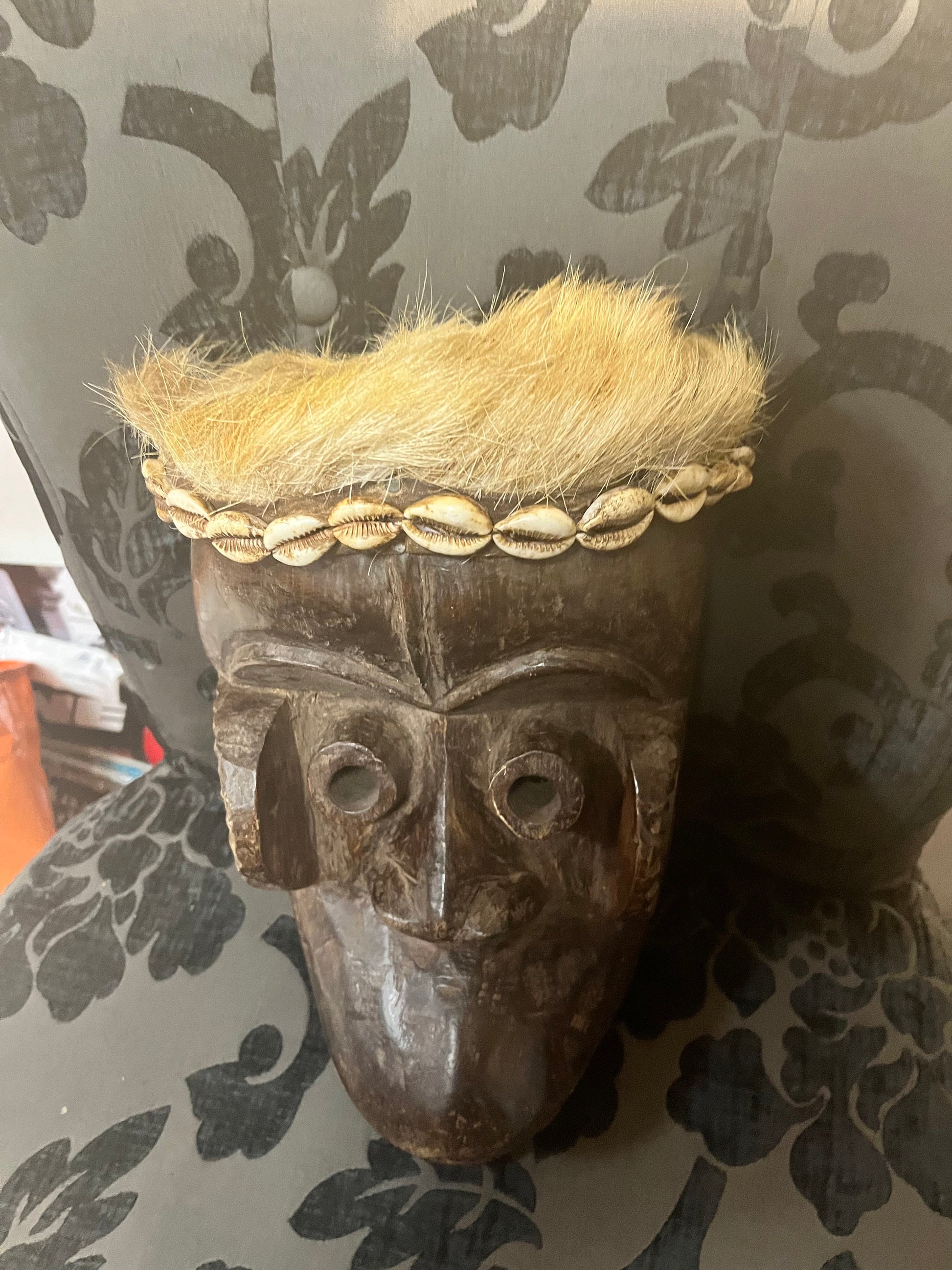 9 x 7 inch antique west African monkey mask amazing quality with puka shells wow wow ready to hang