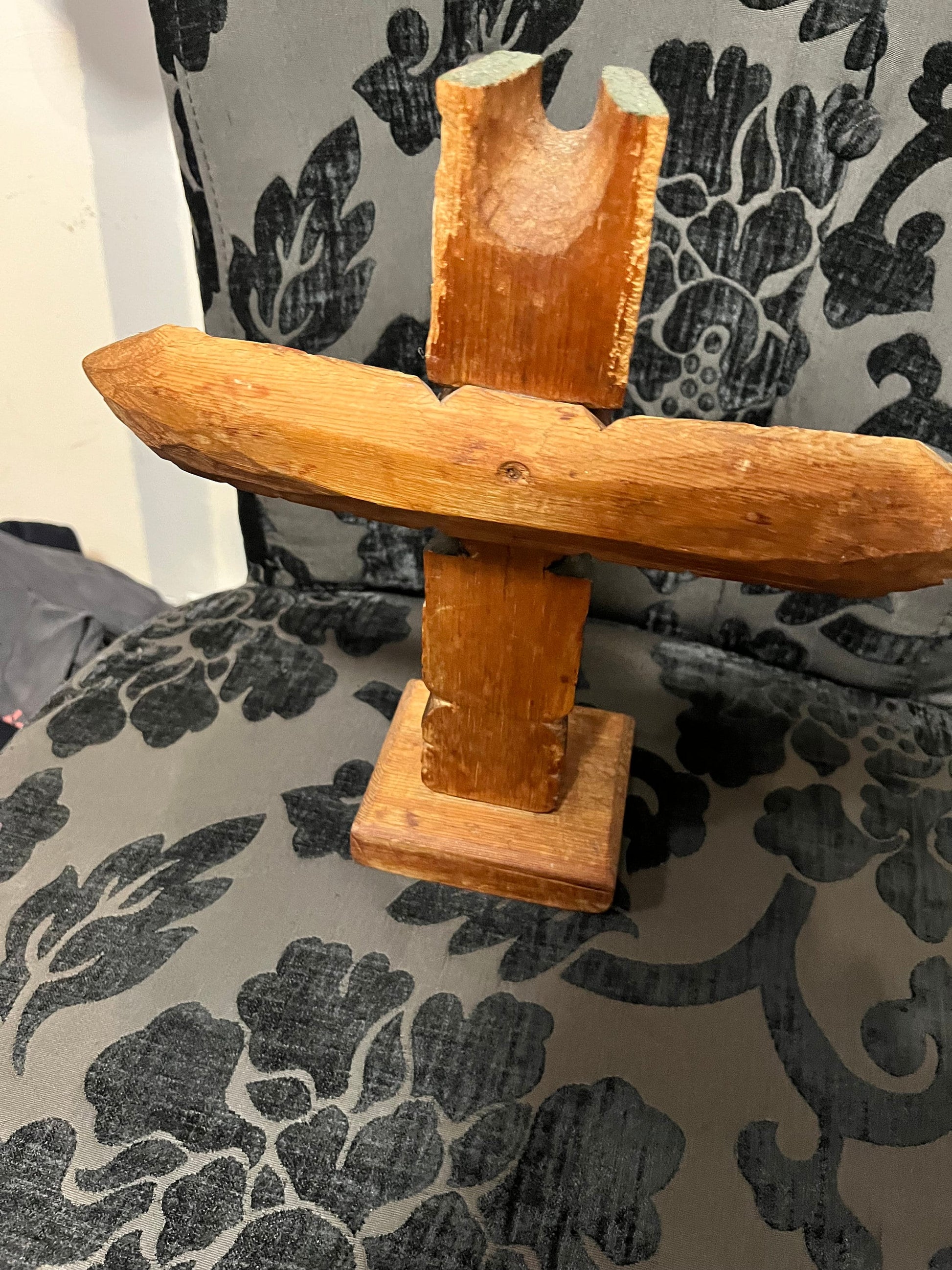11 inch indigenous First Nations polychrome Totem pole with wings great look and derail