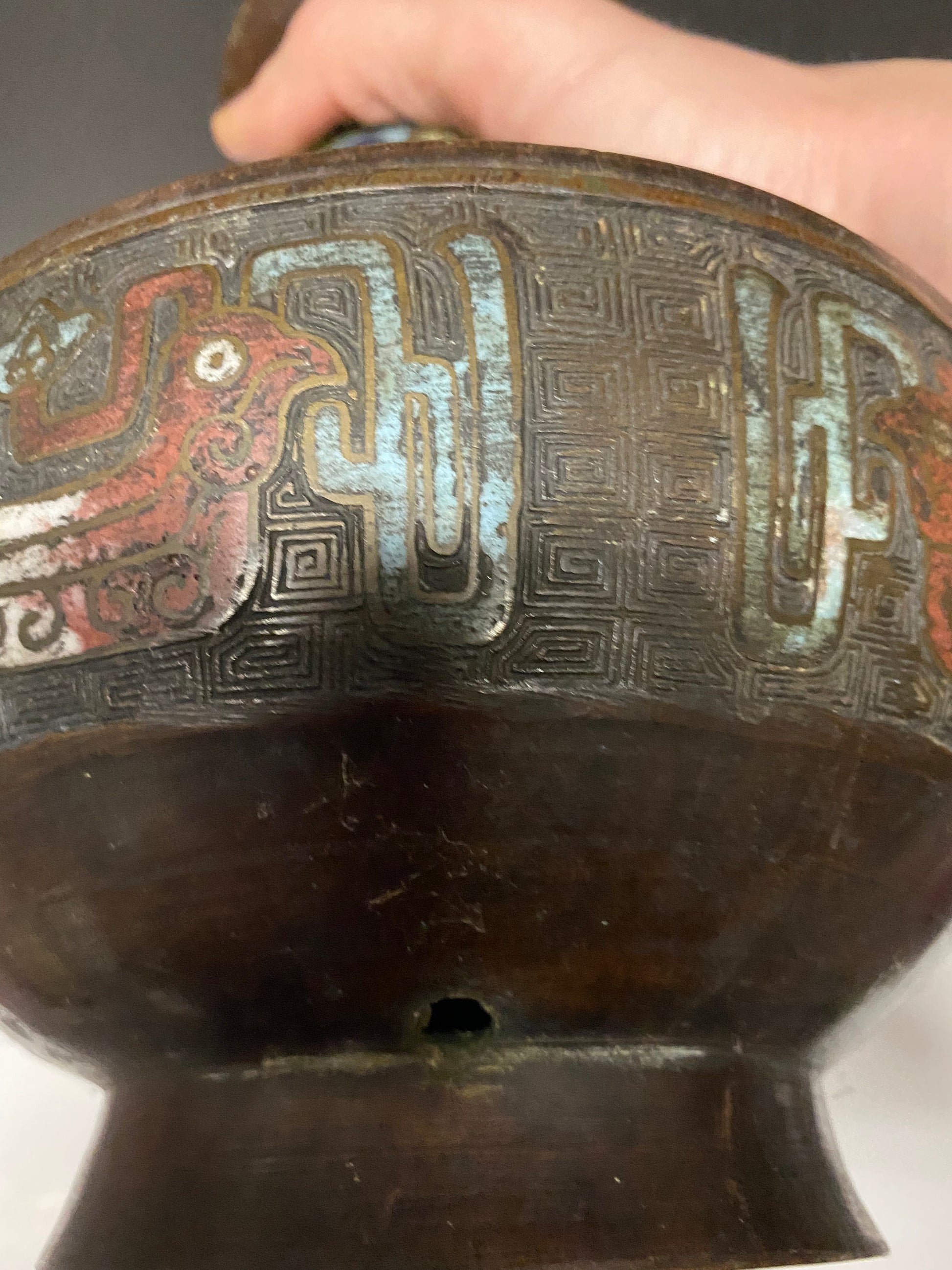 A 11 inch tall Antique Chinese bronze Champleve enamel vase! Hole near base see photos - 1200 grams