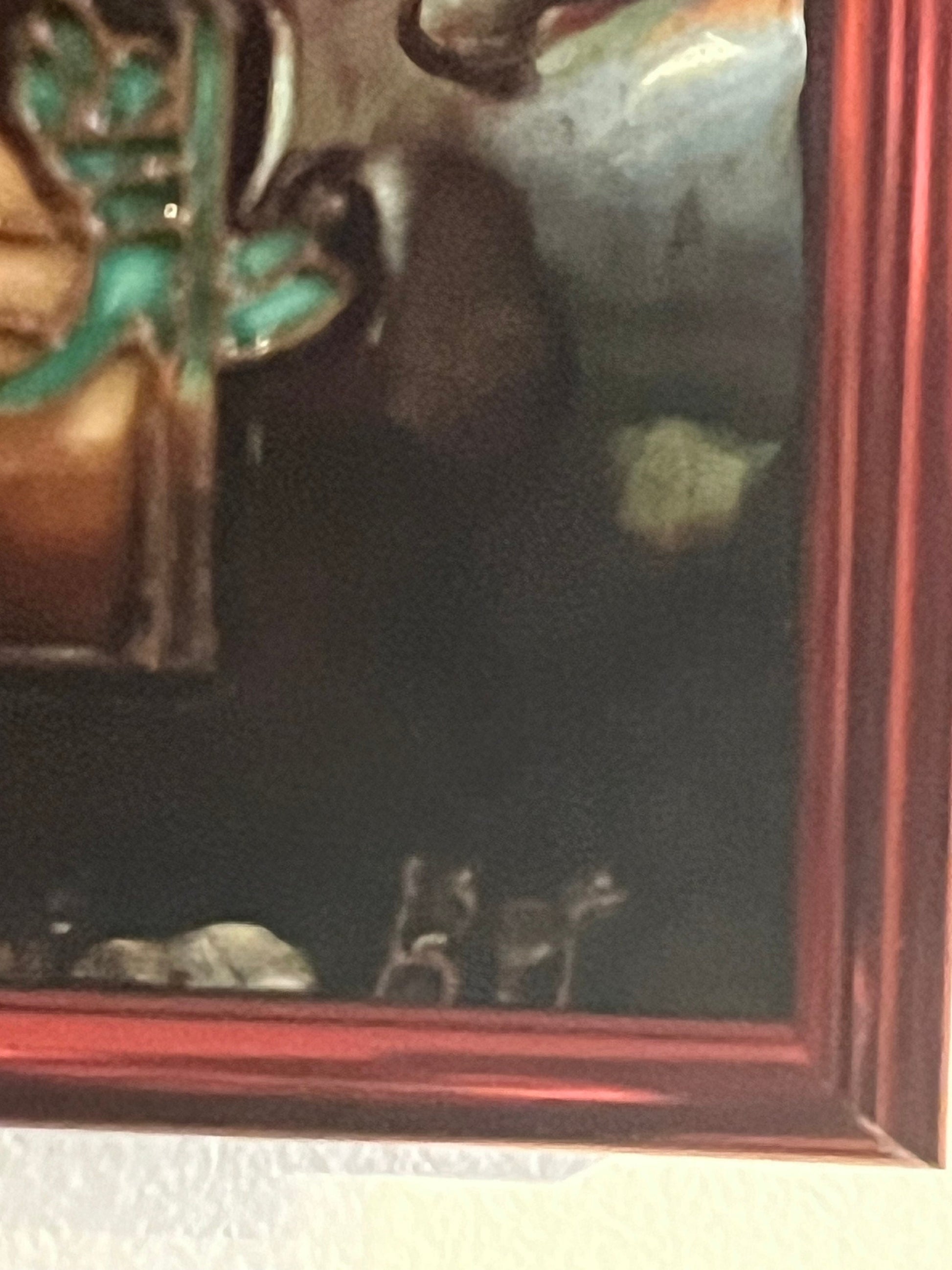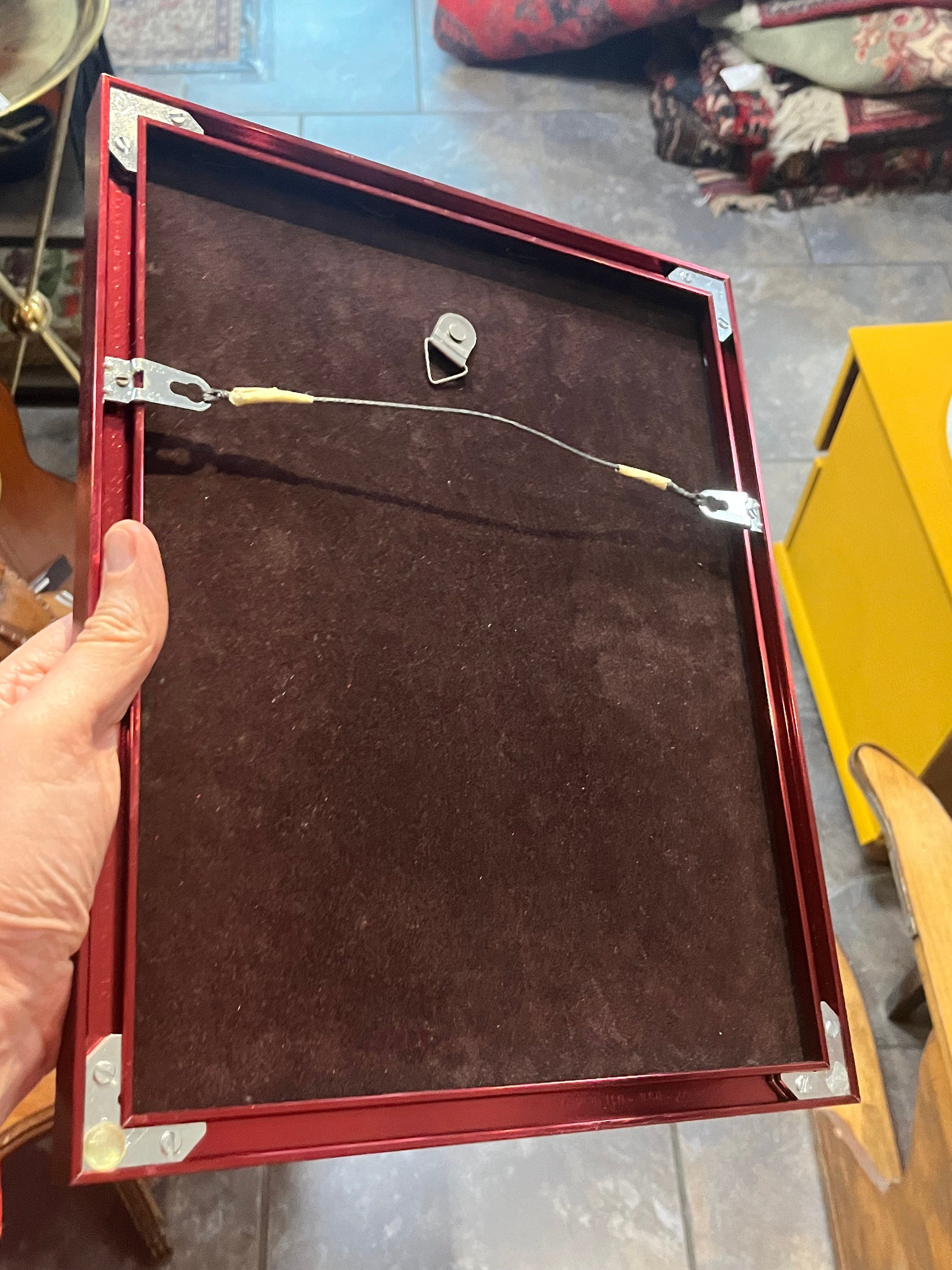 14 x 11 heavy metal enamelled picture in frame signed and heavy amazing detail and quality wow