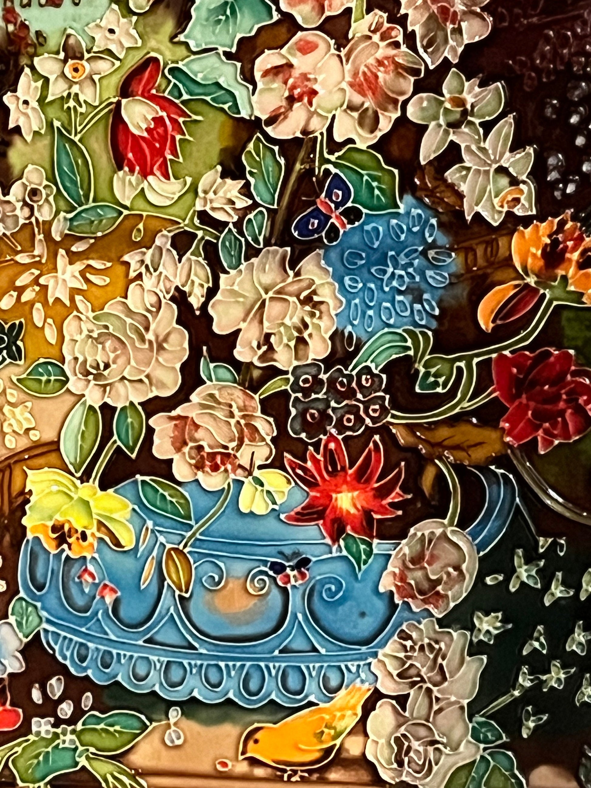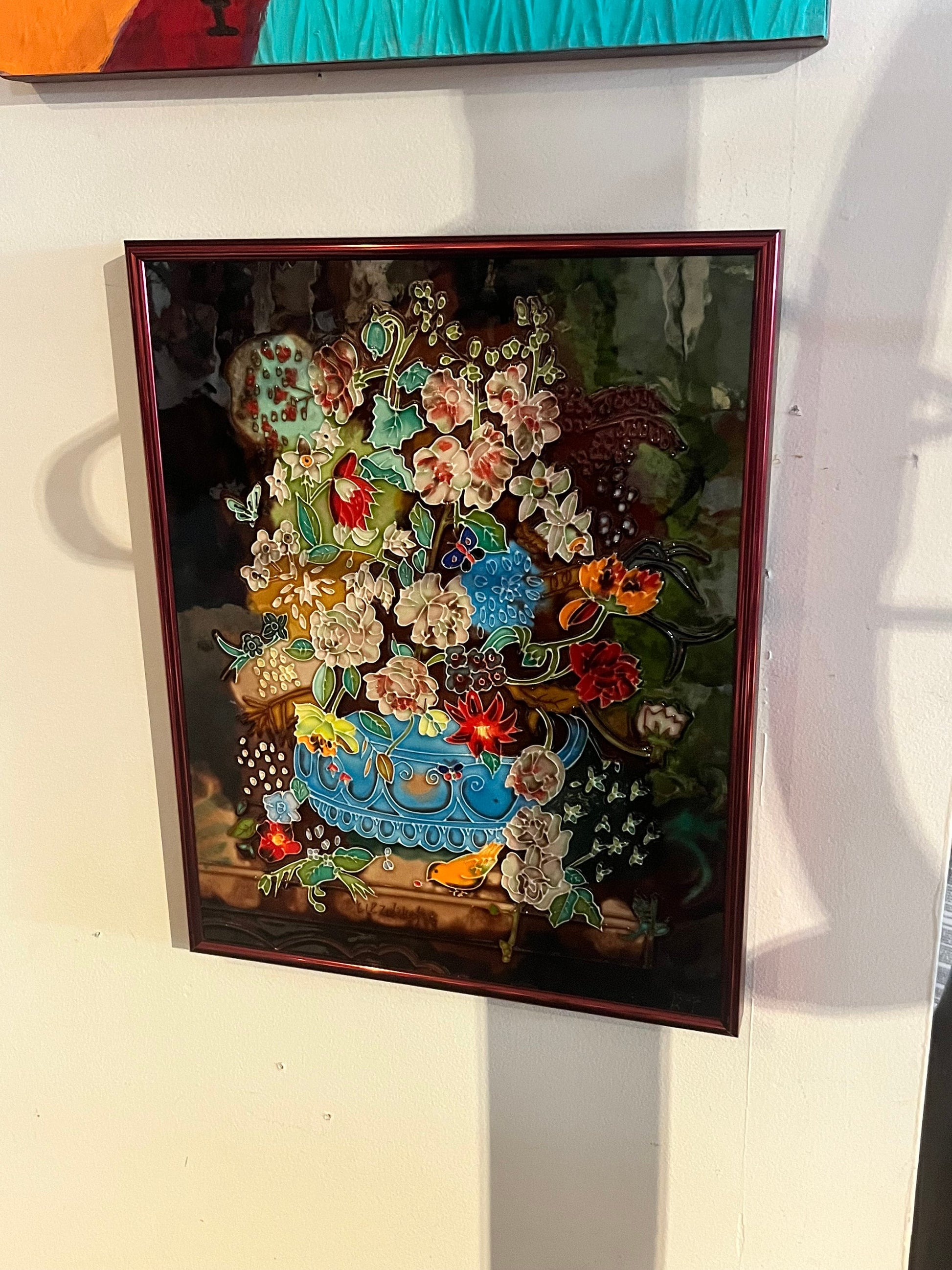 A 14 x 11 heavy metal enamelled picture in frame signed and heavy amazing detail and quality wow