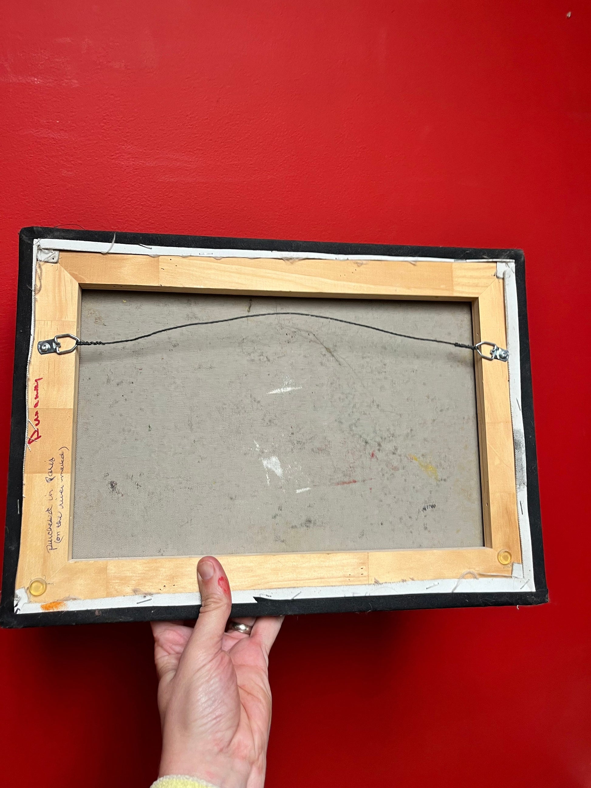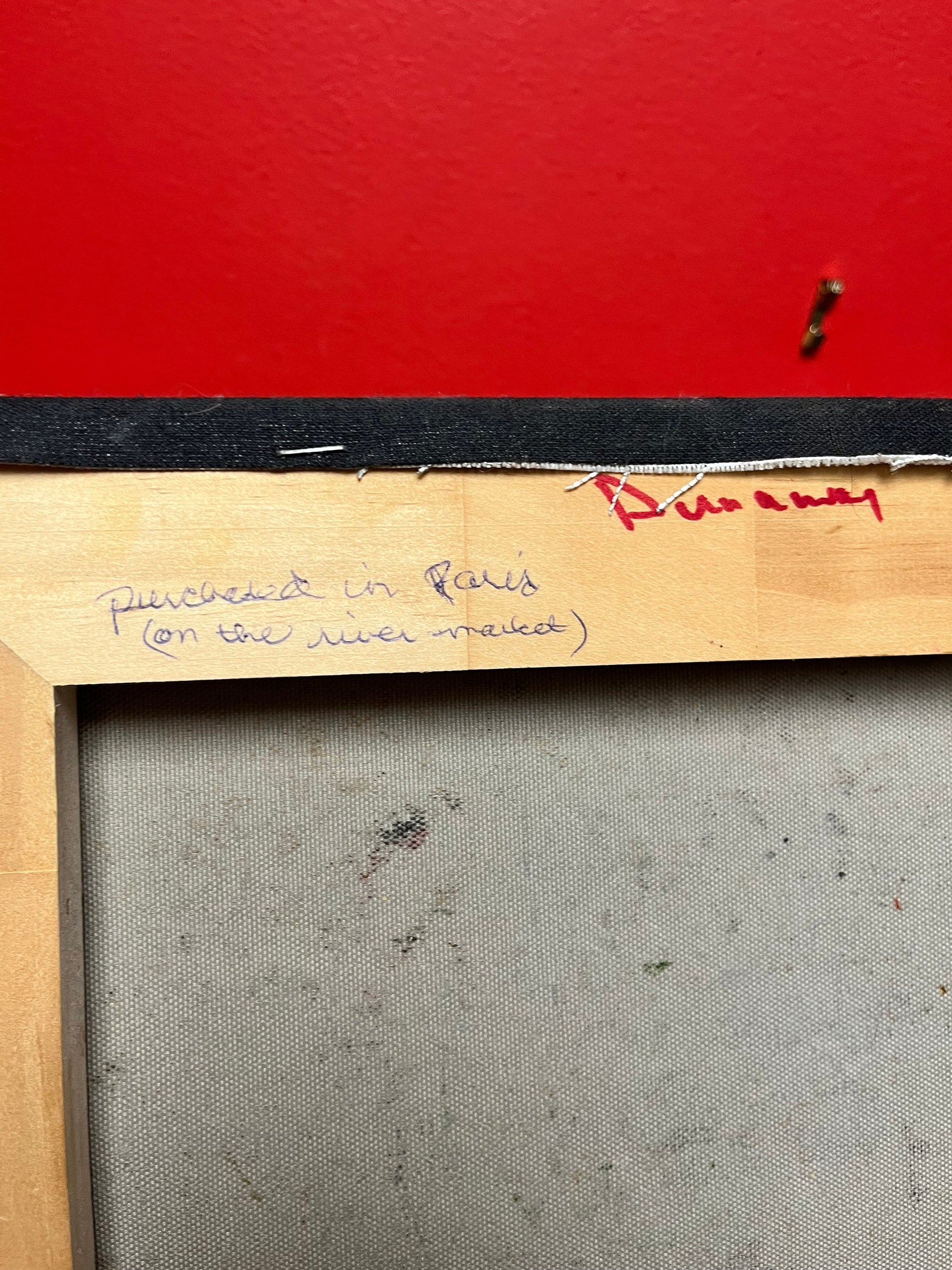 A 17 x 12 x 2 vintage French painting of a rhinoceros in a Picasso style African art inspiration amazing piece couple paint dings