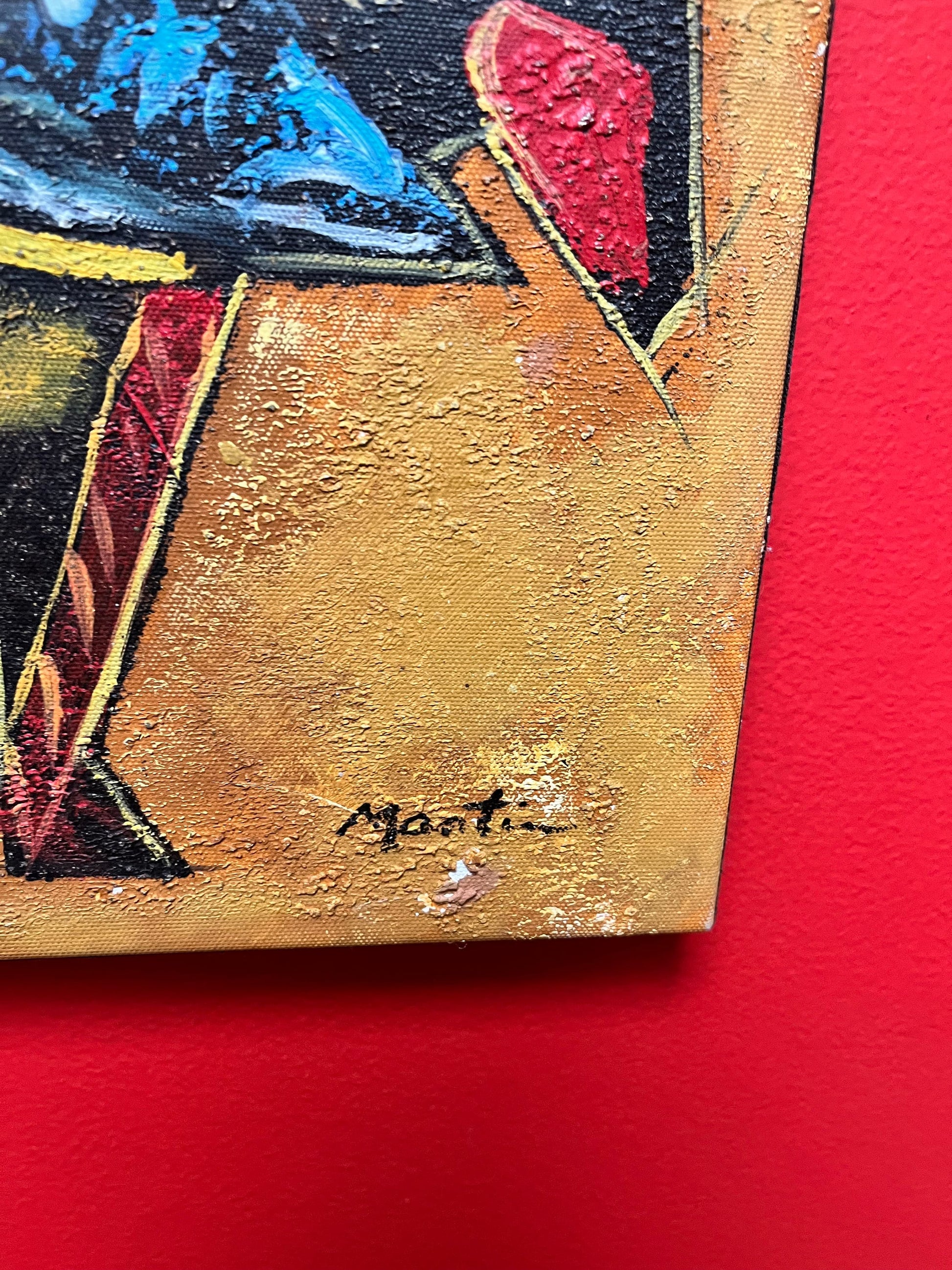 17 x 12 x 2 vintage French painting of a rhinoceros in a Picasso style African art inspiration amazing piece couple paint dings - wow