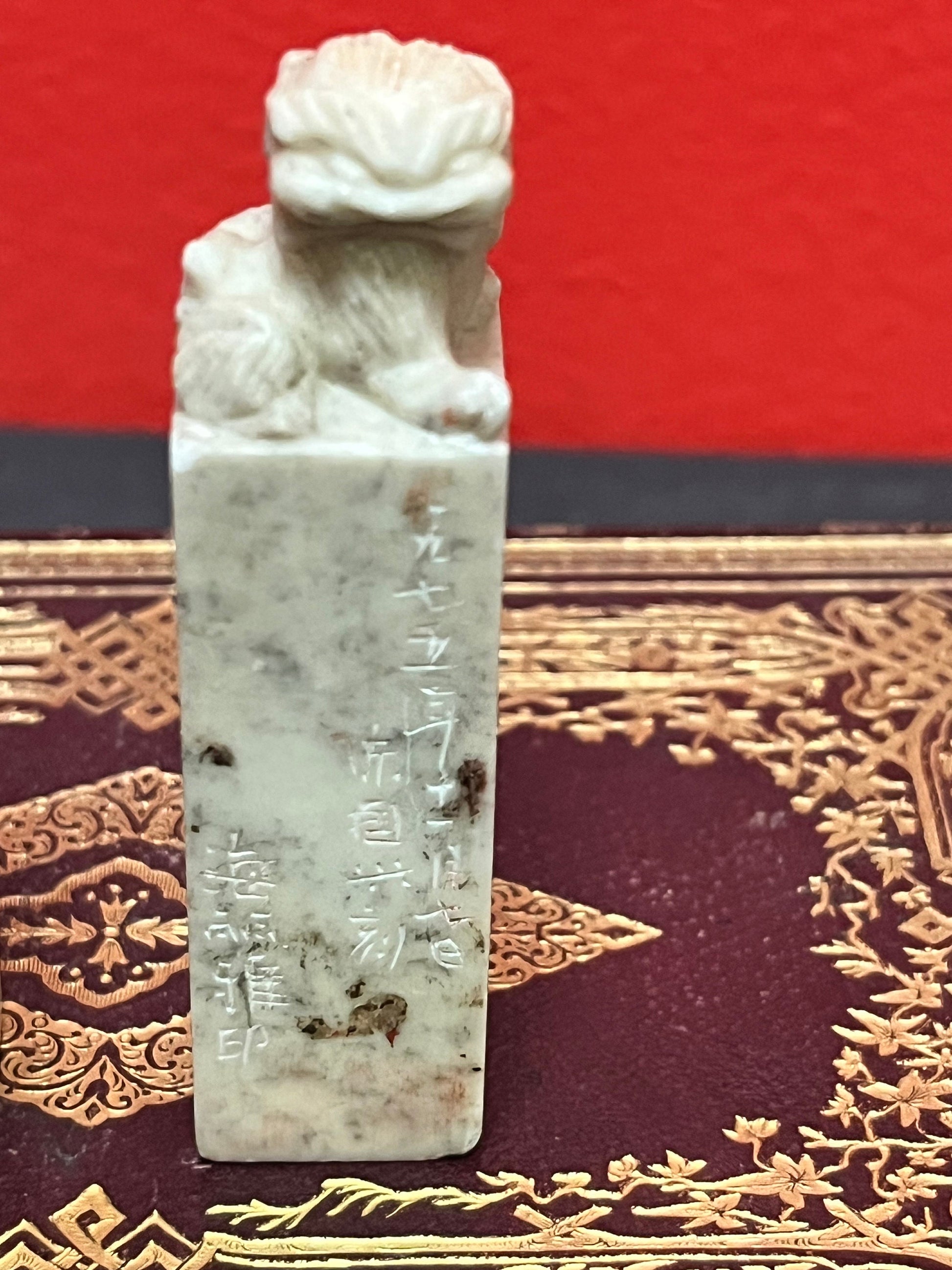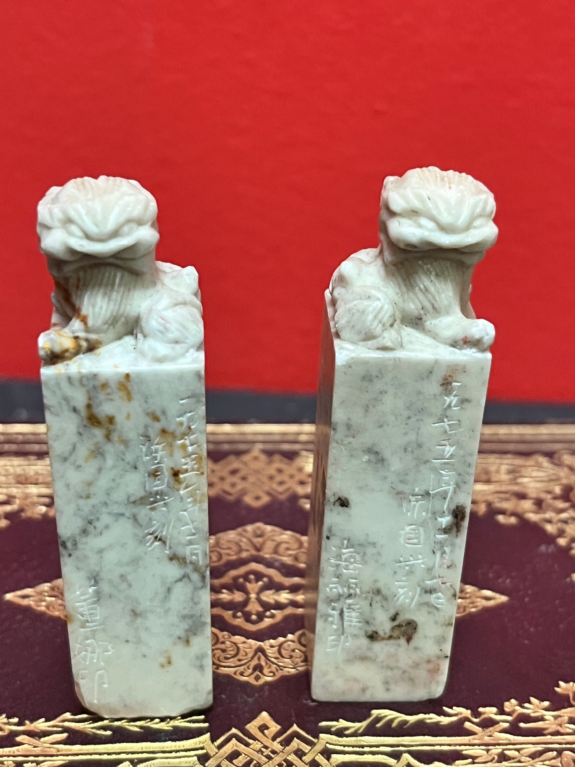 3 inch chinese fabulous extensively signed soapstone dogs of foo stamps well detailed